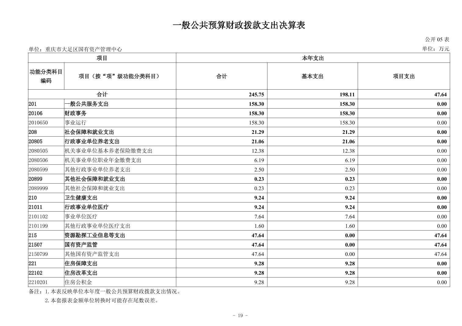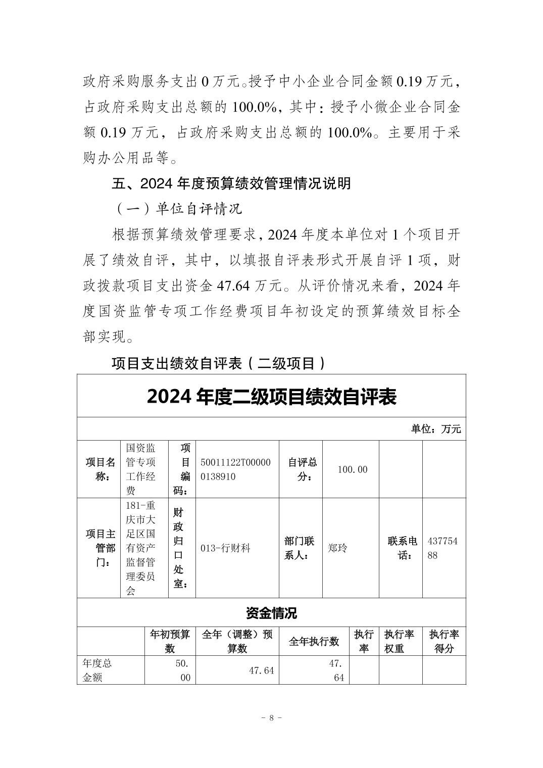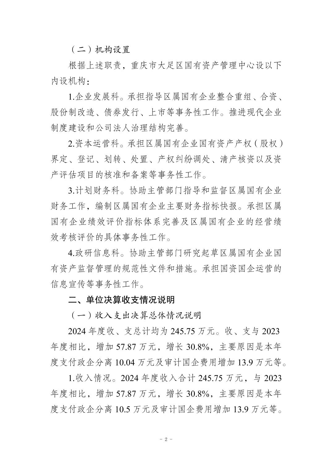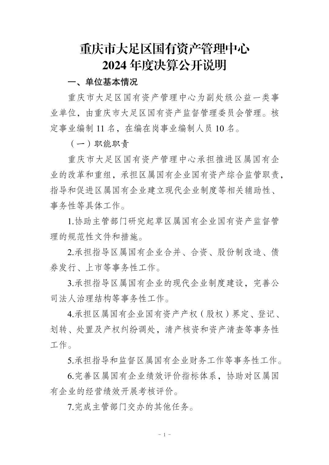 重庆市大足区国有资产管理中心 2024 年度决算公开说明