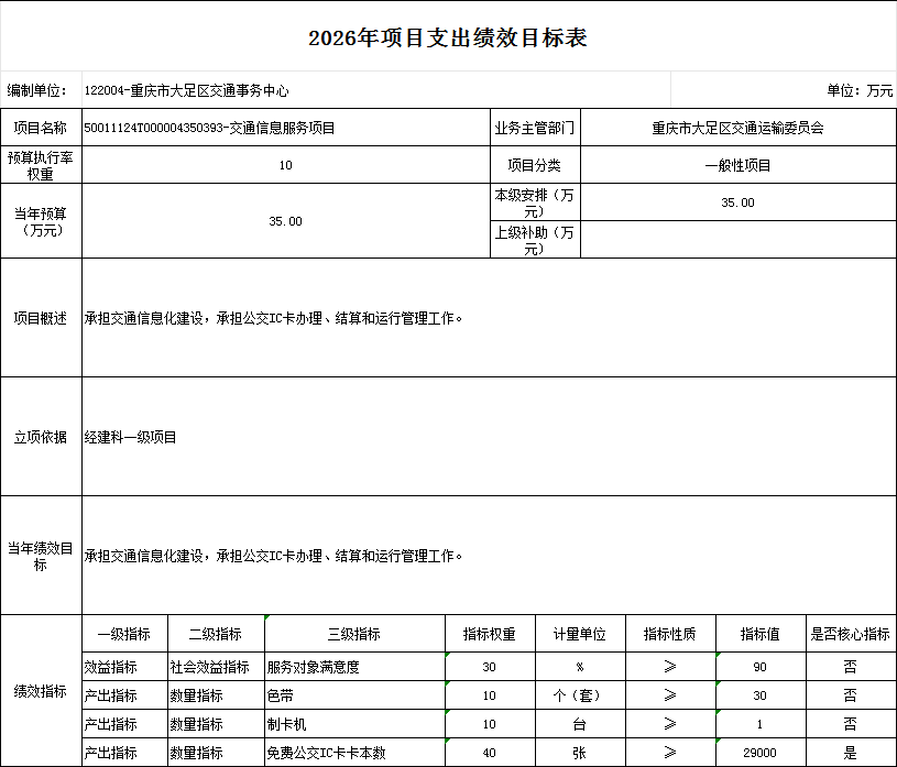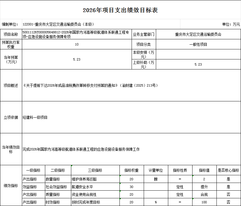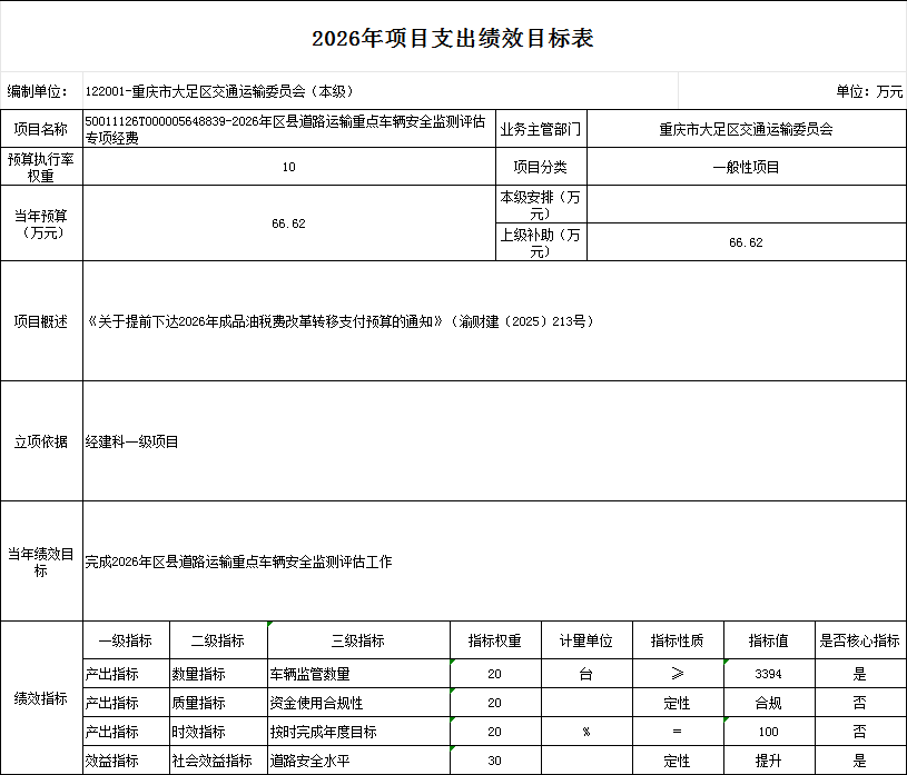 重庆市大足区交通运输委员会 2026年部门预算情况说明