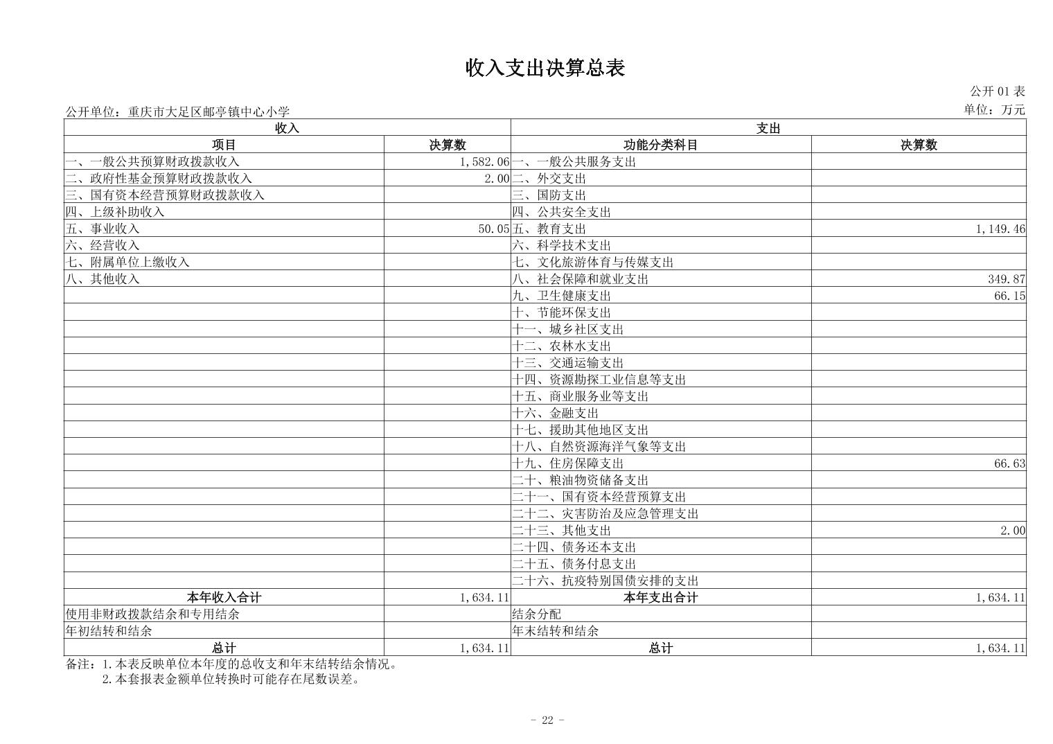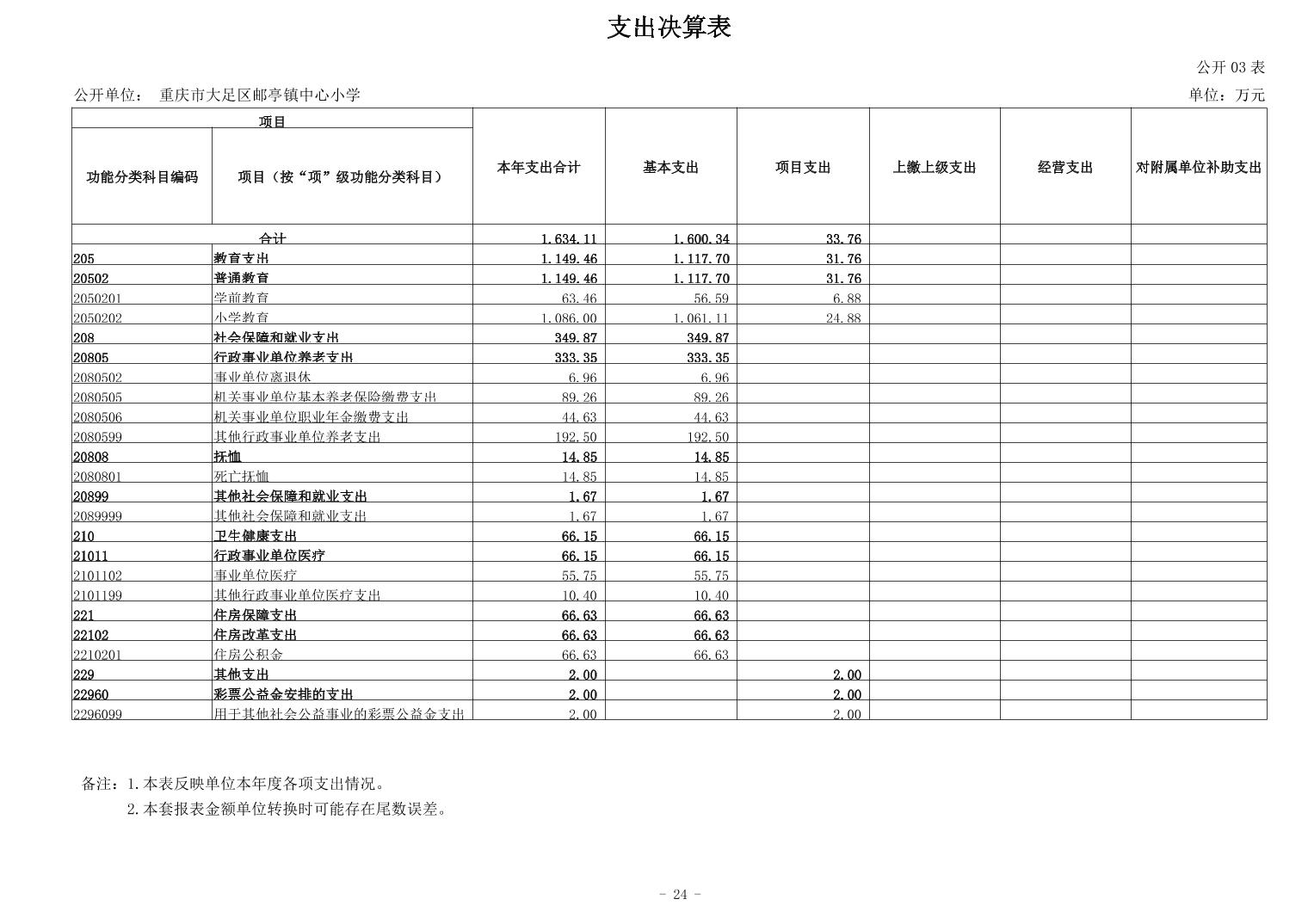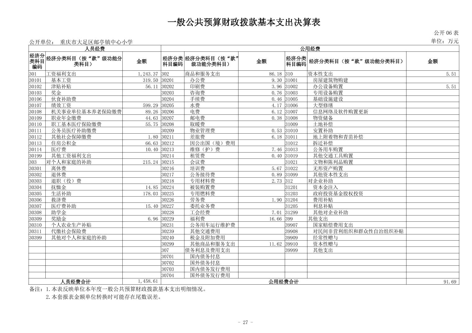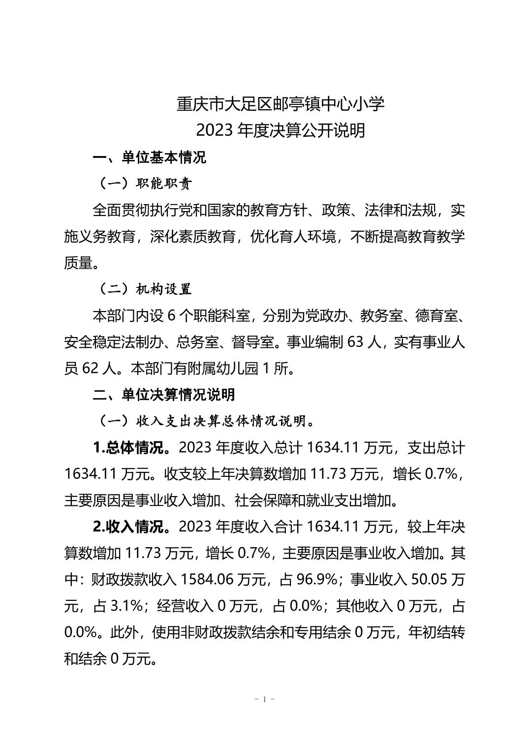 重庆市大足区邮亭镇中心小学2023年度决算公开说明
