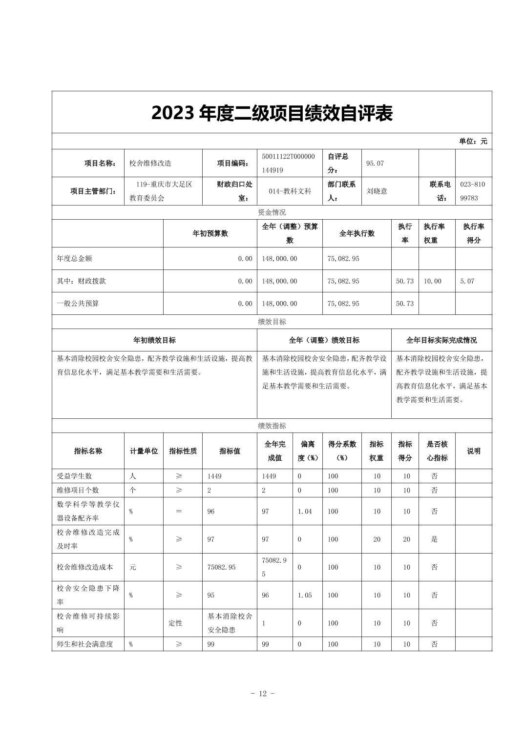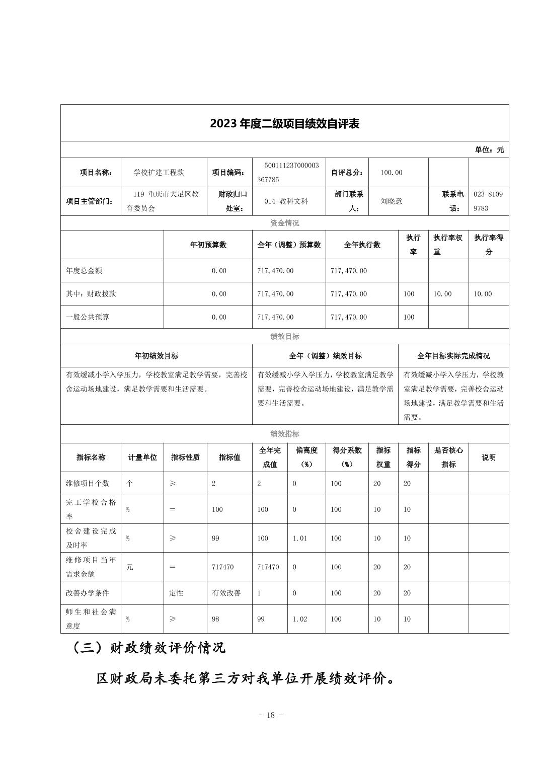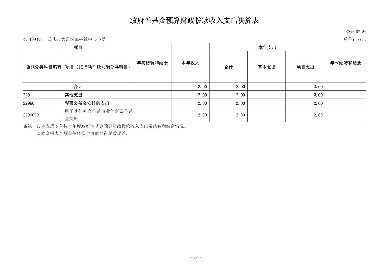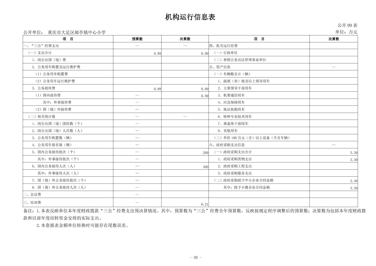 重庆市大足区邮亭镇中心小学2023年度决算公开说明