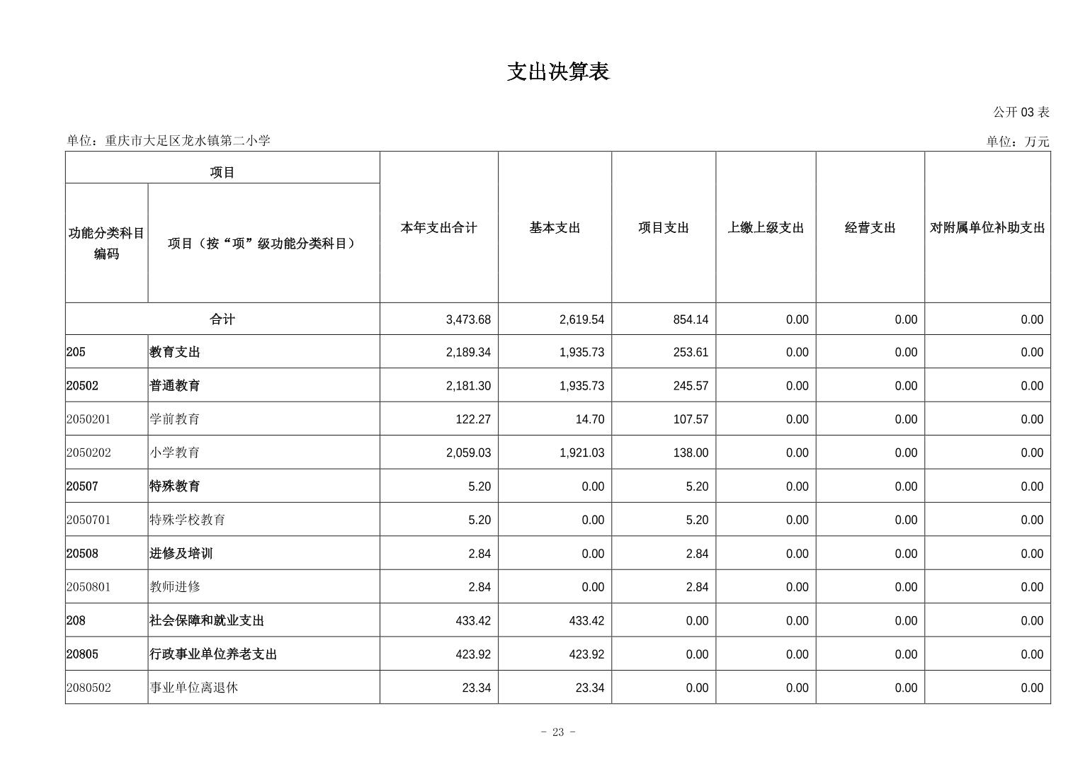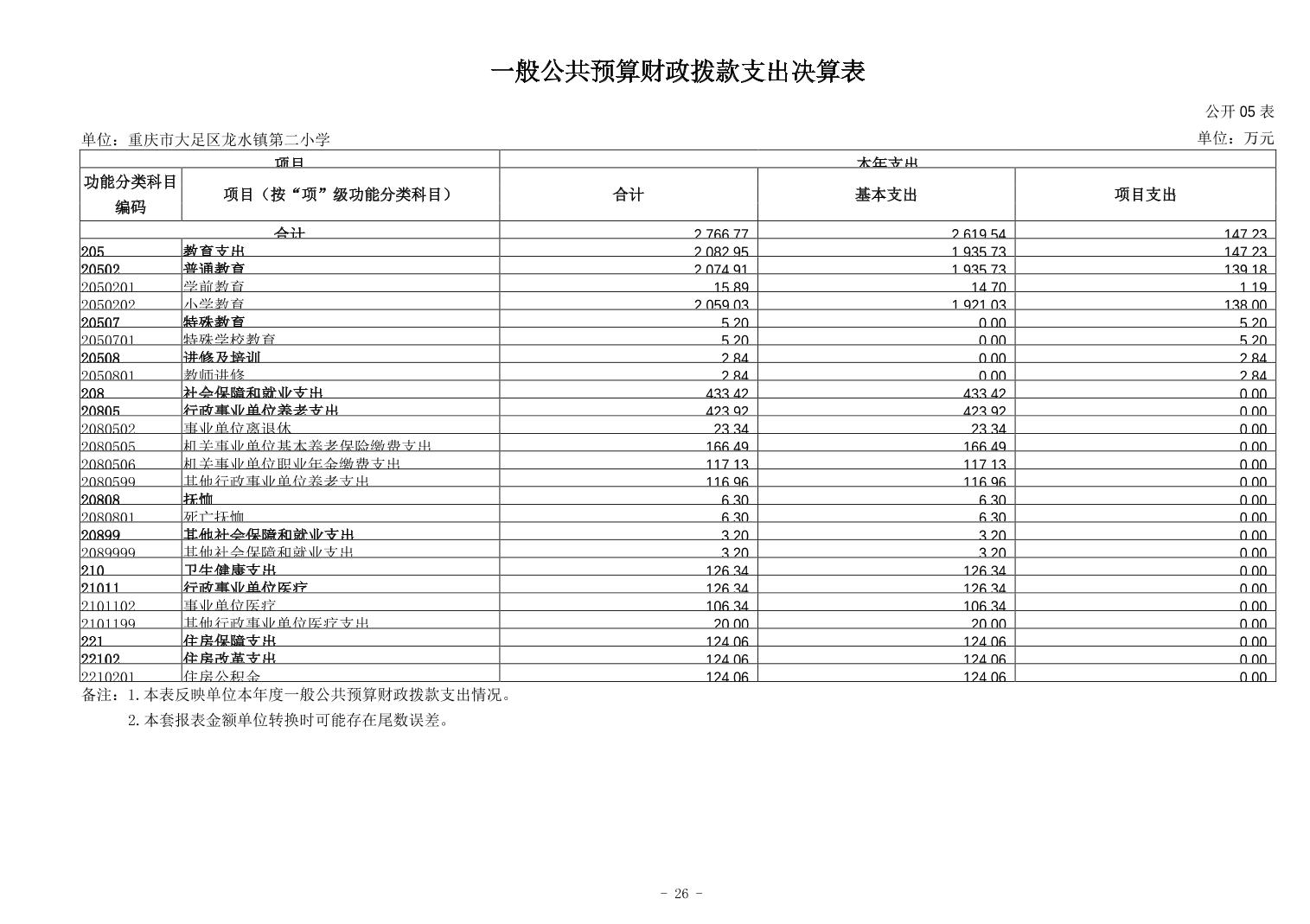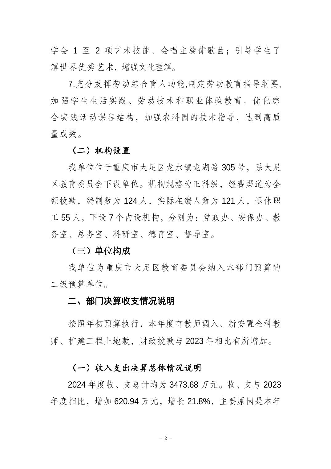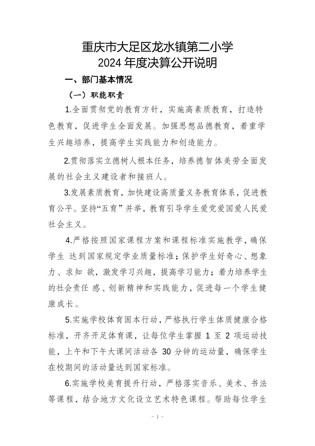 重庆市大足区龙水镇第二小学 2024 年度决算公开说明
