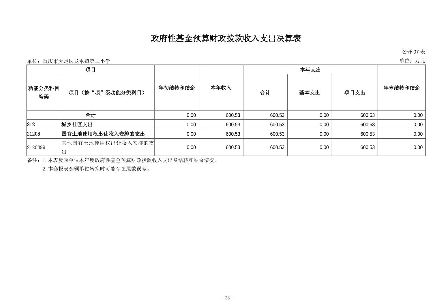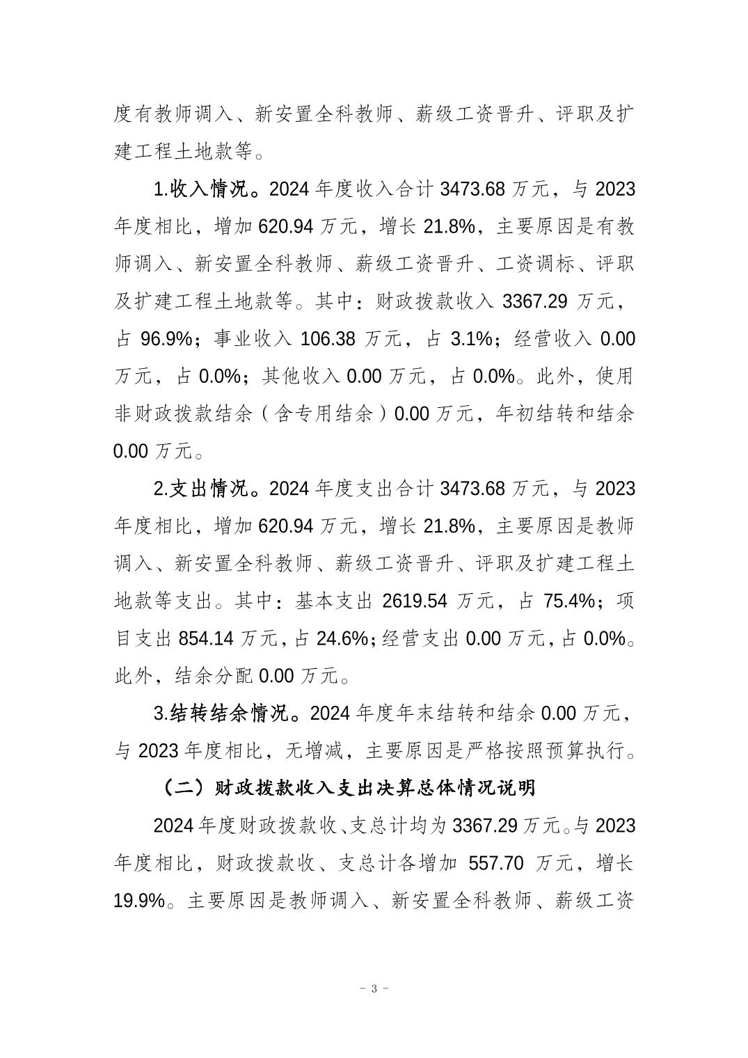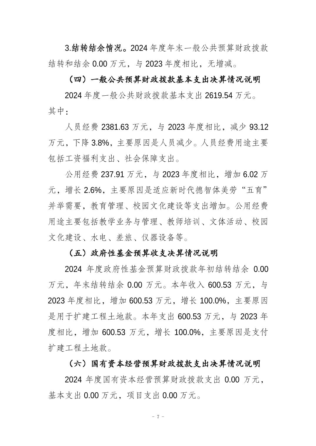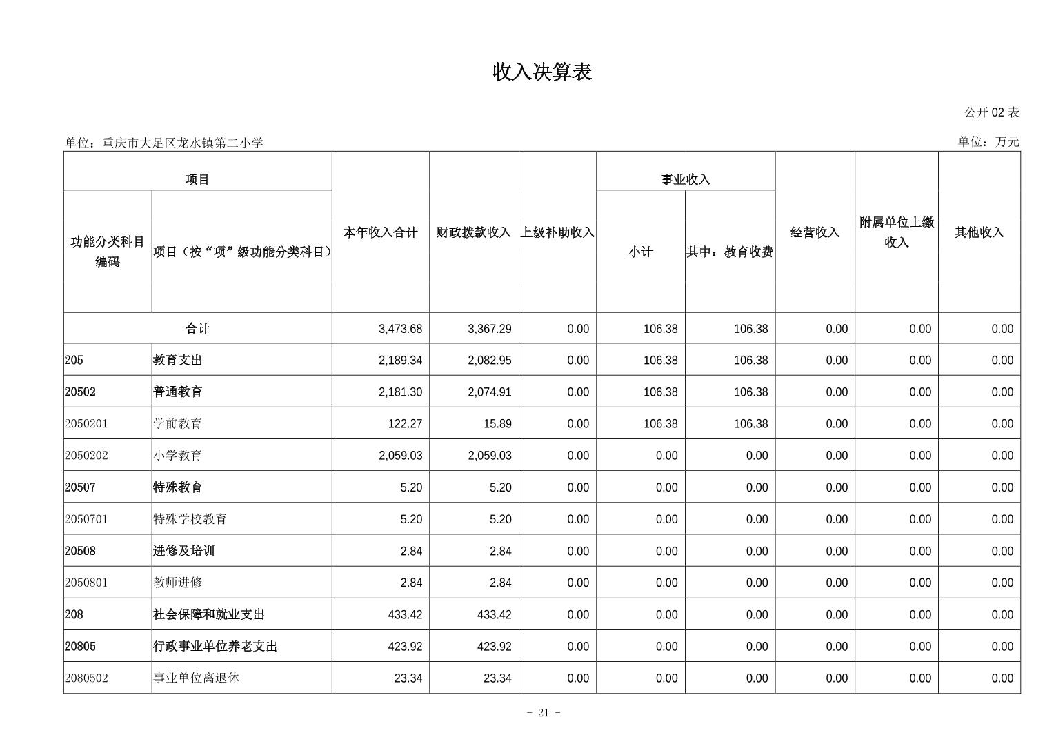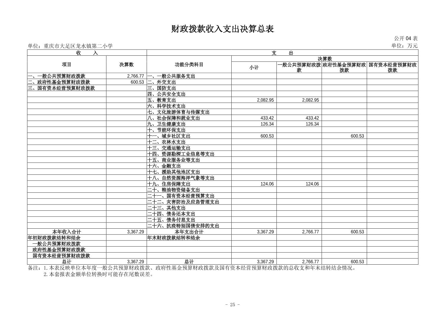 重庆市大足区龙水镇第二小学 2024 年度决算公开说明