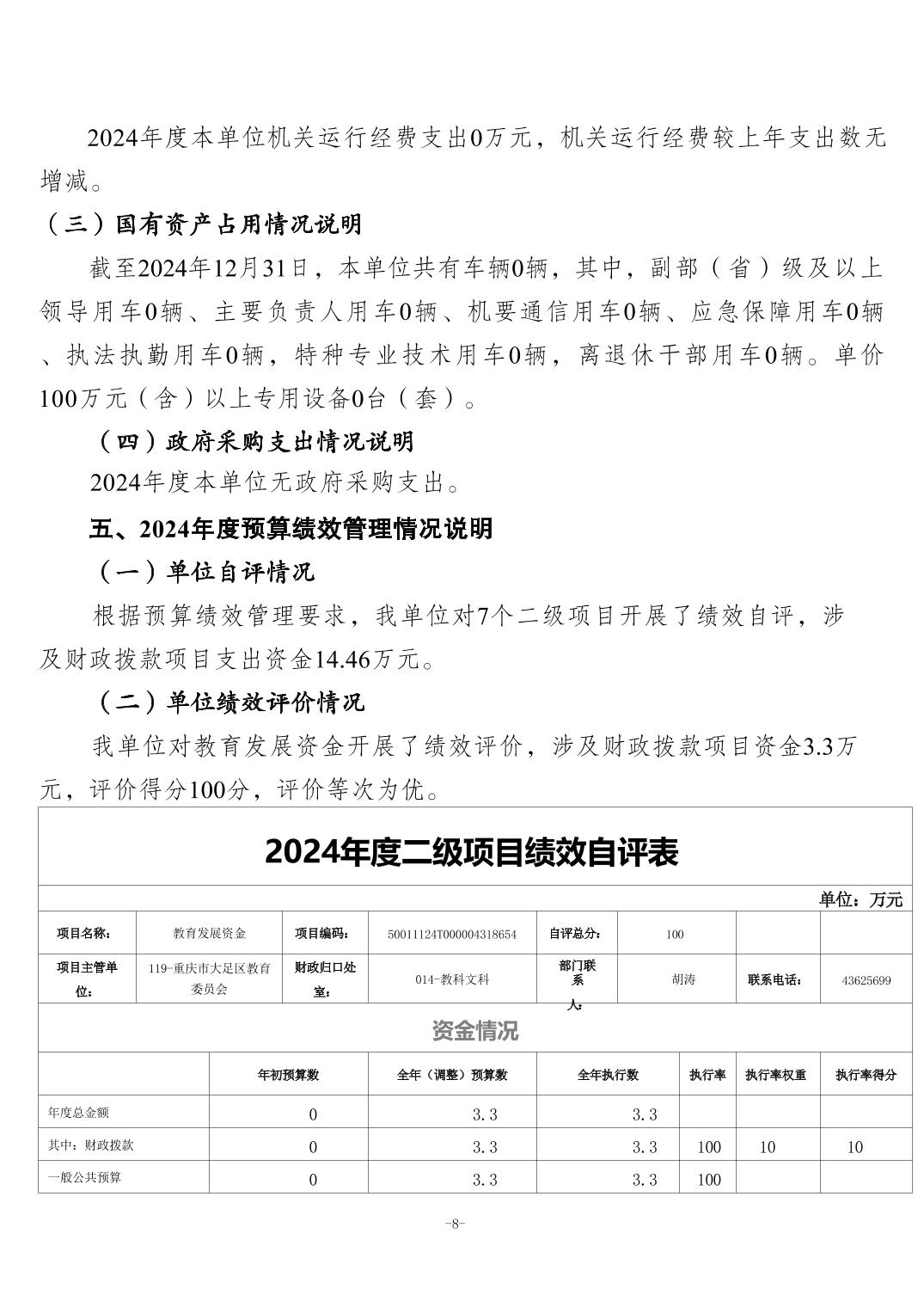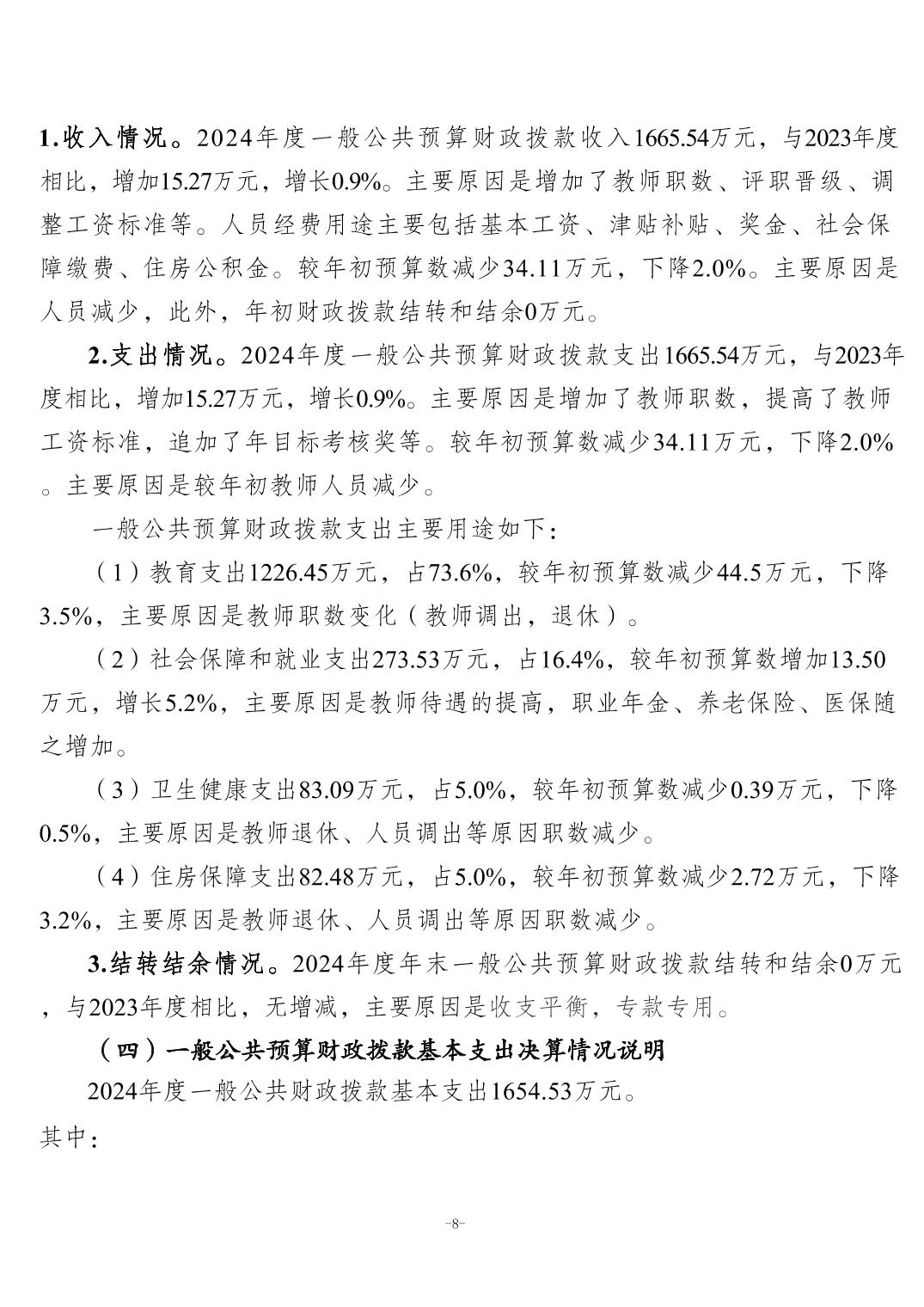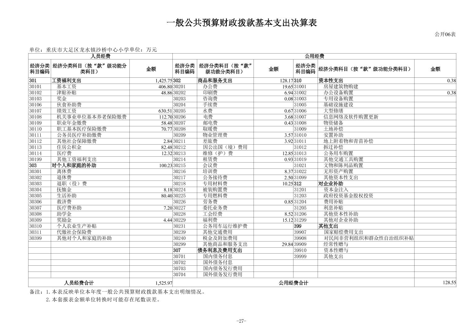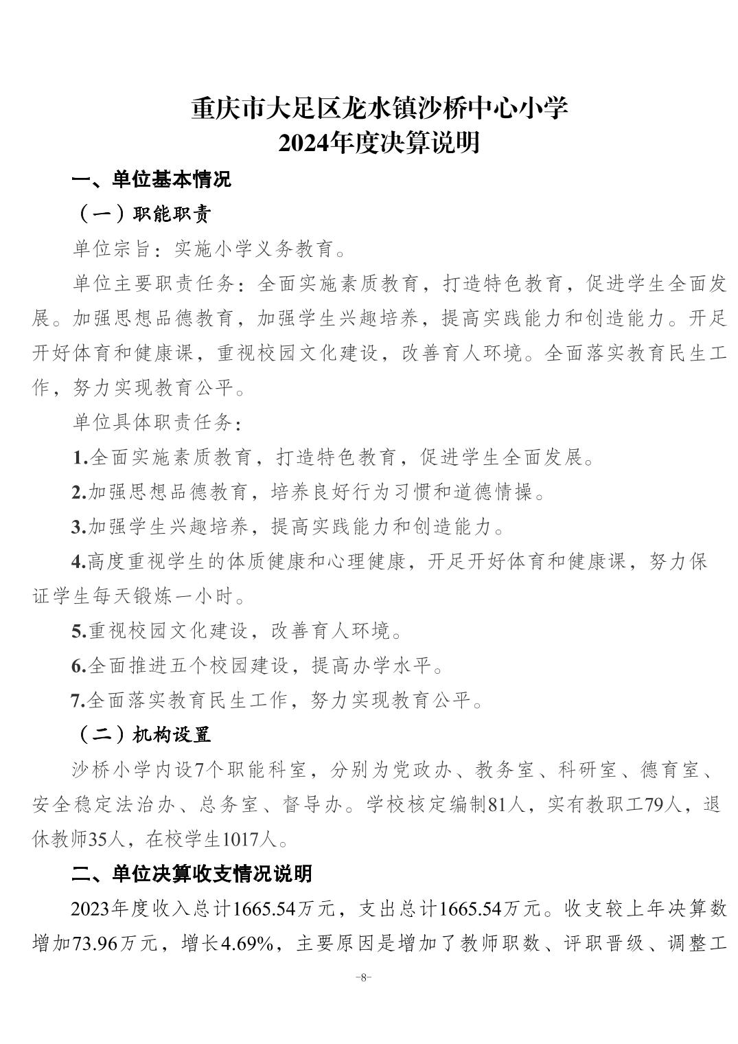 重庆市大足区龙水镇沙桥中心小学2024年度决算说明