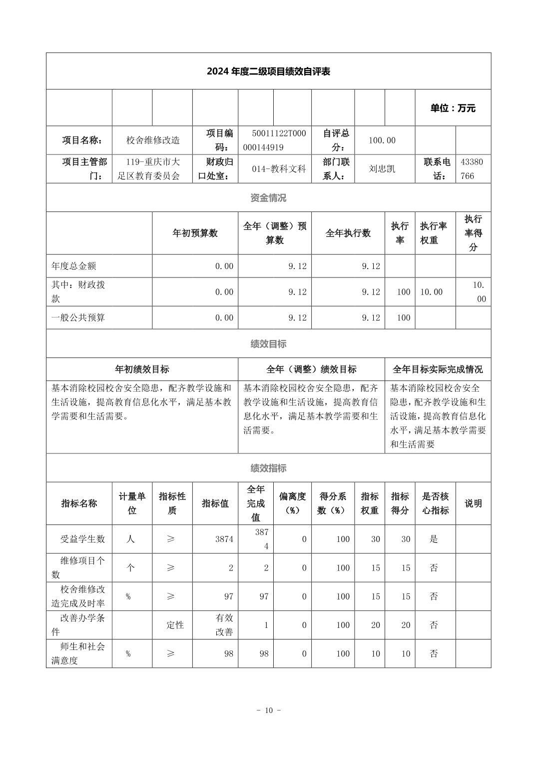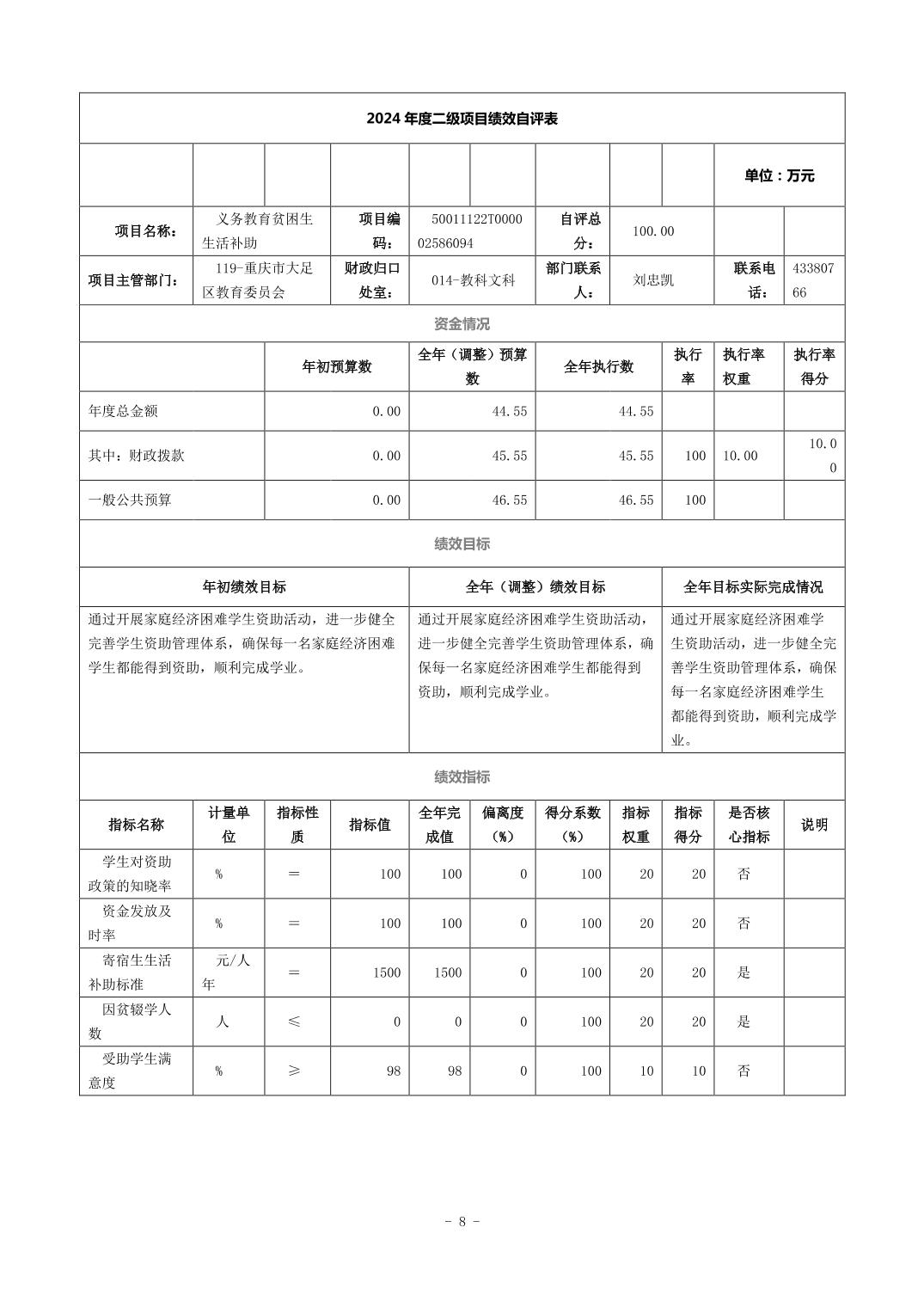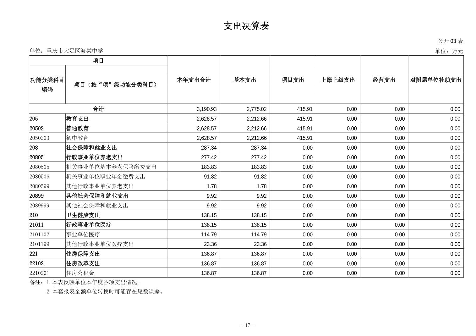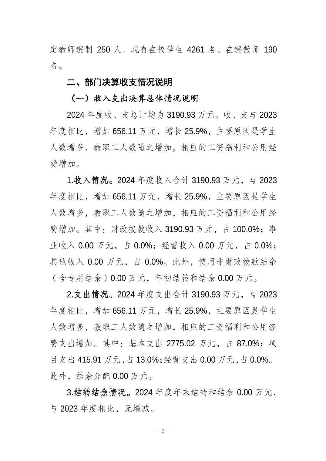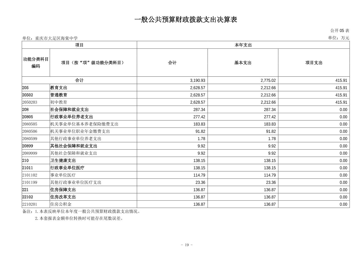 重庆市大足区海棠中学 2024 年度决算公开说明