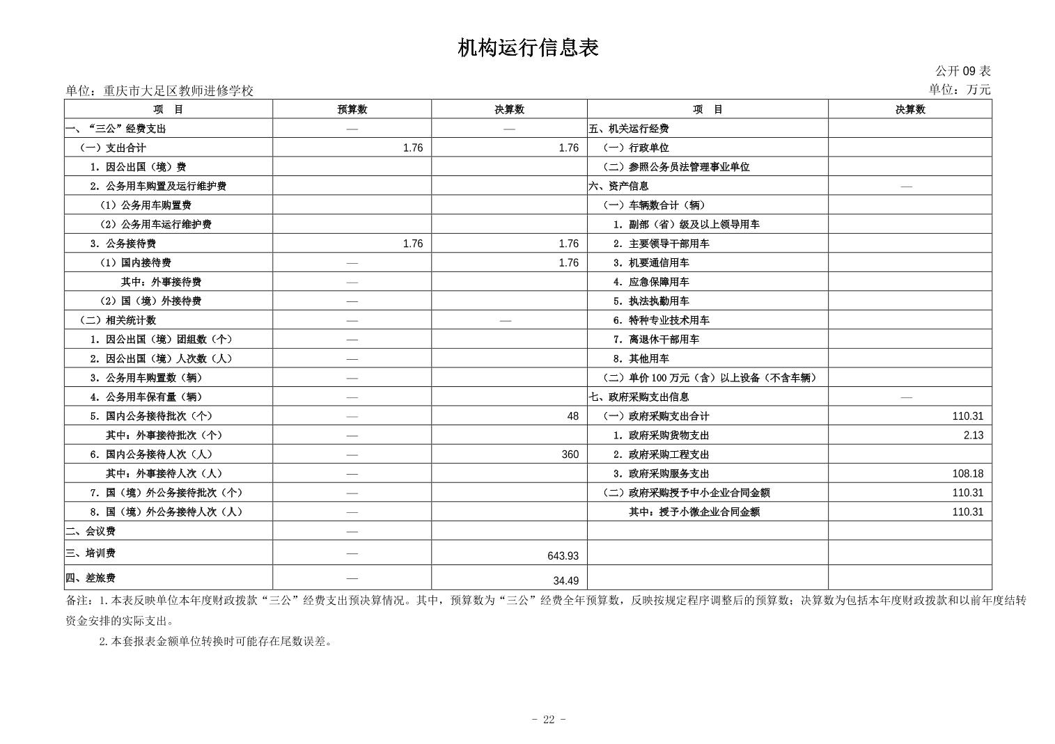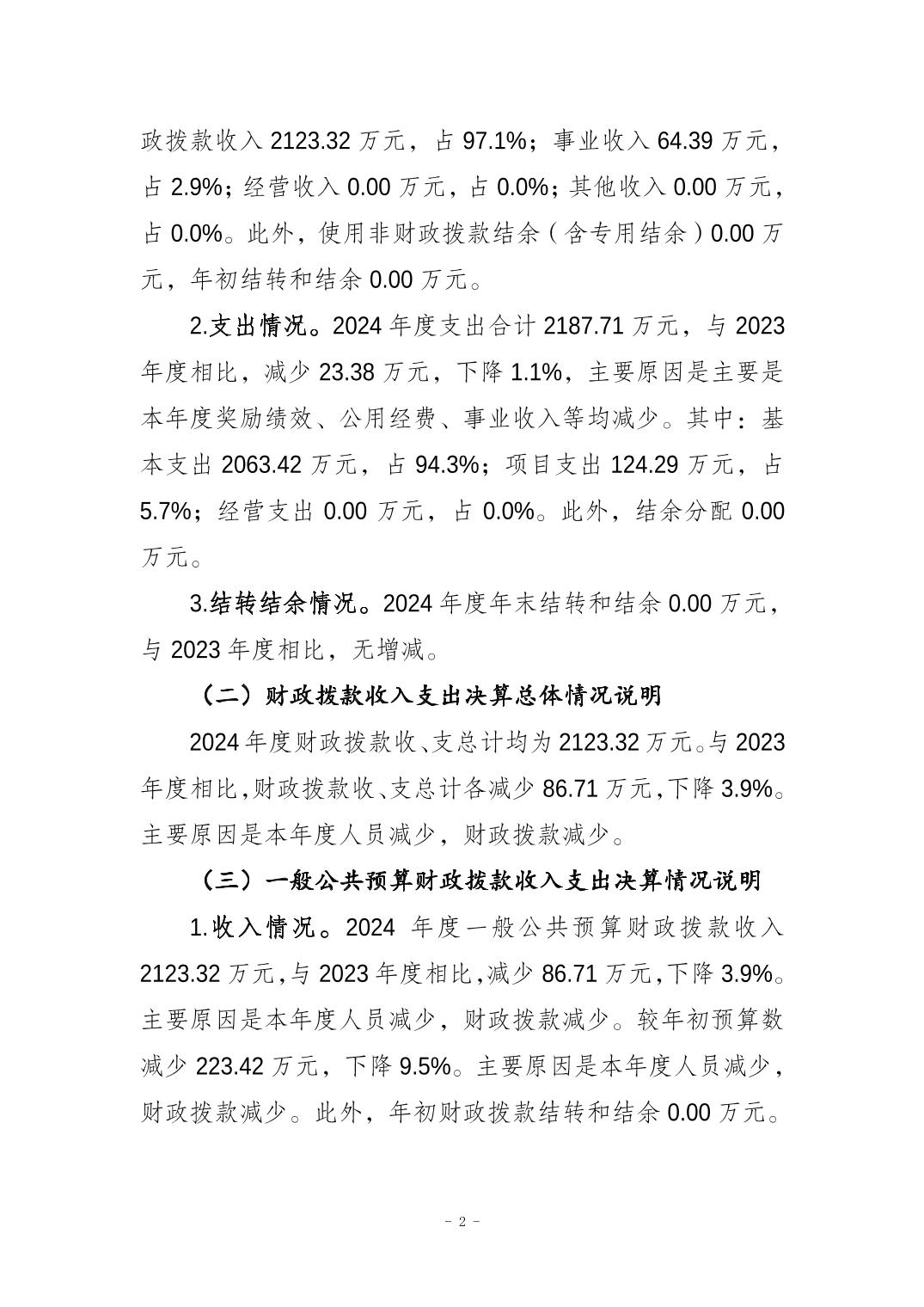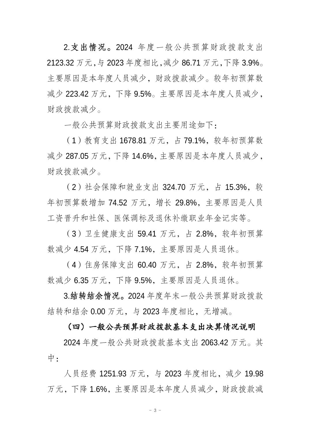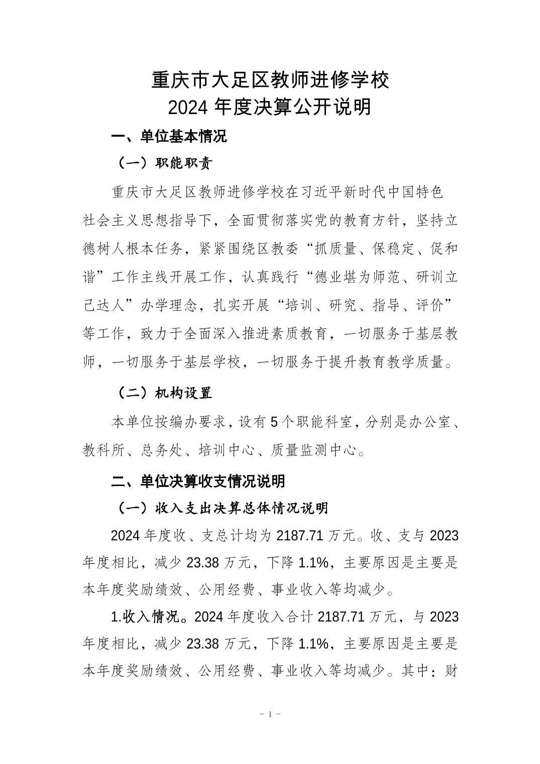 重庆市大足区教师进修学校2024 年度决算公开说明