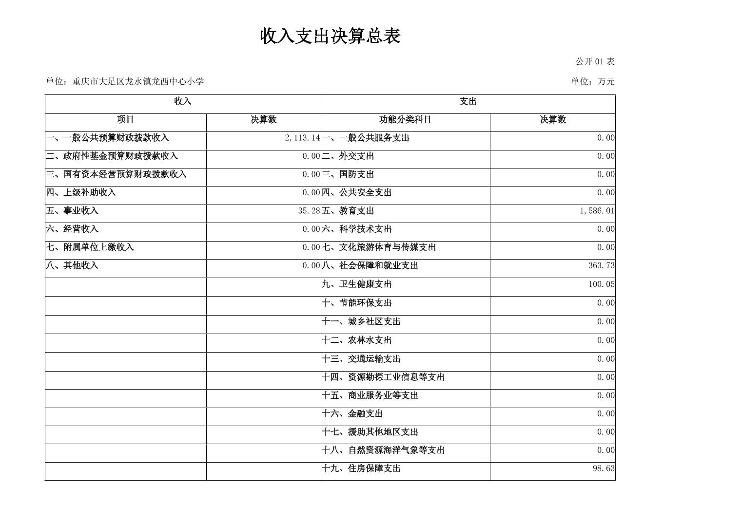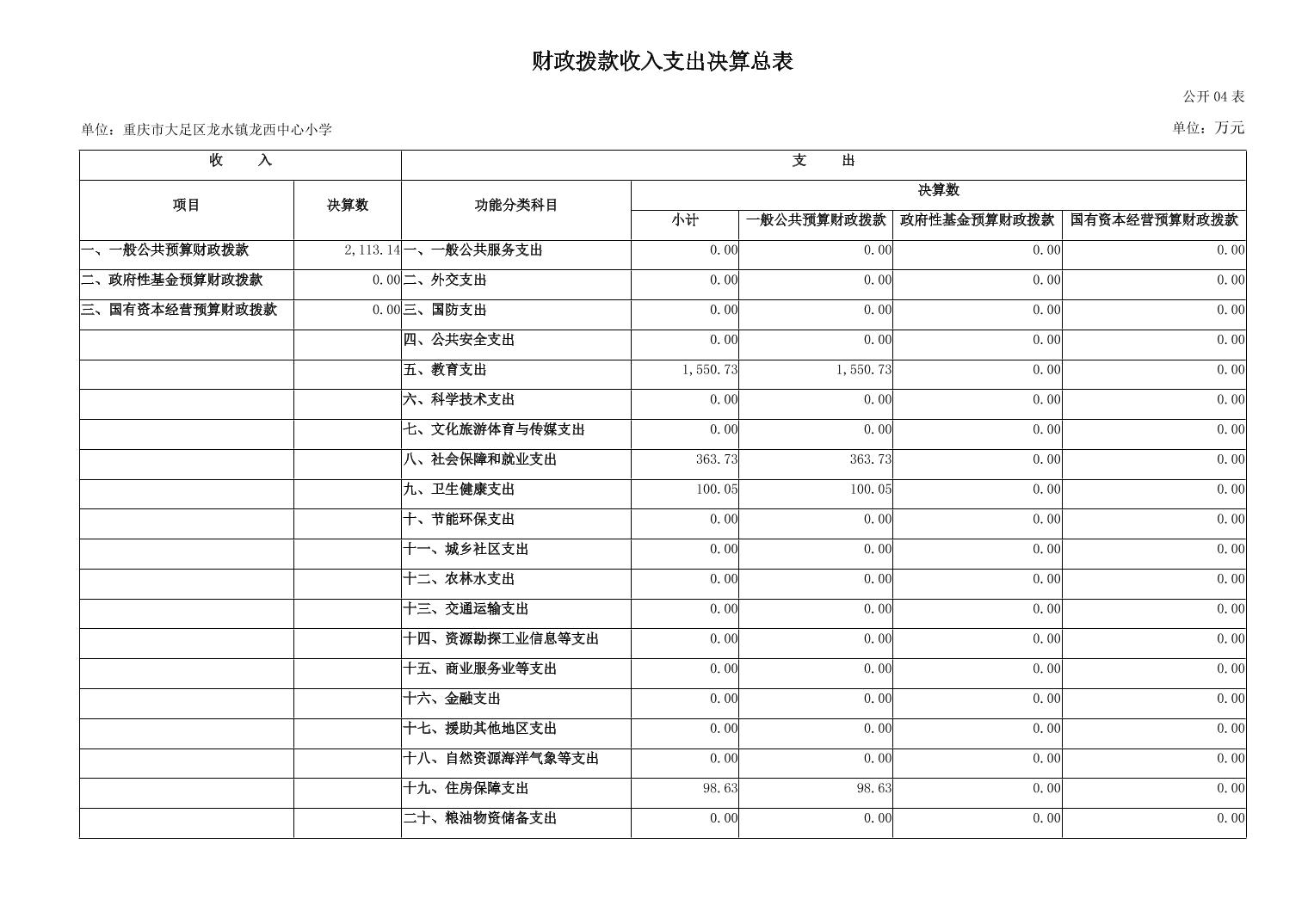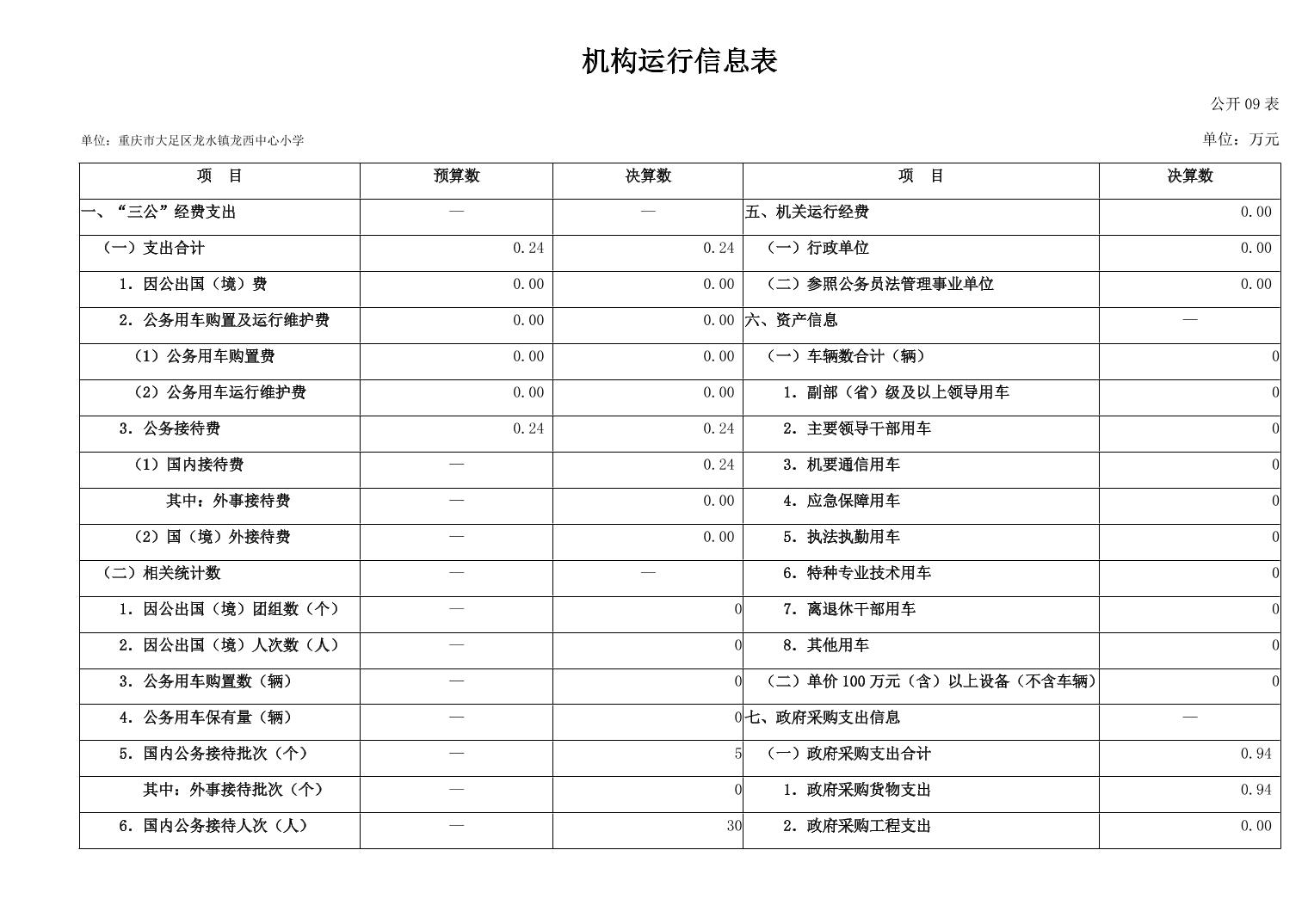 重庆市大足区龙水镇龙西中心小学2024年度决算公开说明