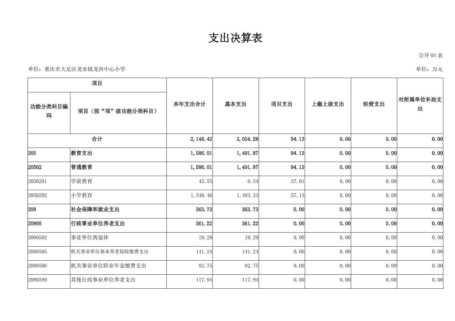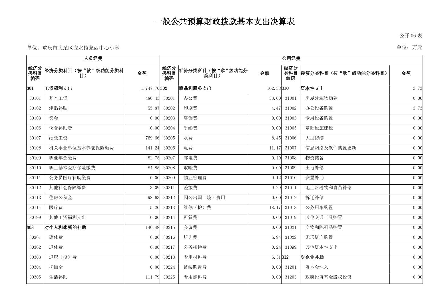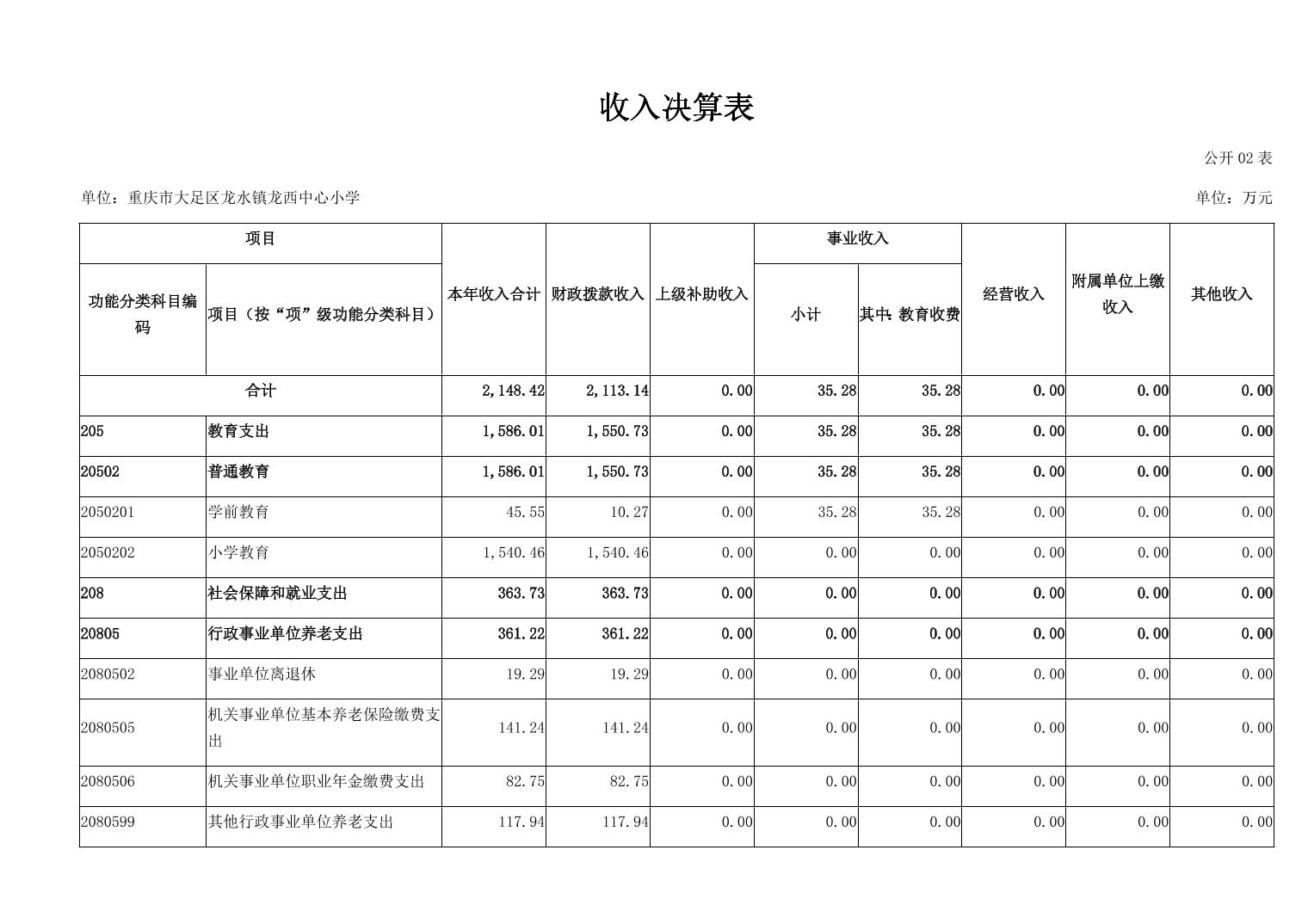 重庆市大足区龙水镇龙西中心小学2024年度决算公开说明