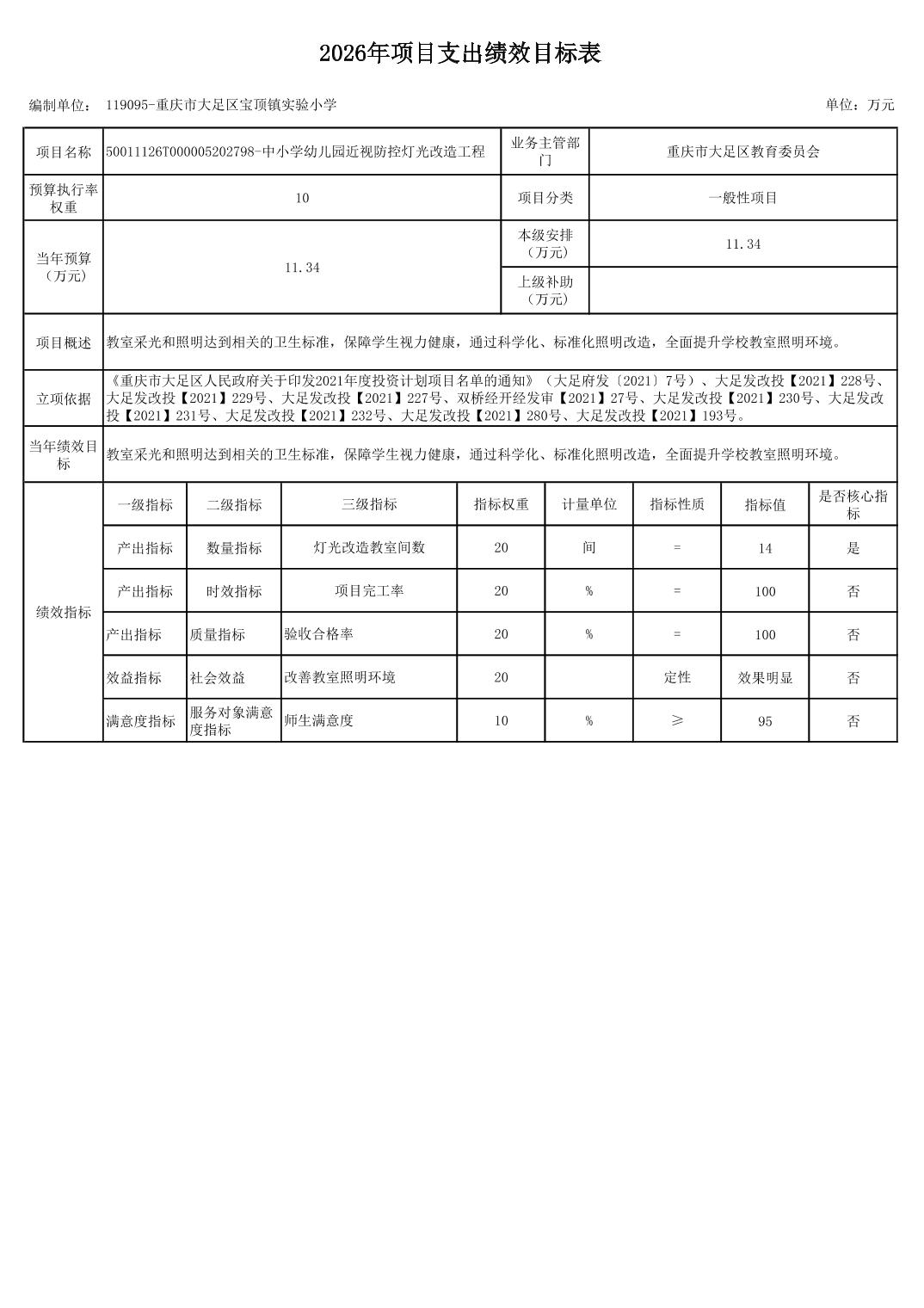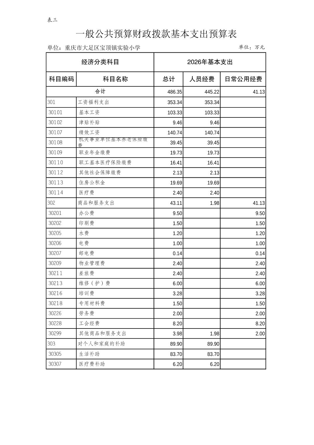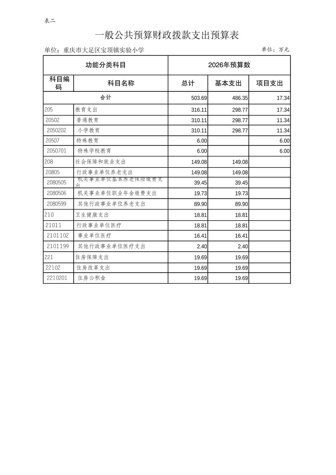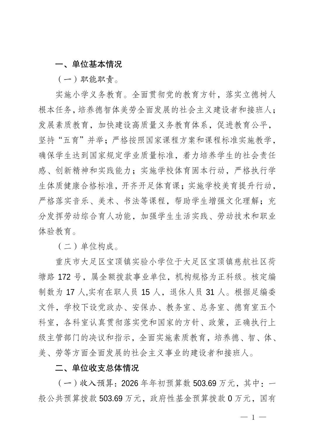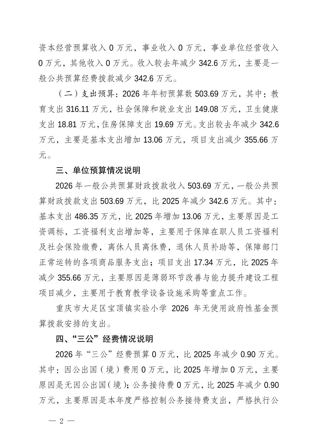 重庆市大足区宝顶镇实验小学2026年部门预算情况说明