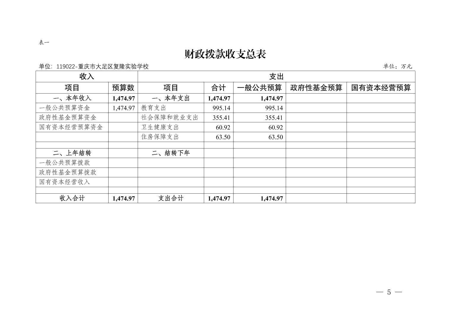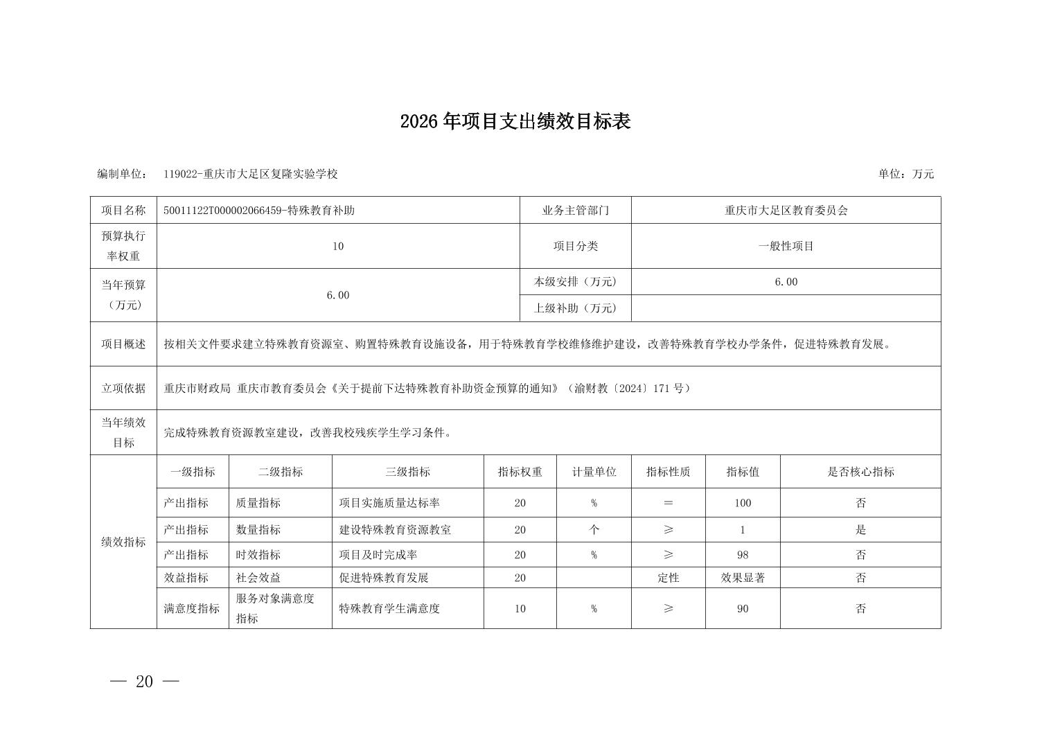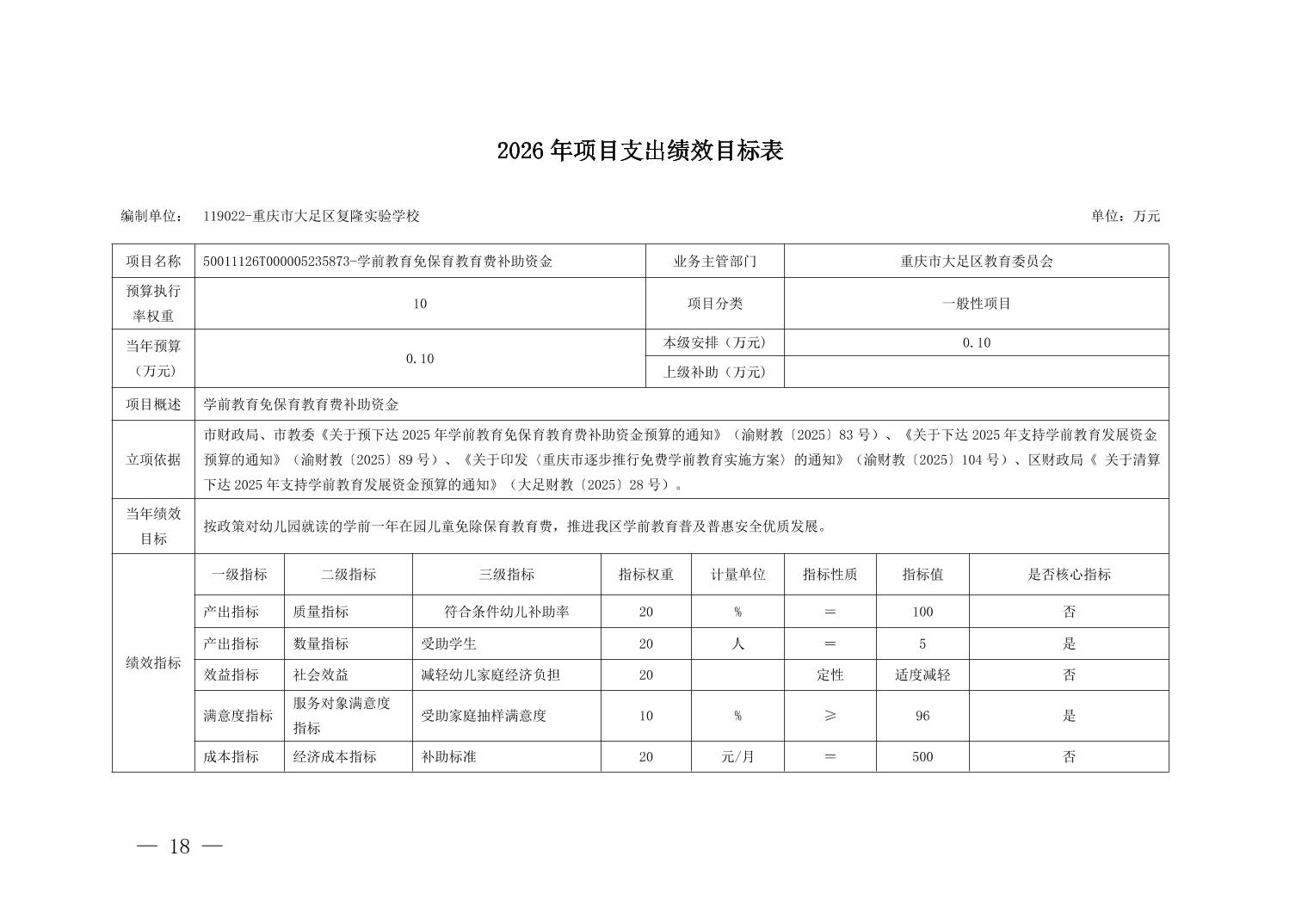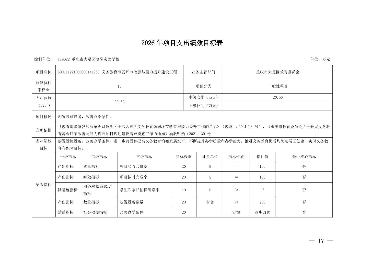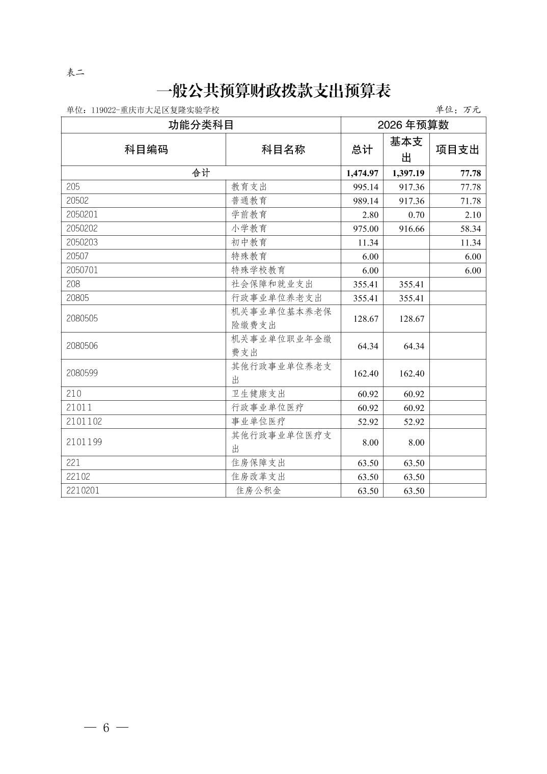 重庆市大足区复隆实验学校2026年部门预算情况说明