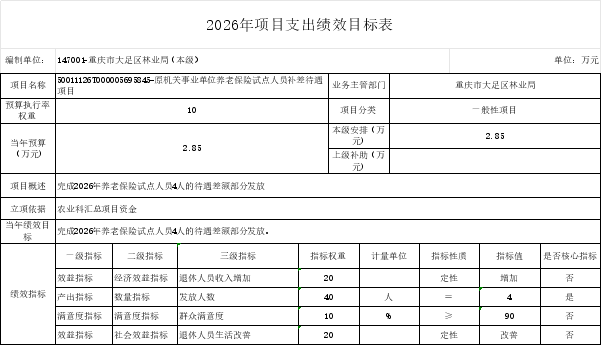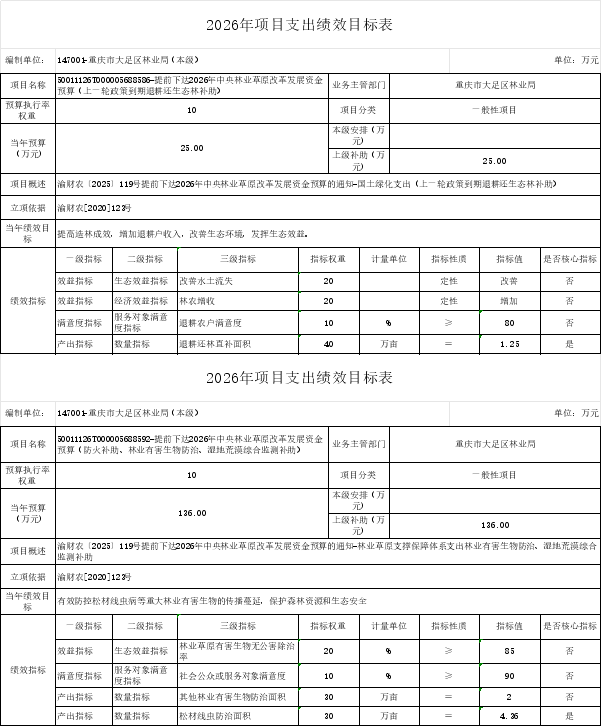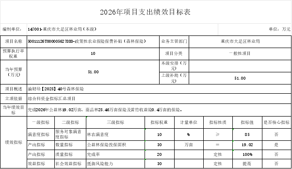 重庆市大足区林业局(本级)2026年部门预算情况说明