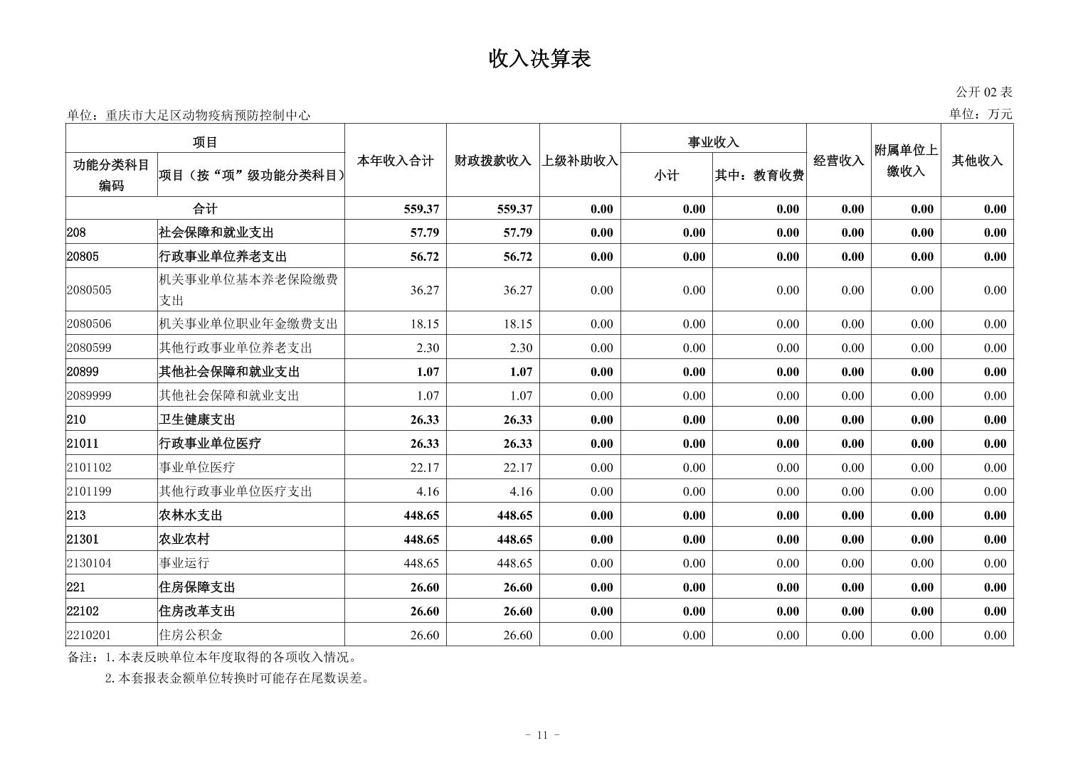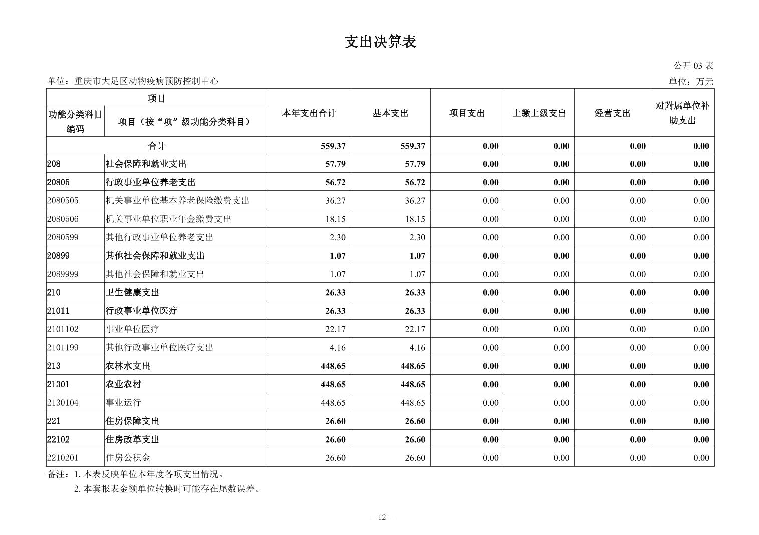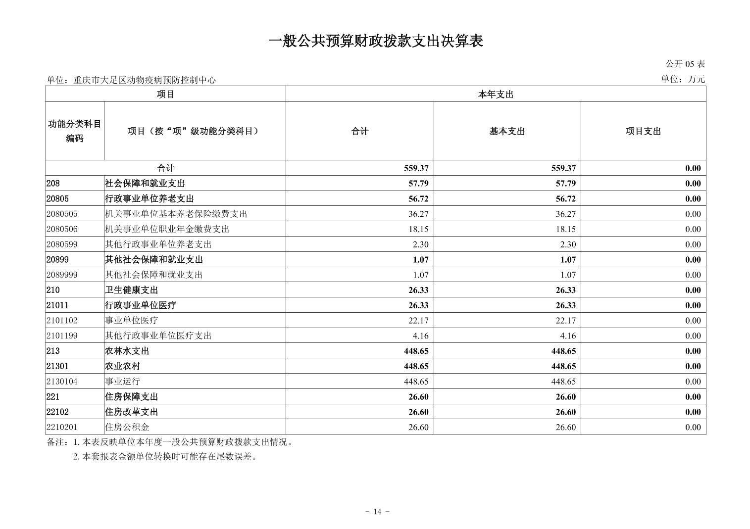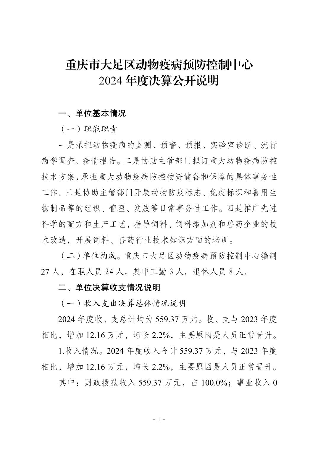 重庆市大足区动物疫病预防控制中心 2024年决算公开说明