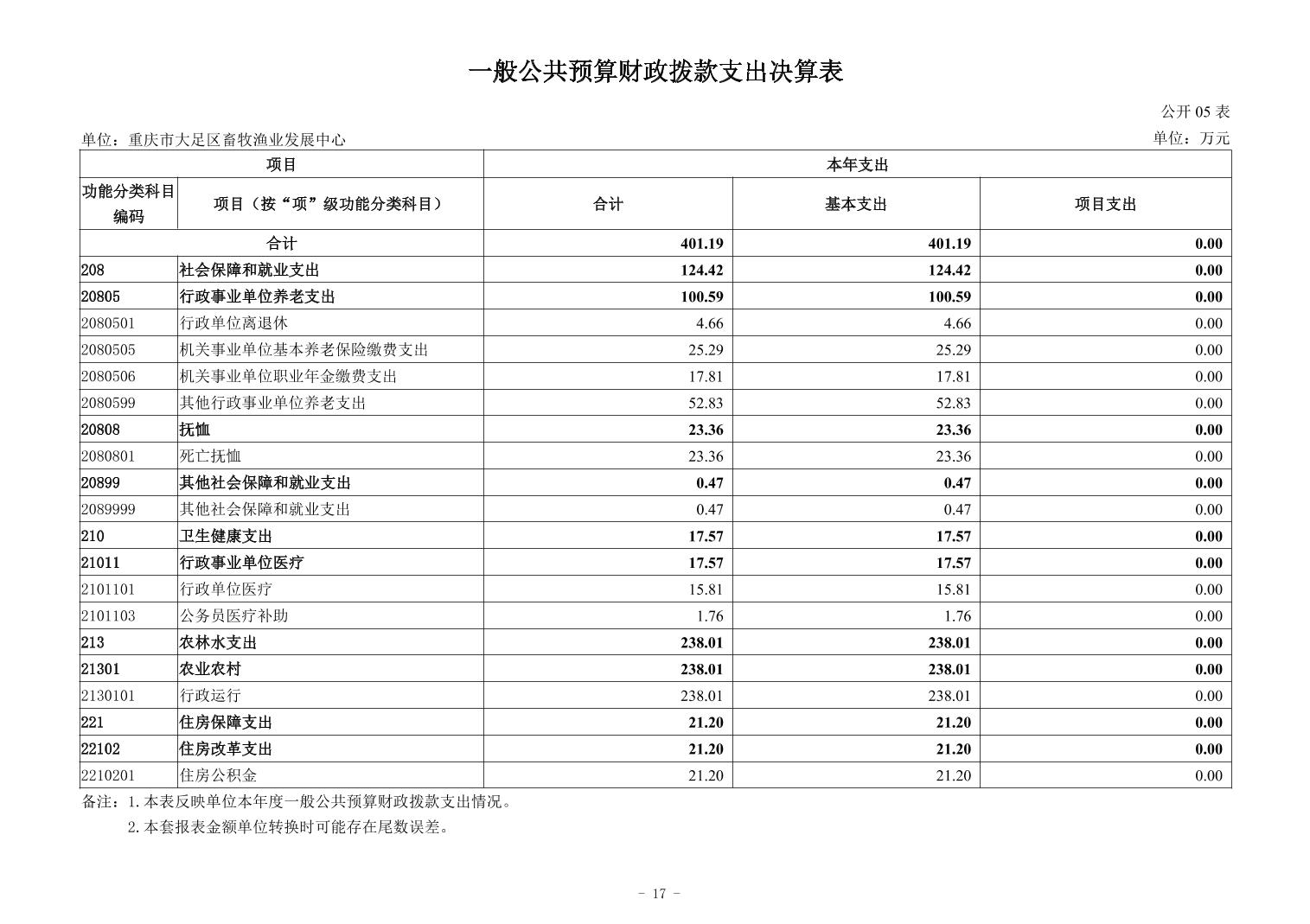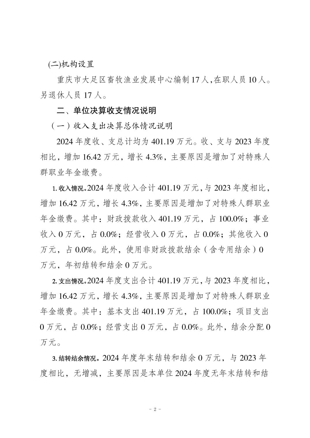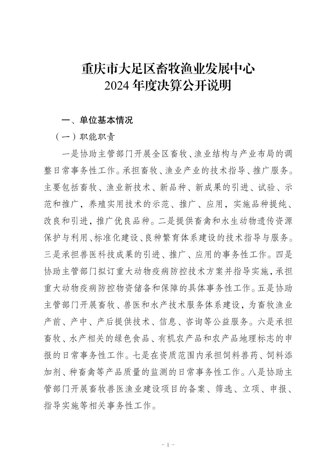 重庆市大足区畜牧渔业发展中心 2024年决算公开说明