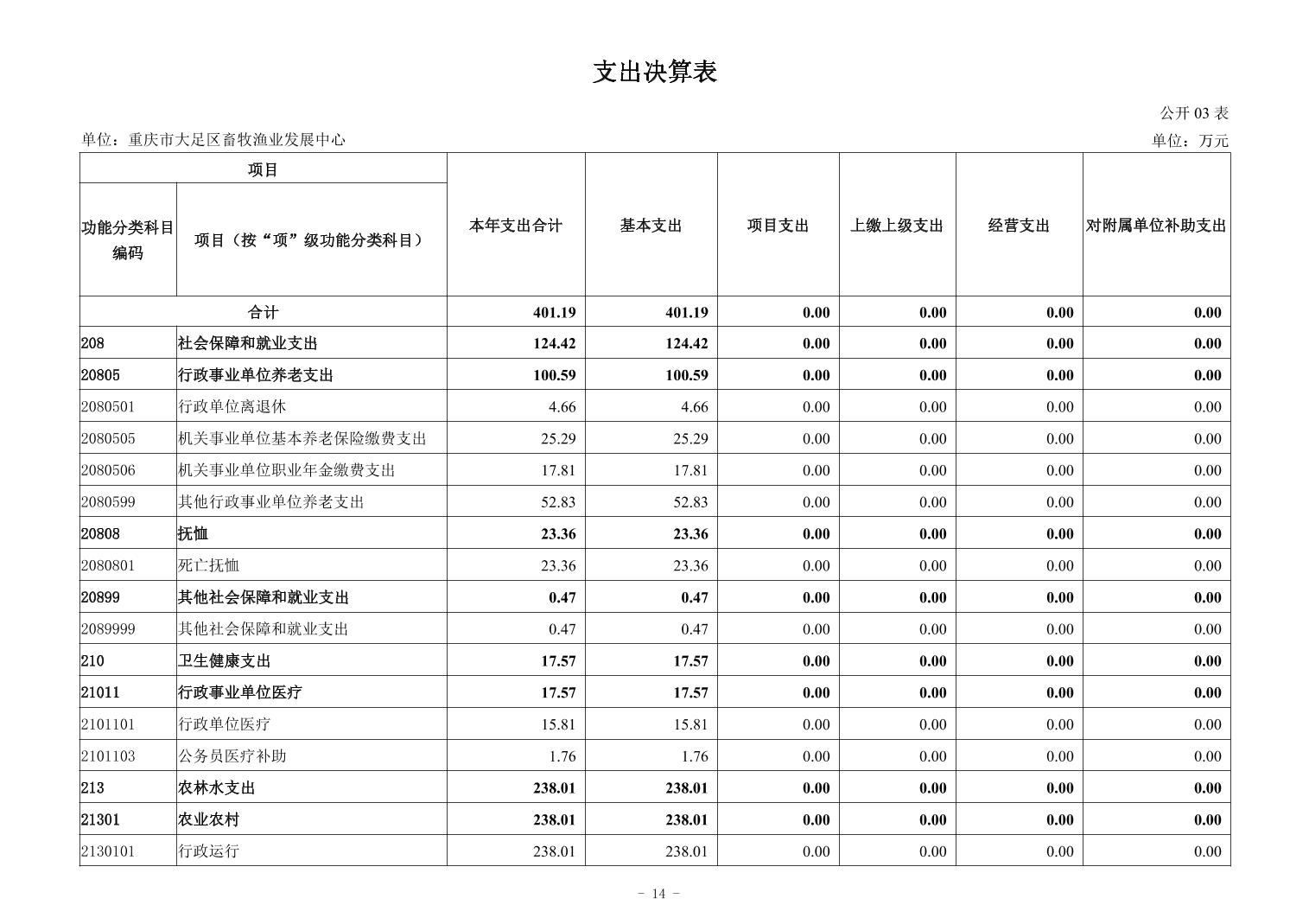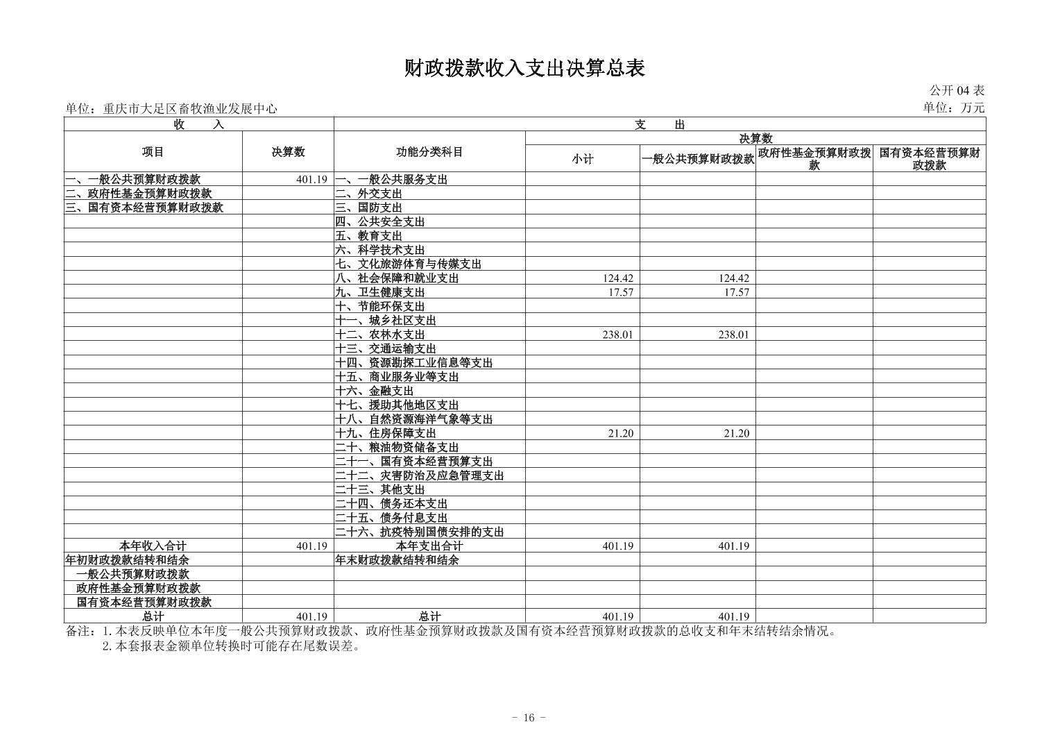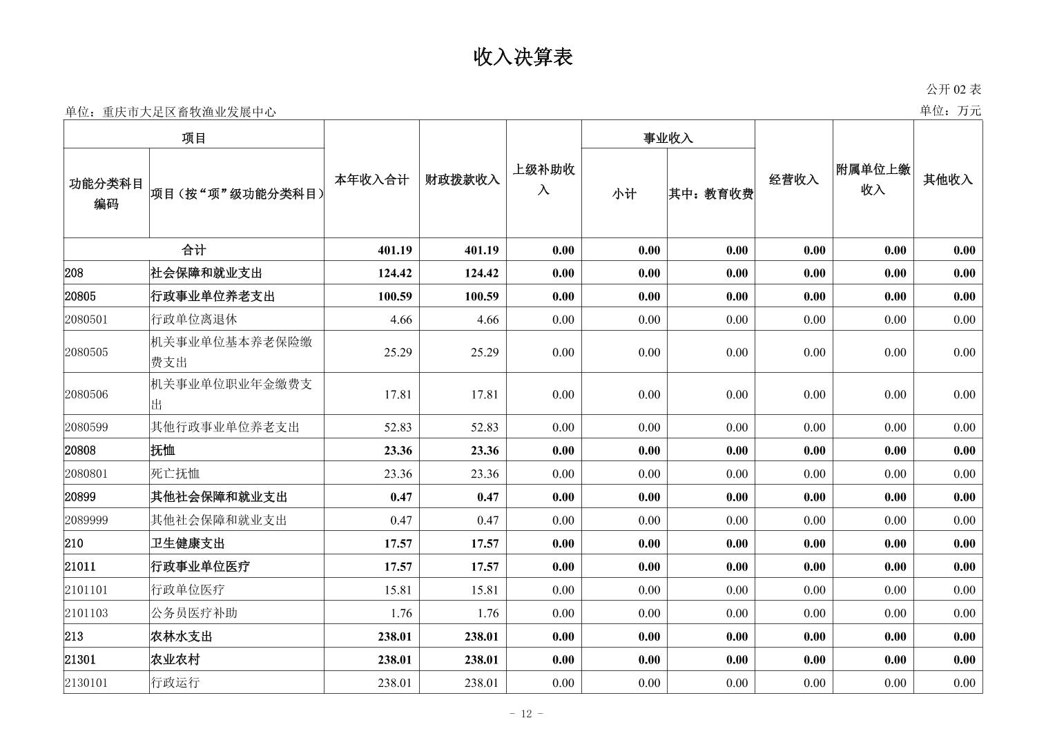 重庆市大足区畜牧渔业发展中心 2024年决算公开说明