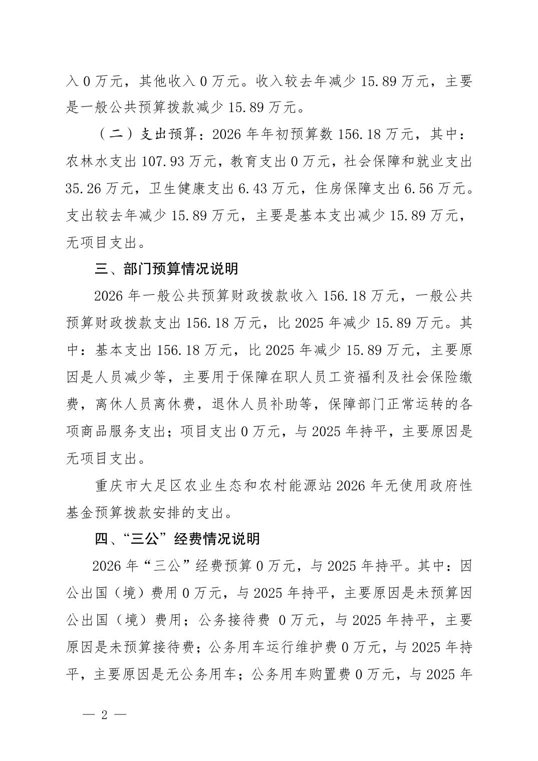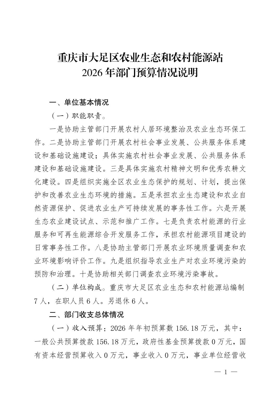 重庆市大足区农业生态和农村能源站2026年部门预算情况说明
