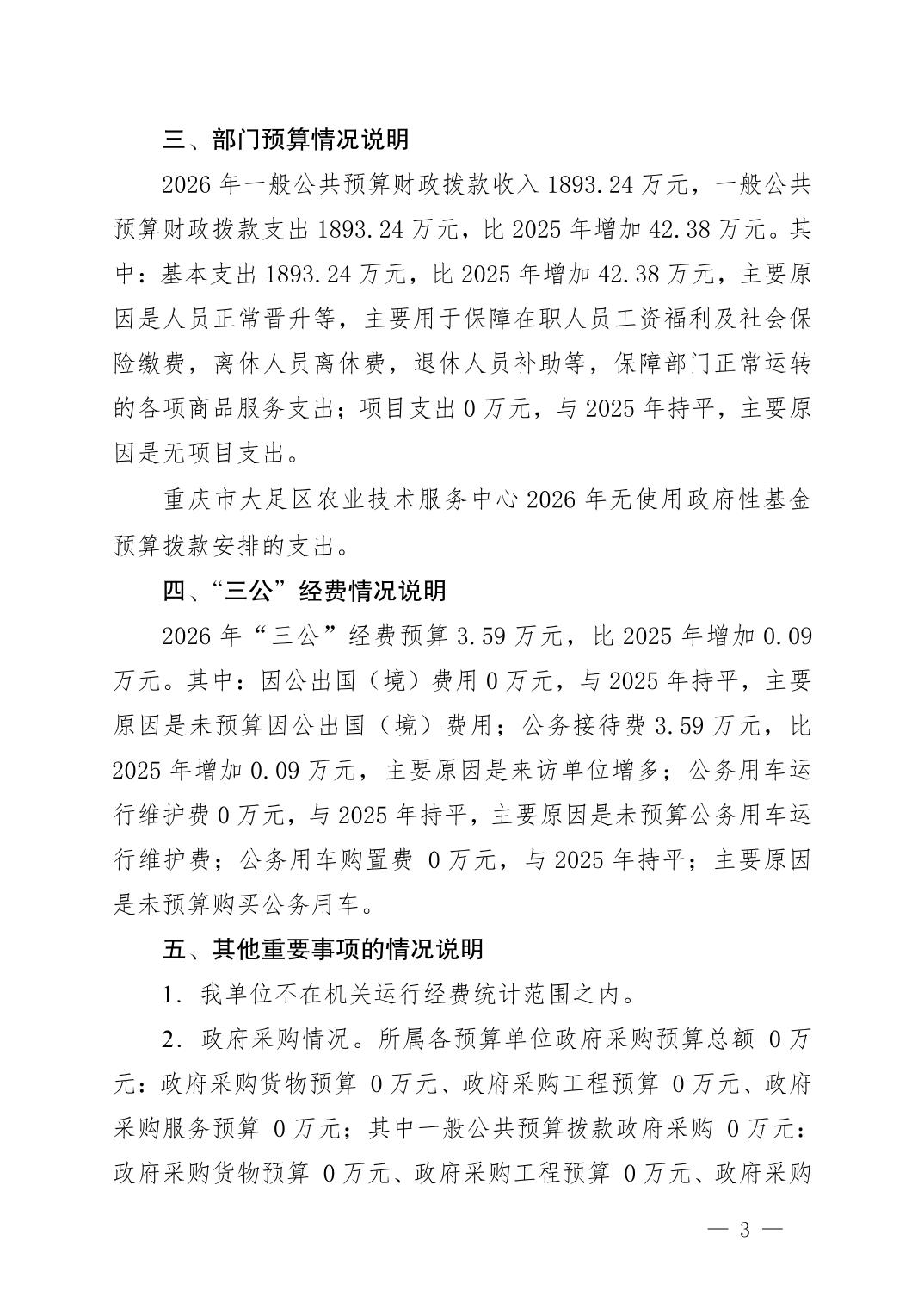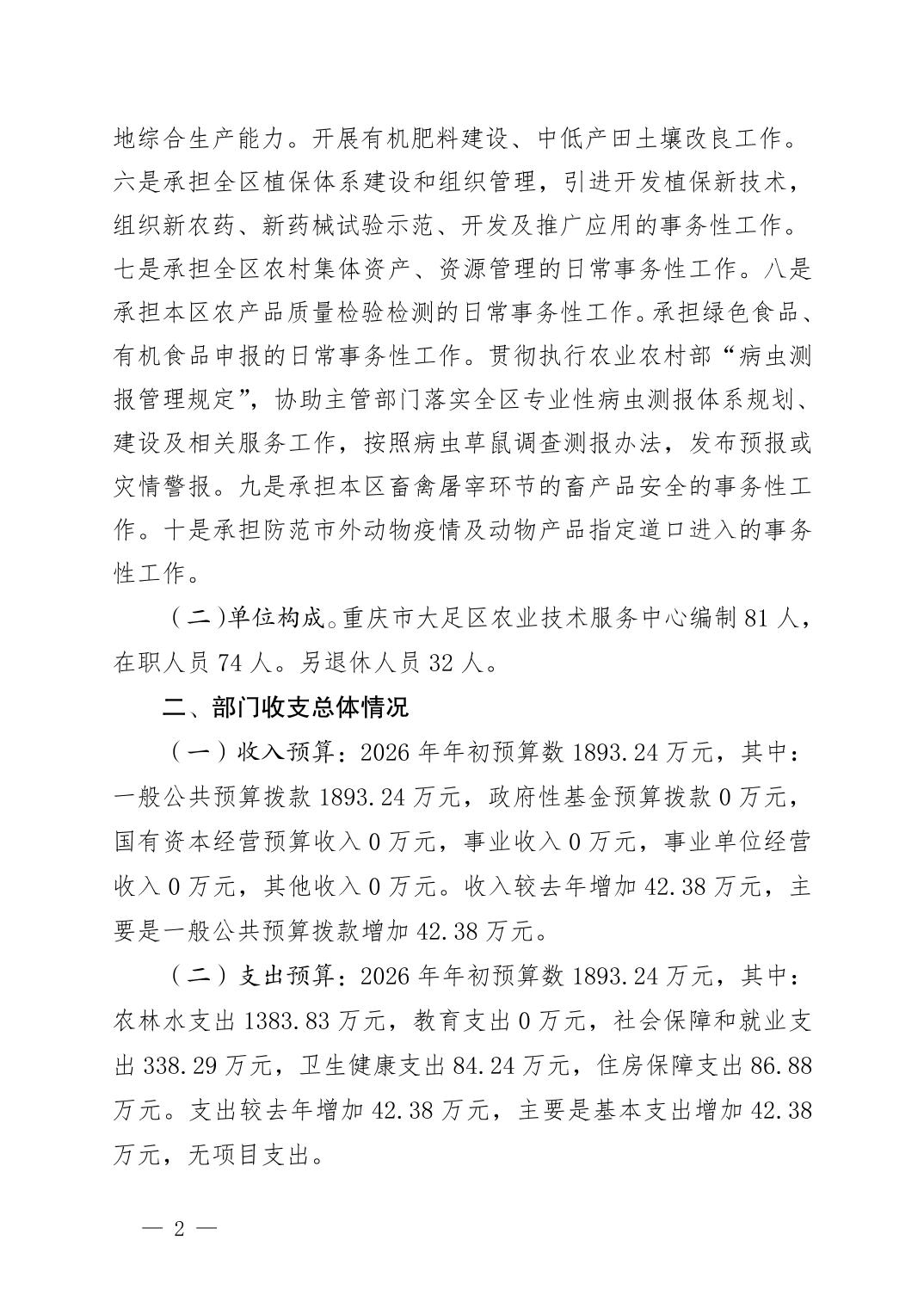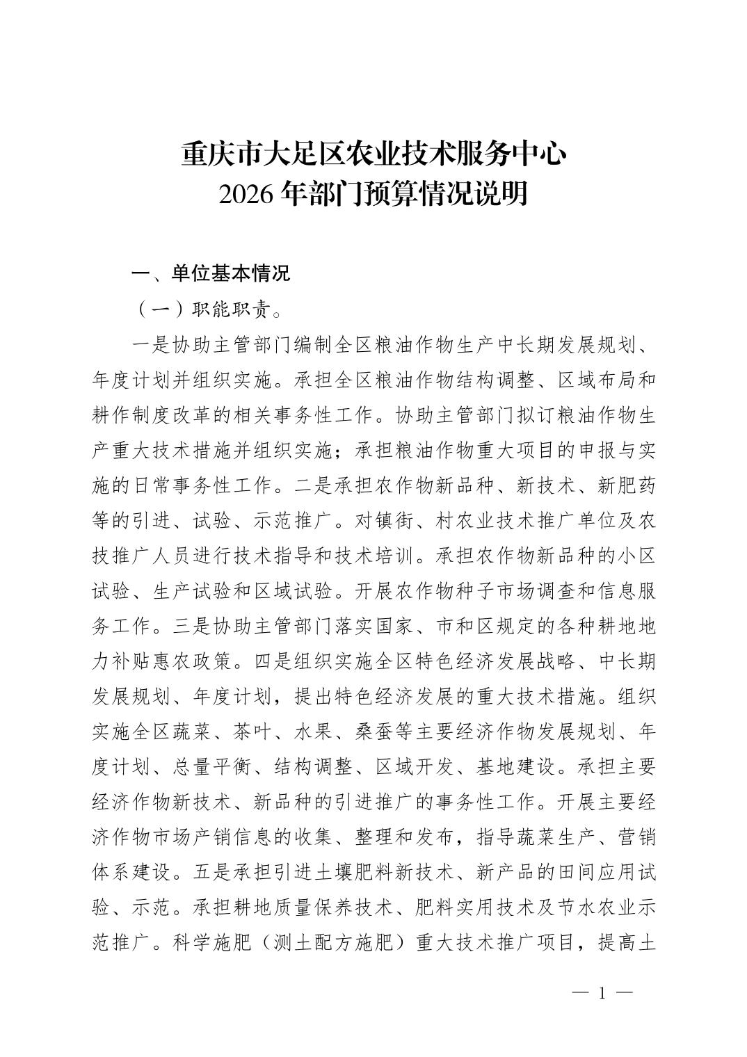 重庆市大足区农业技术服务中心2026年部门预算情况说明