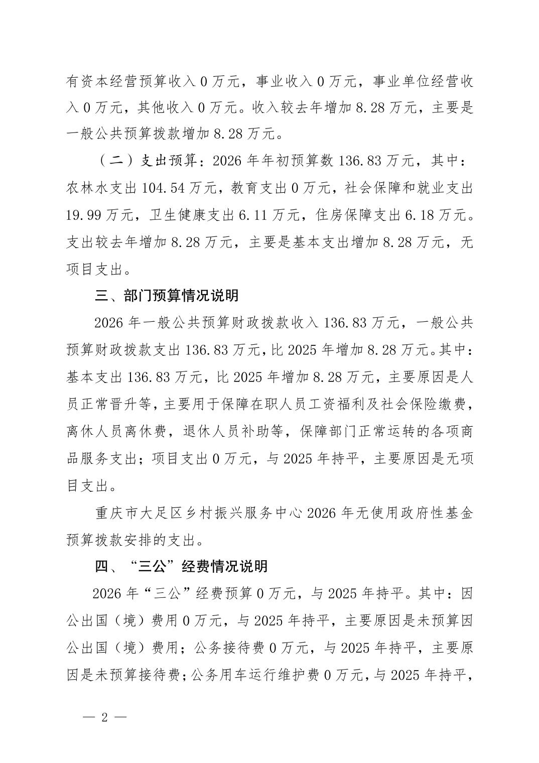 重庆市大足区乡村振兴服务中心2026年部门预算情况说明