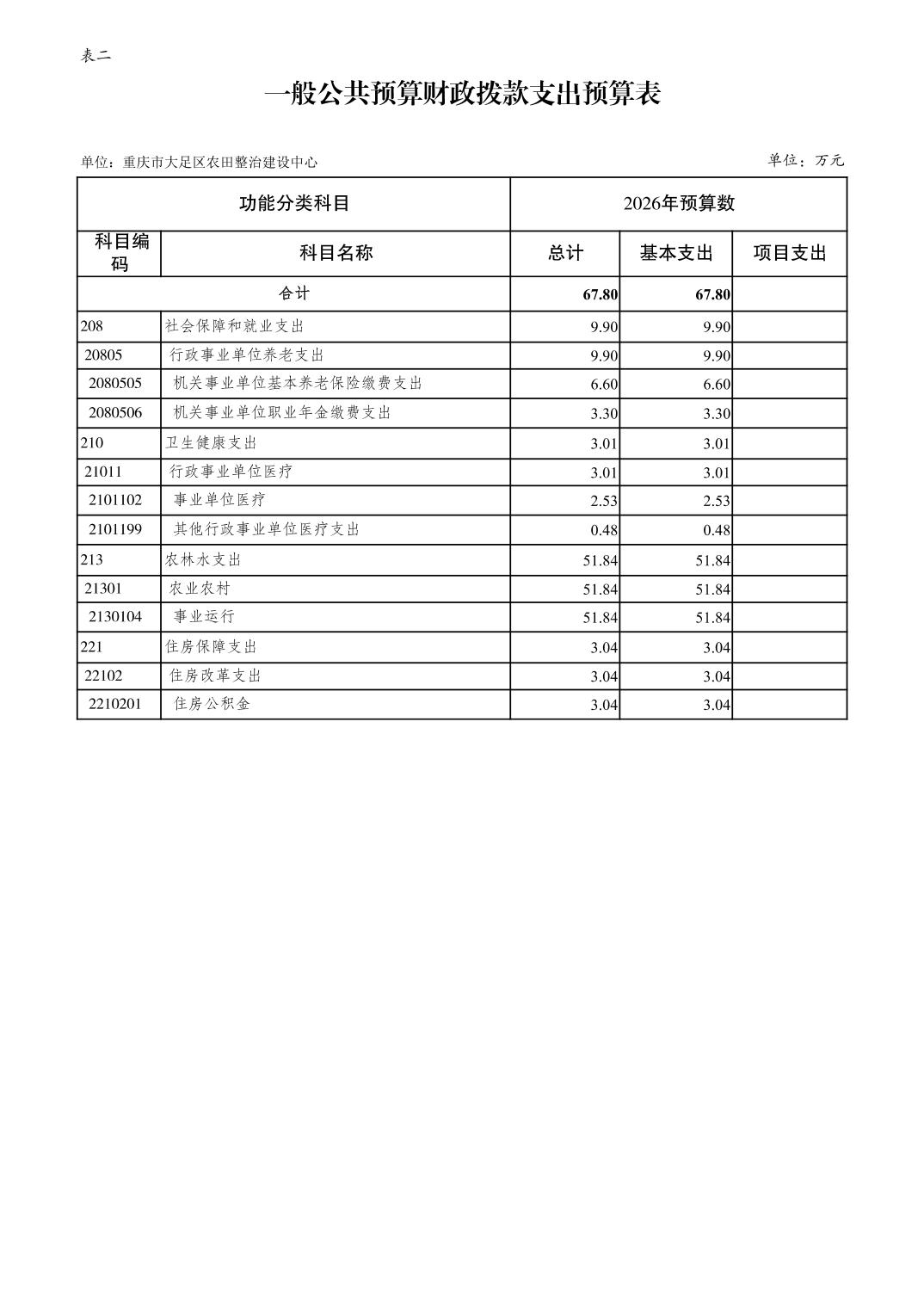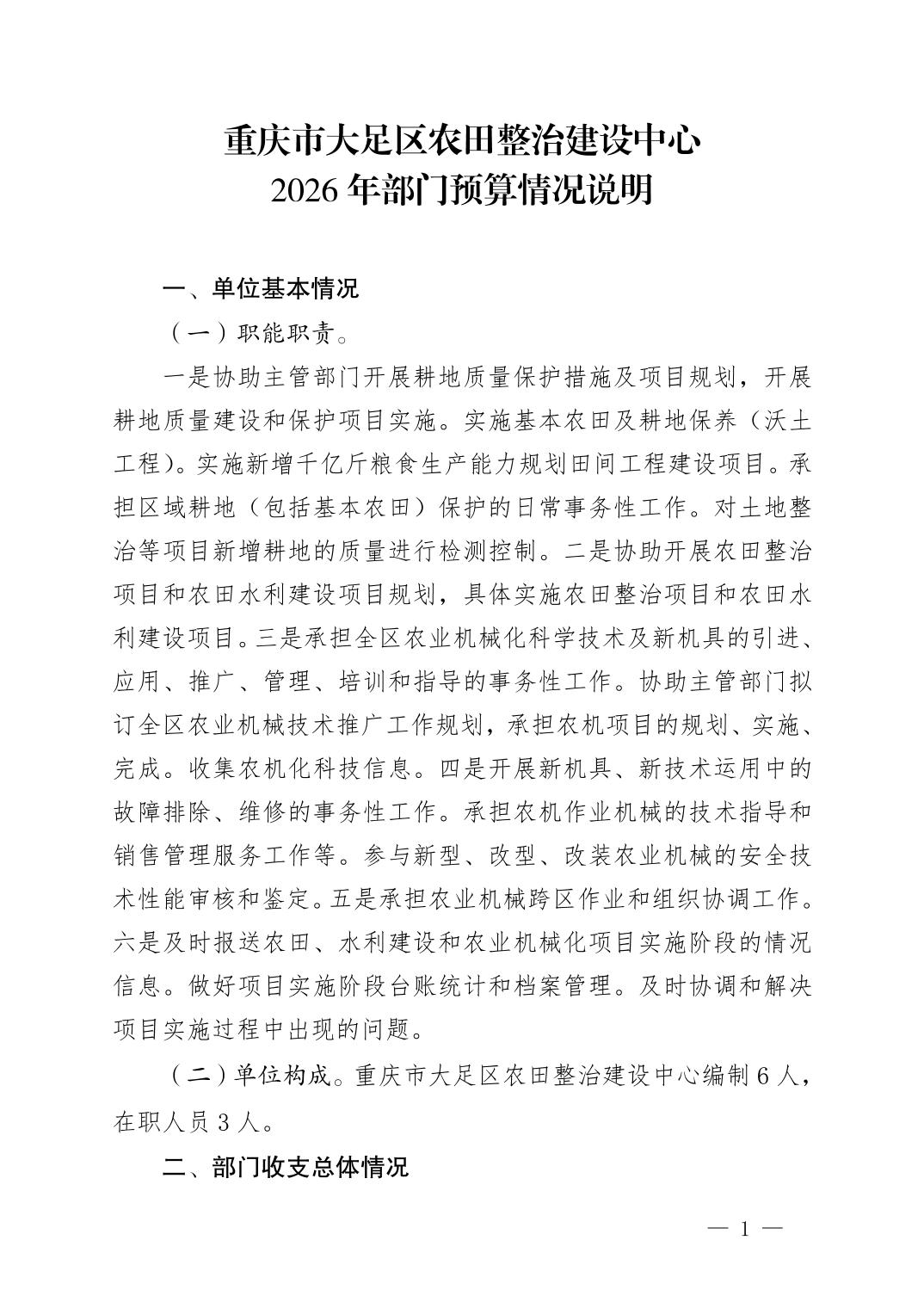 重庆市大足区农田整治建设中心2026年部门预算情况说明