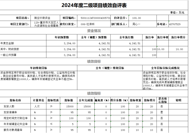 我单位对2024年就业补助资金开展了绩效评价,涉及财政拨款项目资金4242.51万元,评价得分100分,评价等次为“优”。