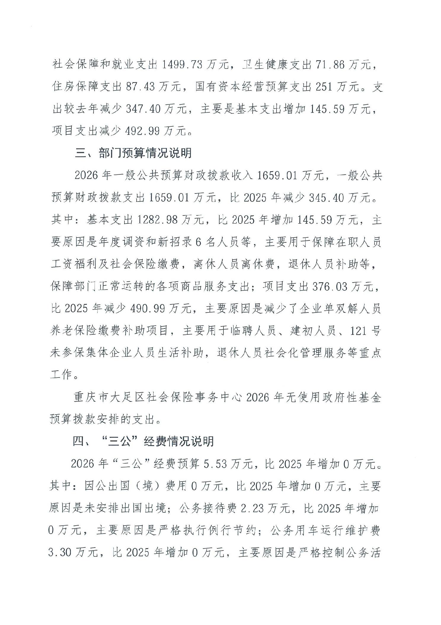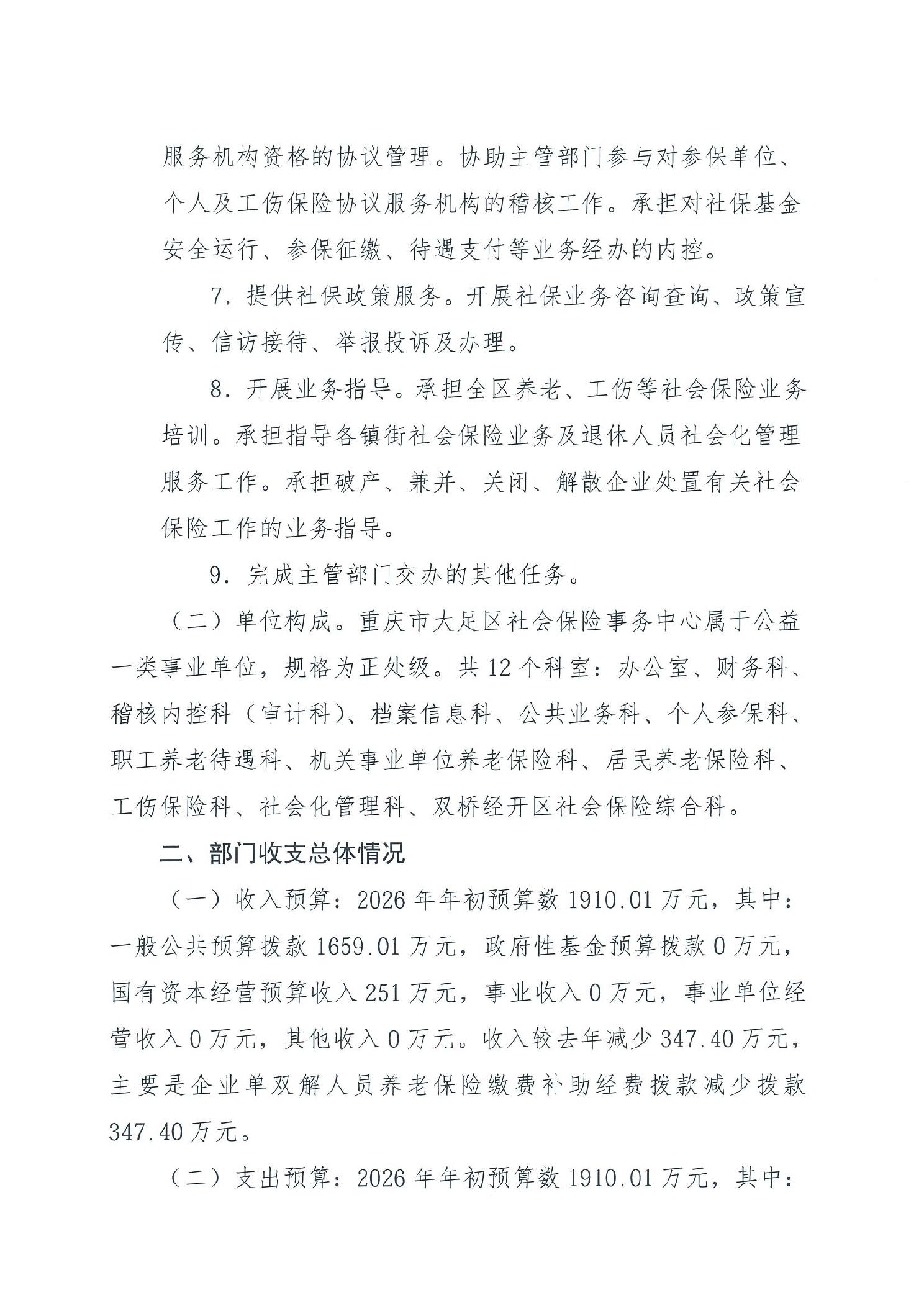 重庆市大足区社会保险事务中心2026年部门预算情况说明