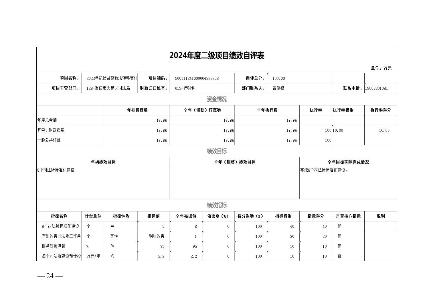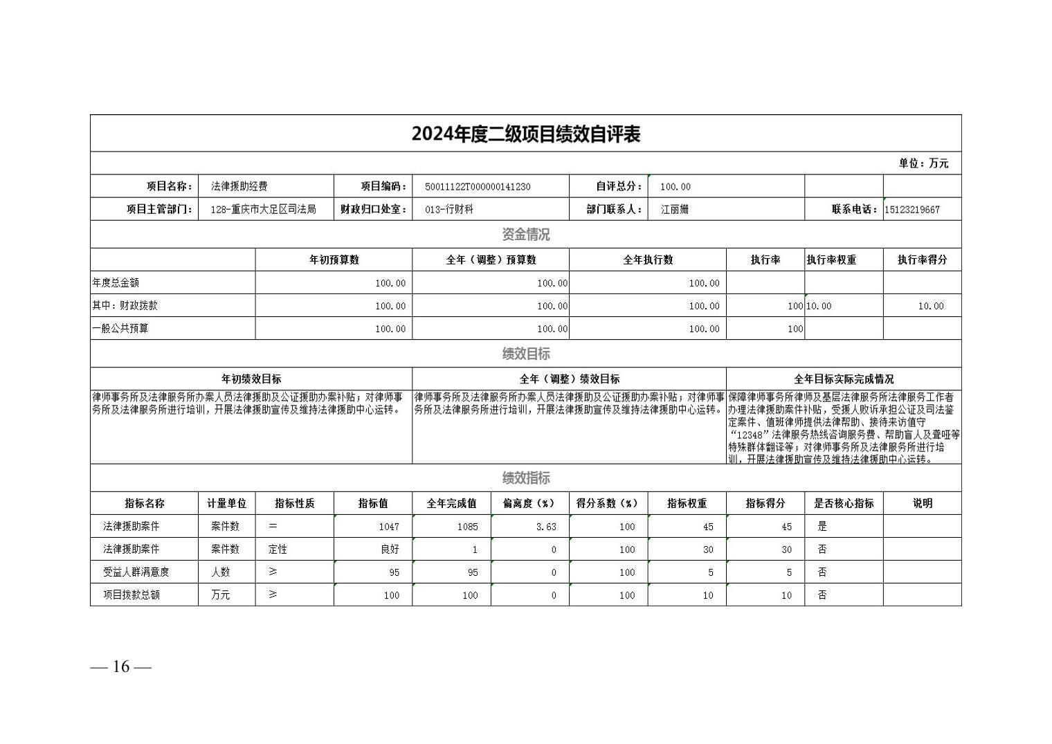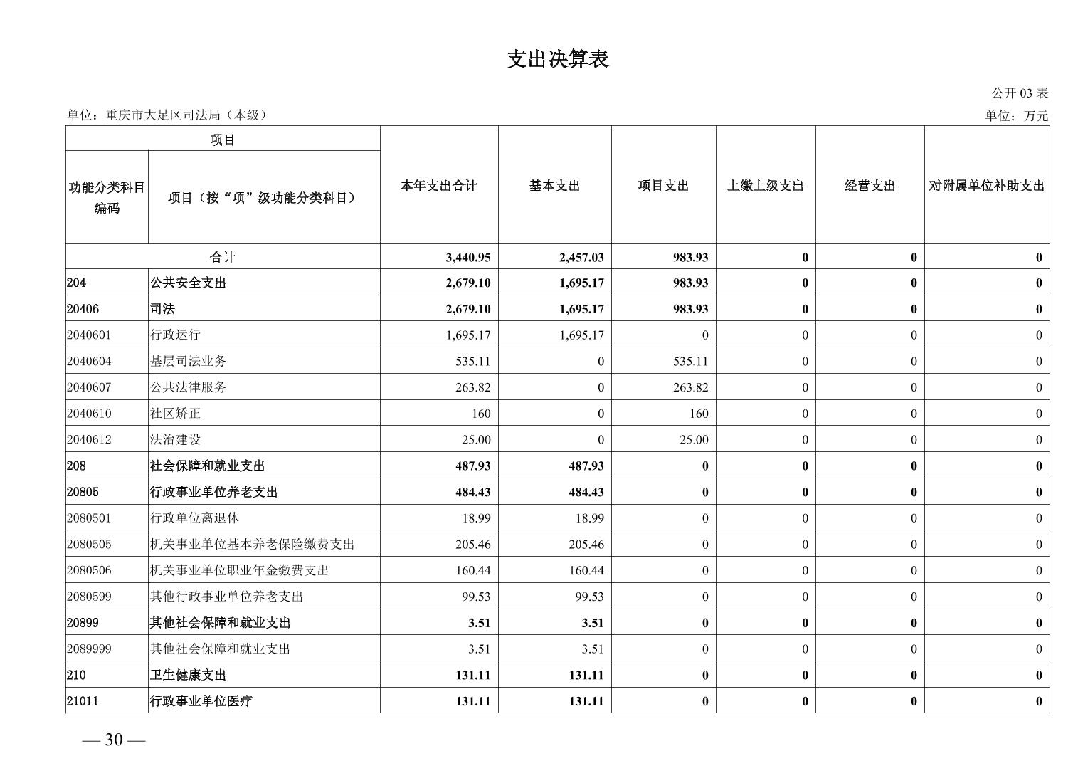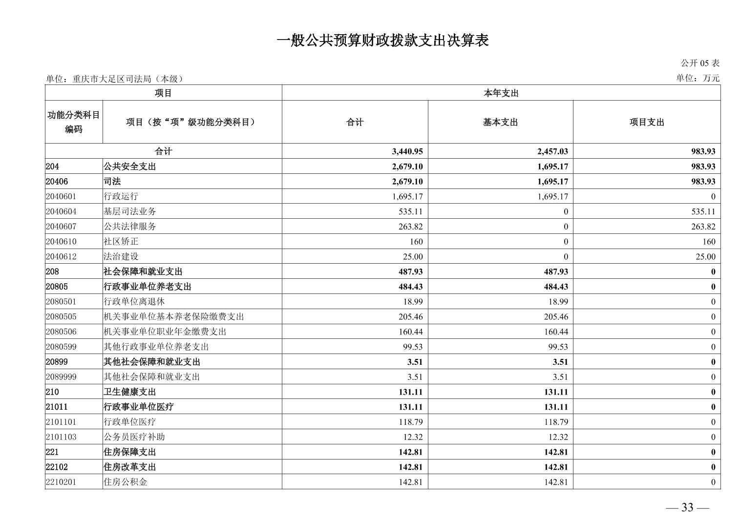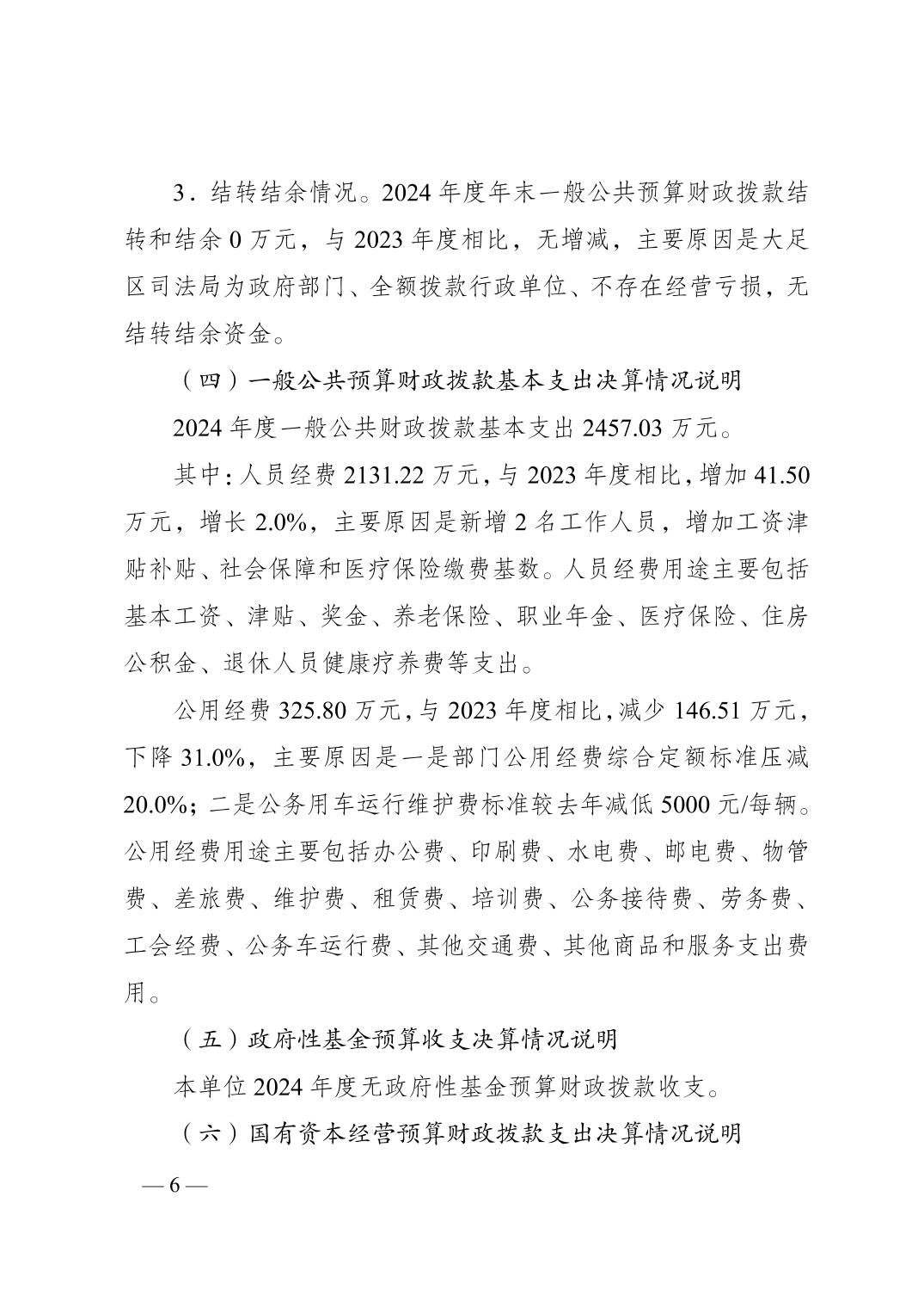 重庆市大足区司法局(本级) 2024年度决算公开说明