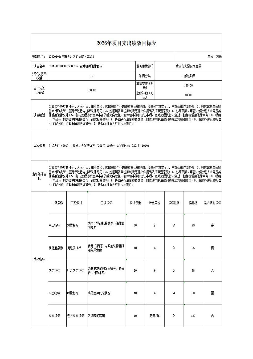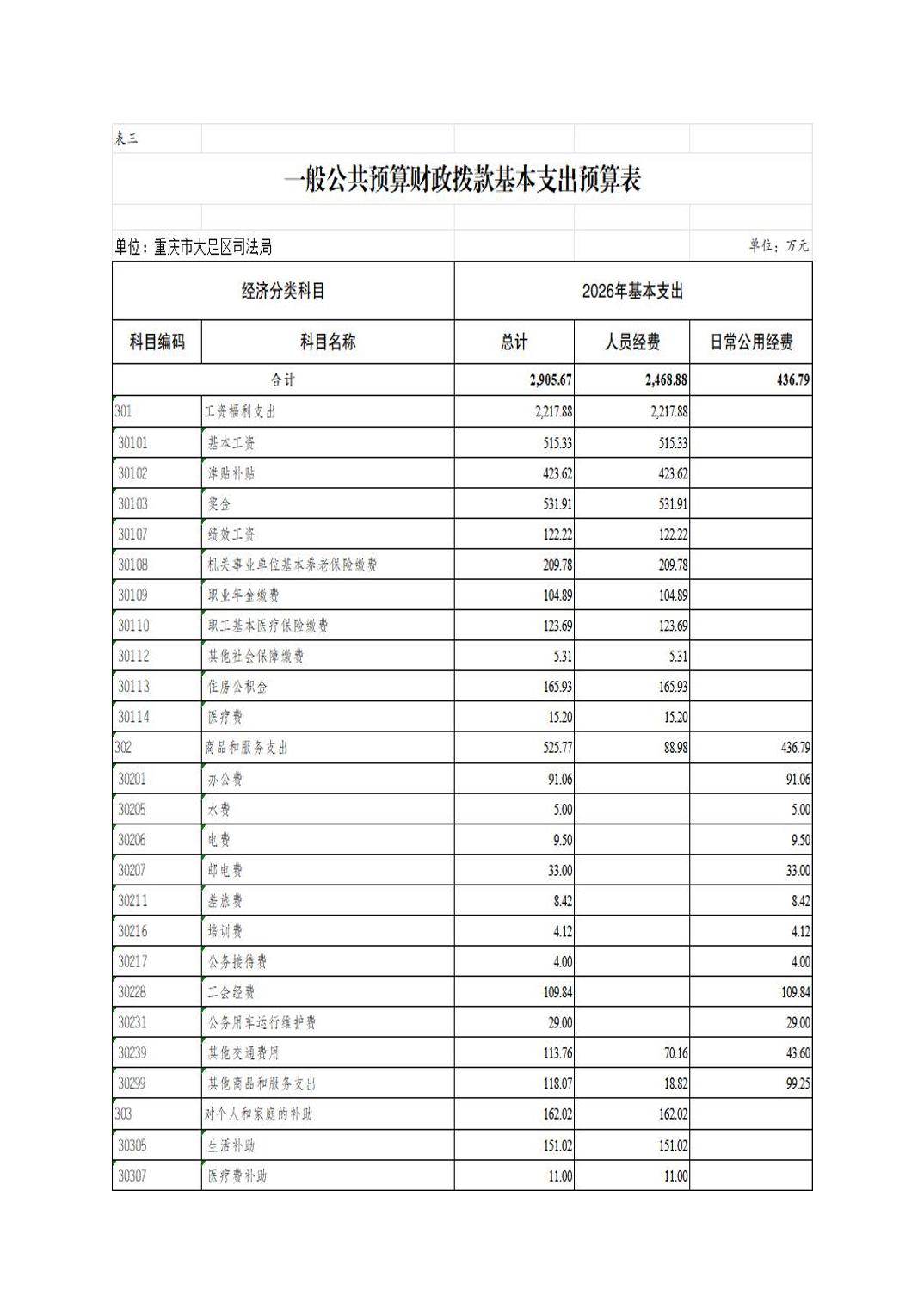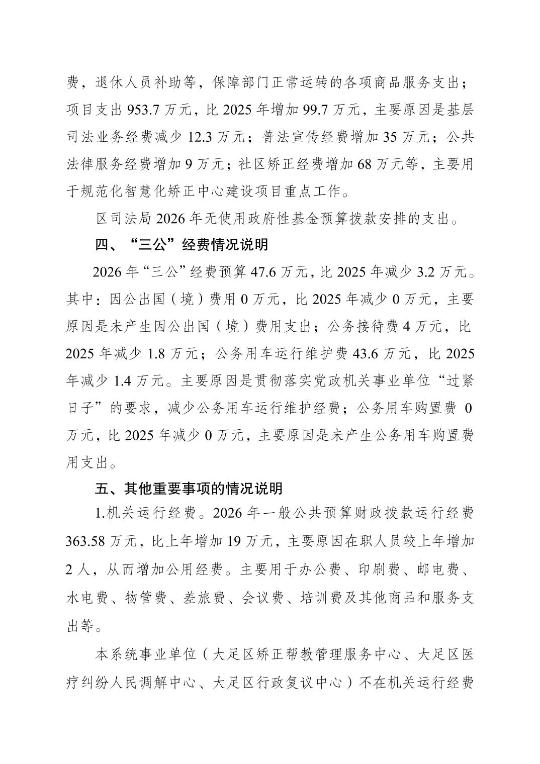 重庆市大足区司法局 2026年部门预算情况说明
