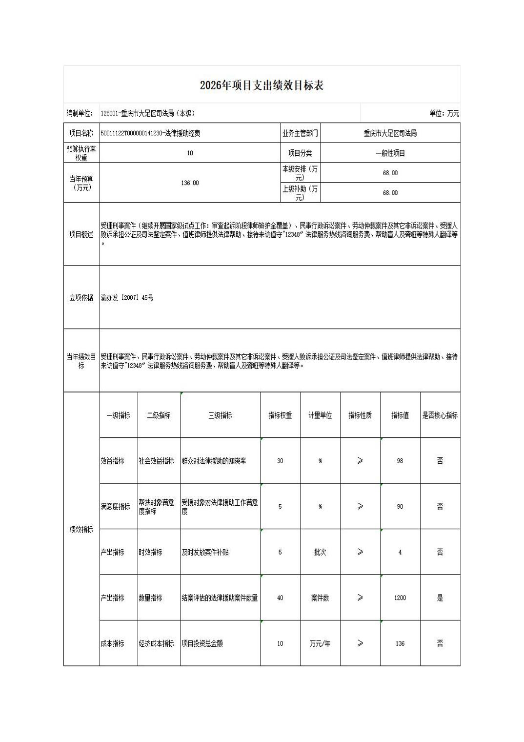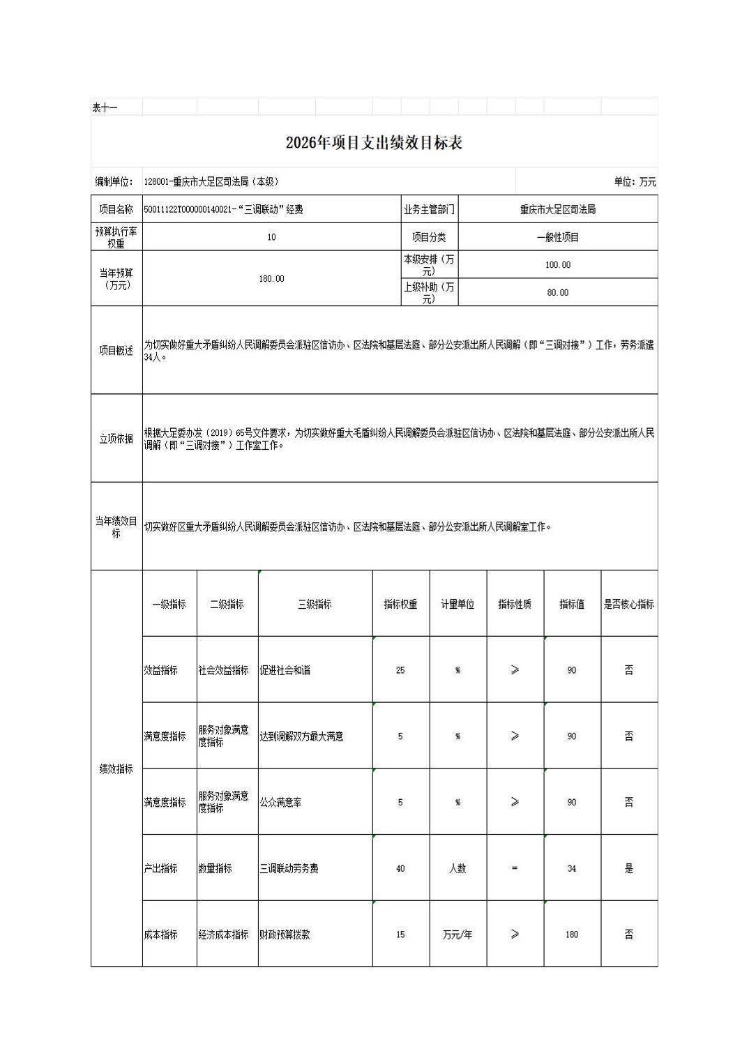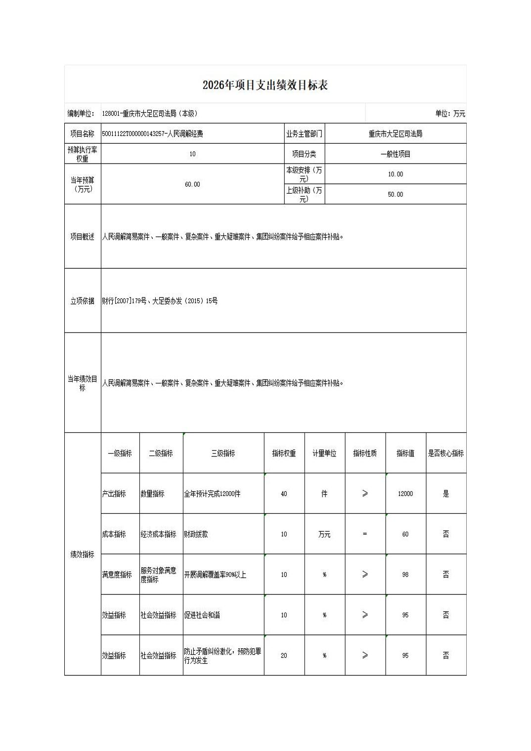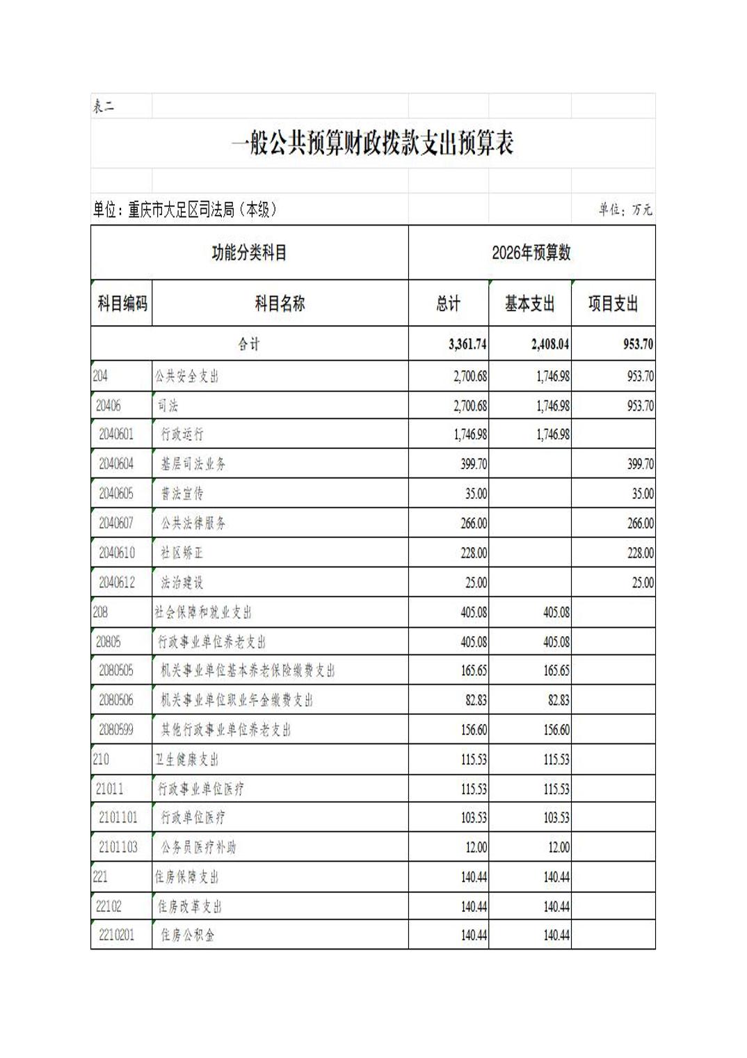重庆市大足区司法局(本级) 2026年部门预算情况说明