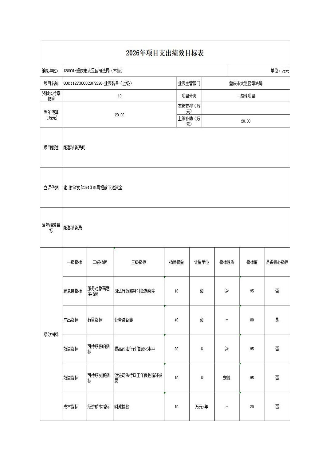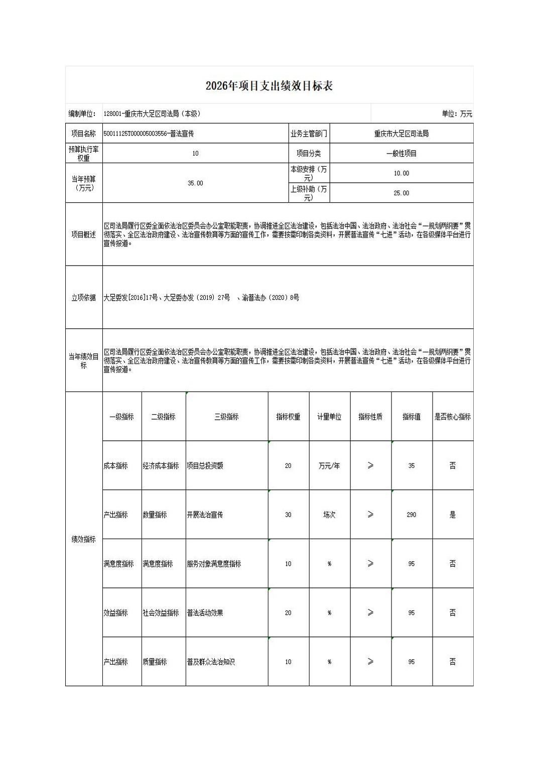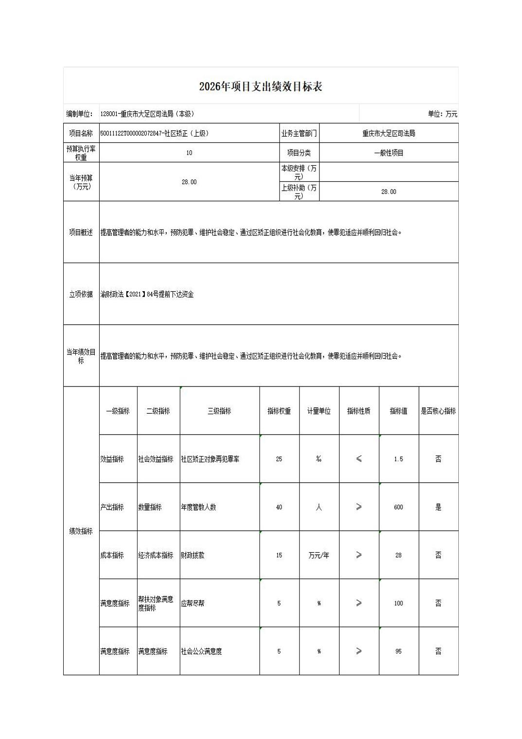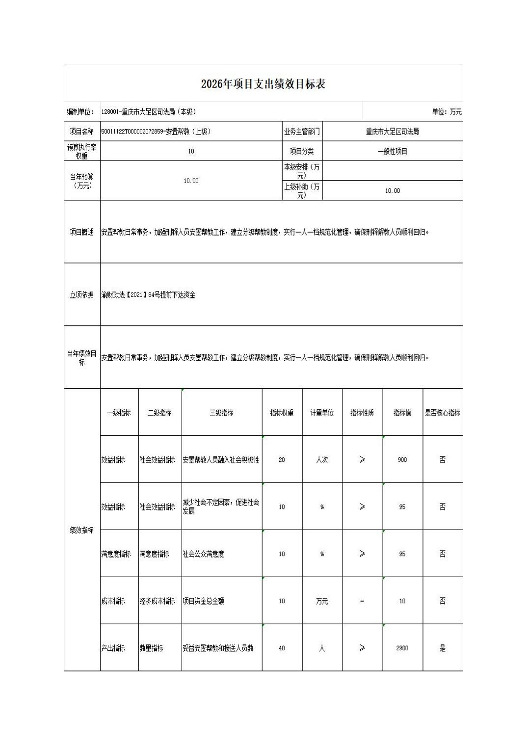 重庆市大足区司法局(本级) 2026年部门预算情况说明