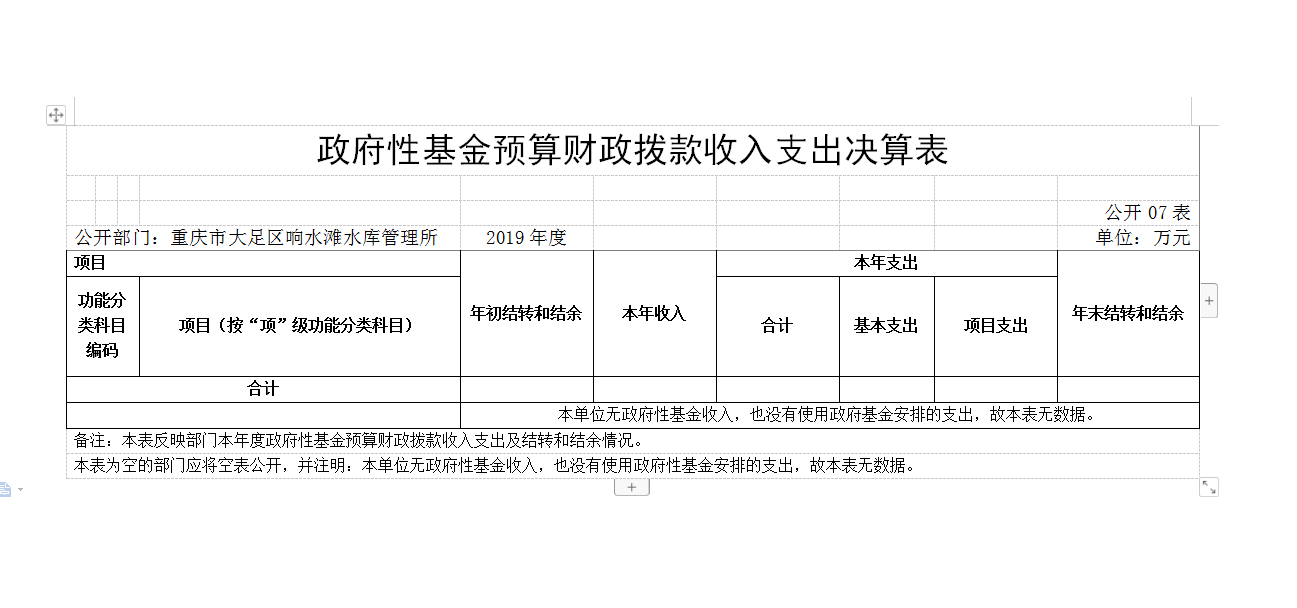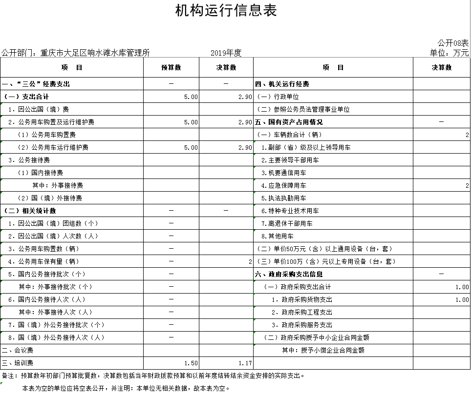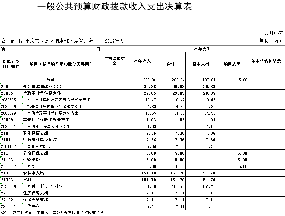 重庆市大足区响水滩水库管理所 2019年度部门决算情况说明