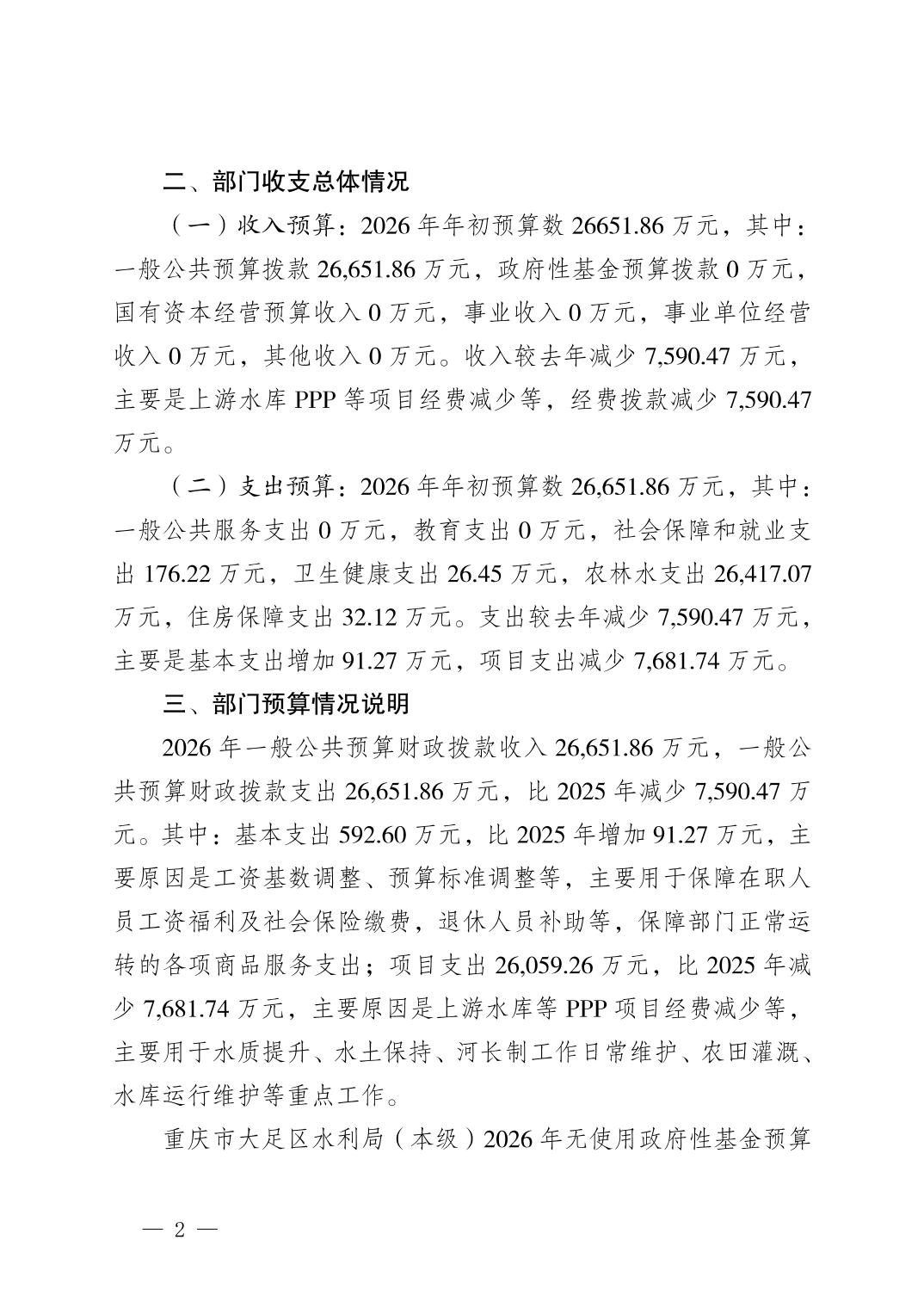 | [ 主题分类 ] | 水利、水务 | [ 体裁分类 ] | 财政预算、决算 |