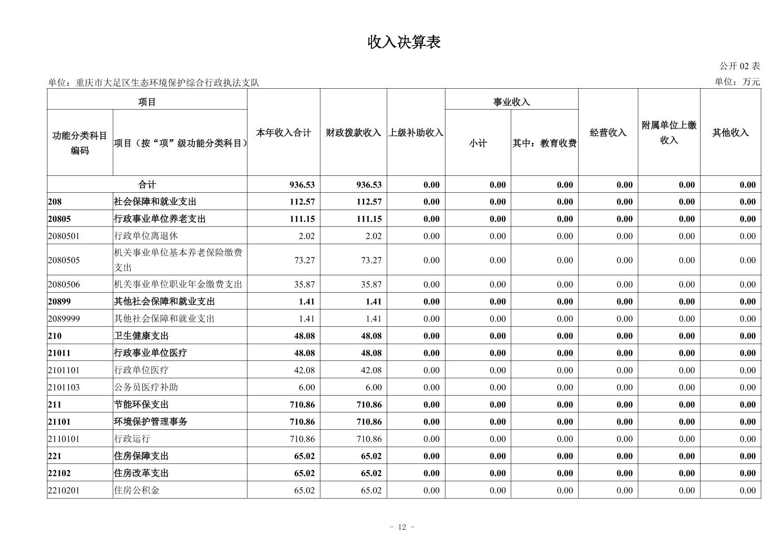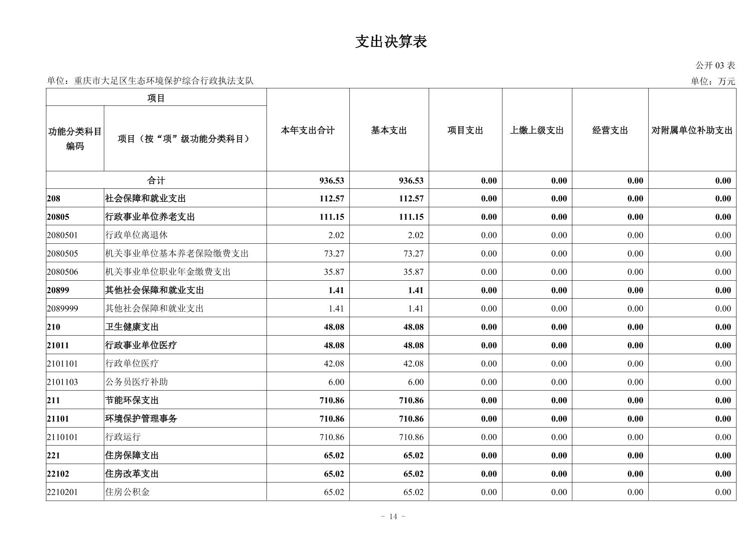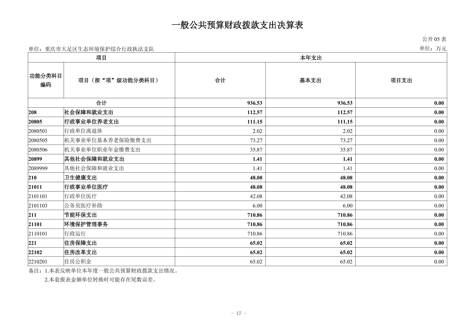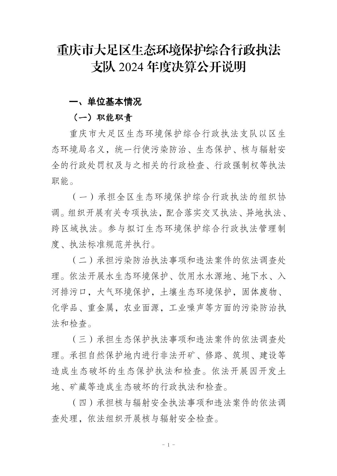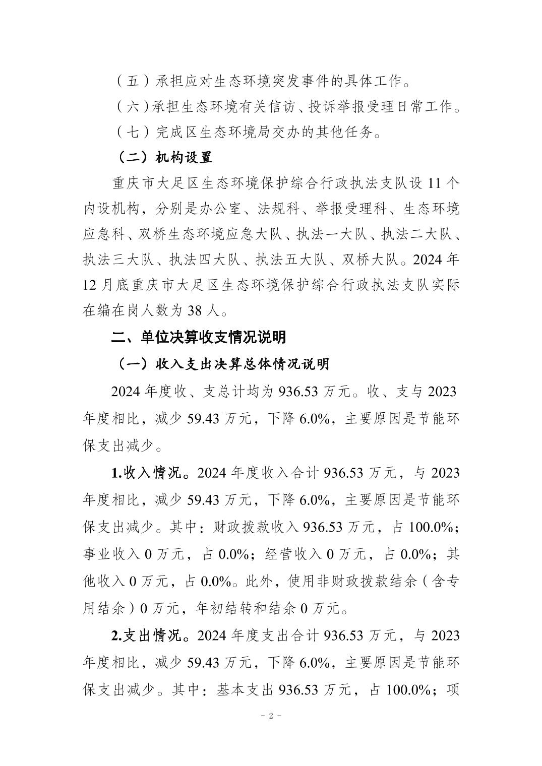 重庆市大足区生态环境保护综合行政执法支队2024年度决算公开说明