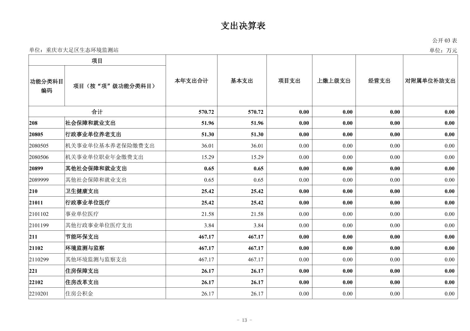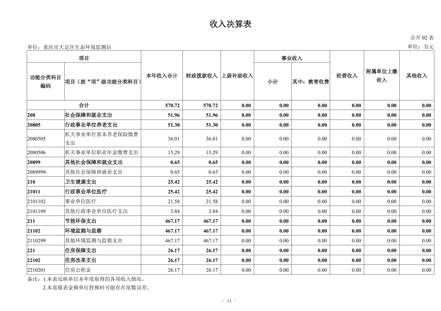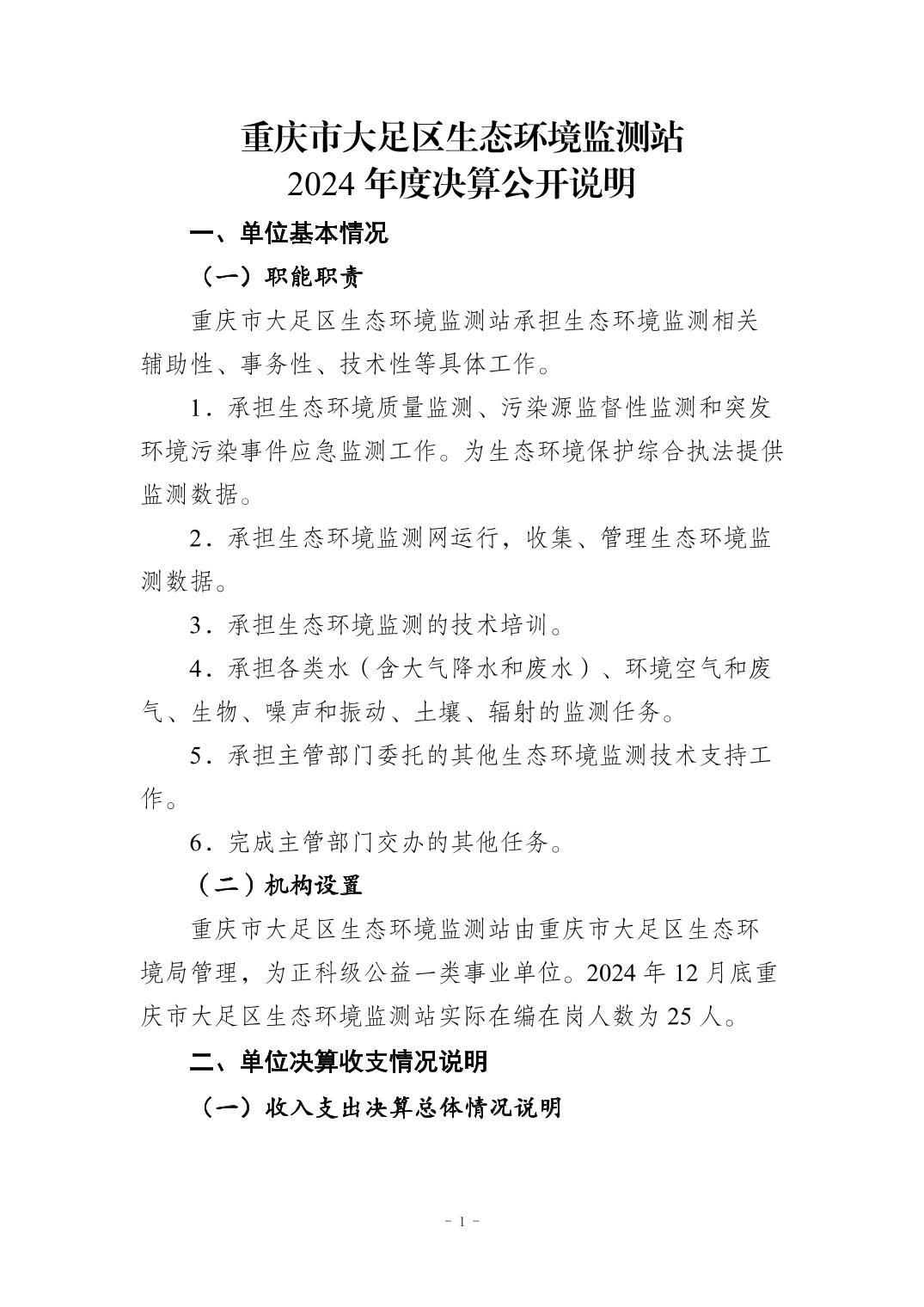 重庆市大足区生态环境监测站2024年度决算公开说明