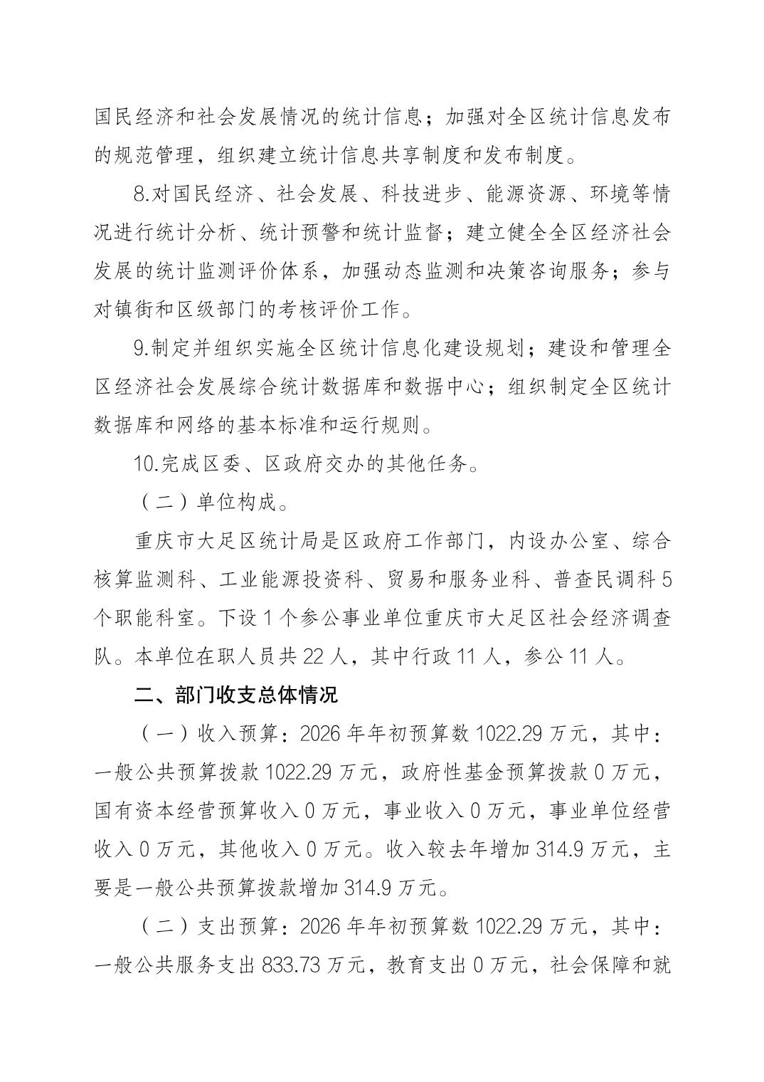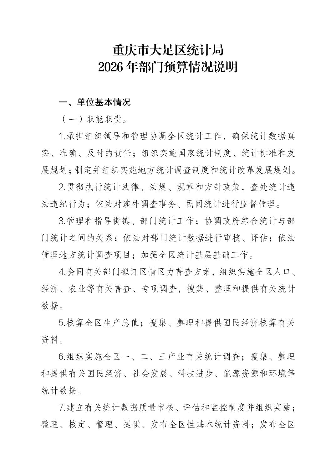重庆市大足区统计局2026年部门预算情况说明