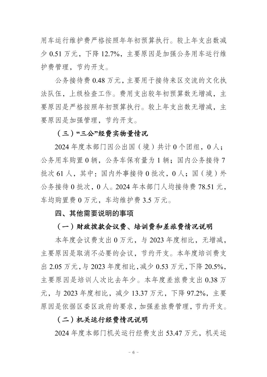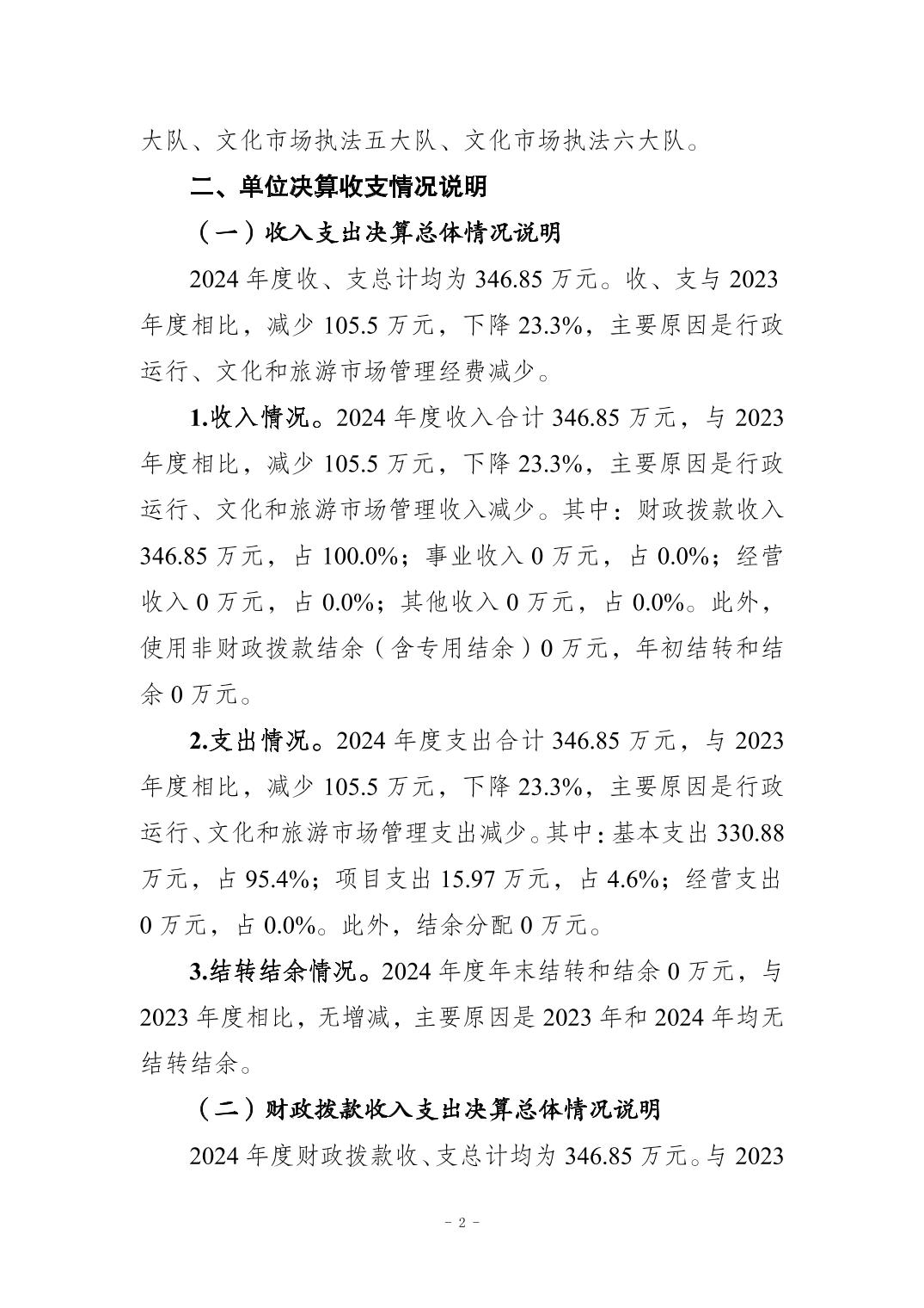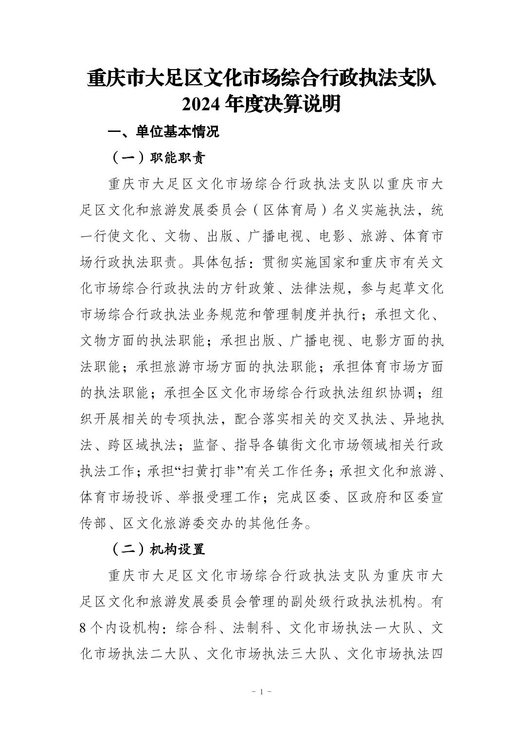 重庆市大足区文化市场综合行政执法支队 2024年度决算公开说明