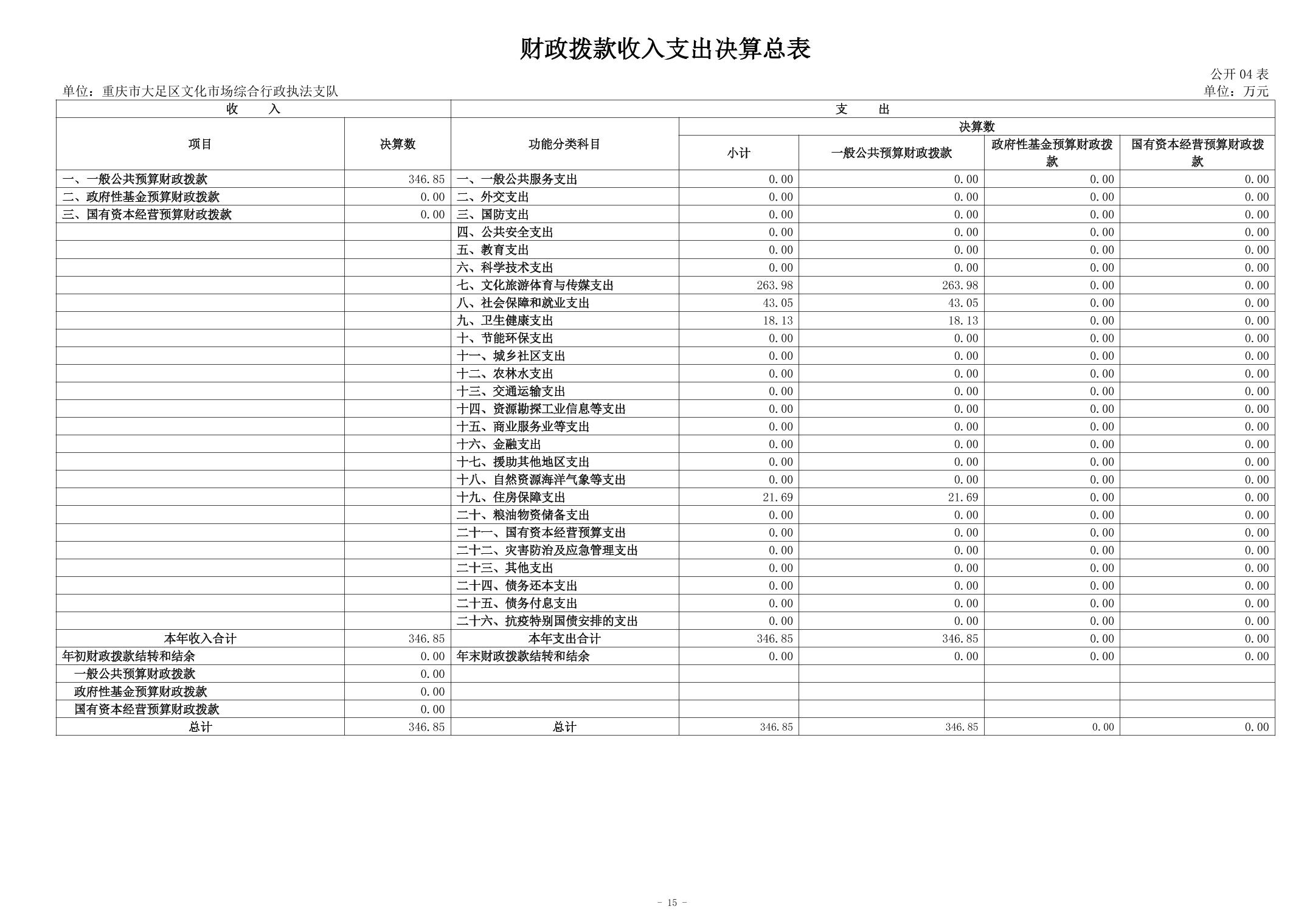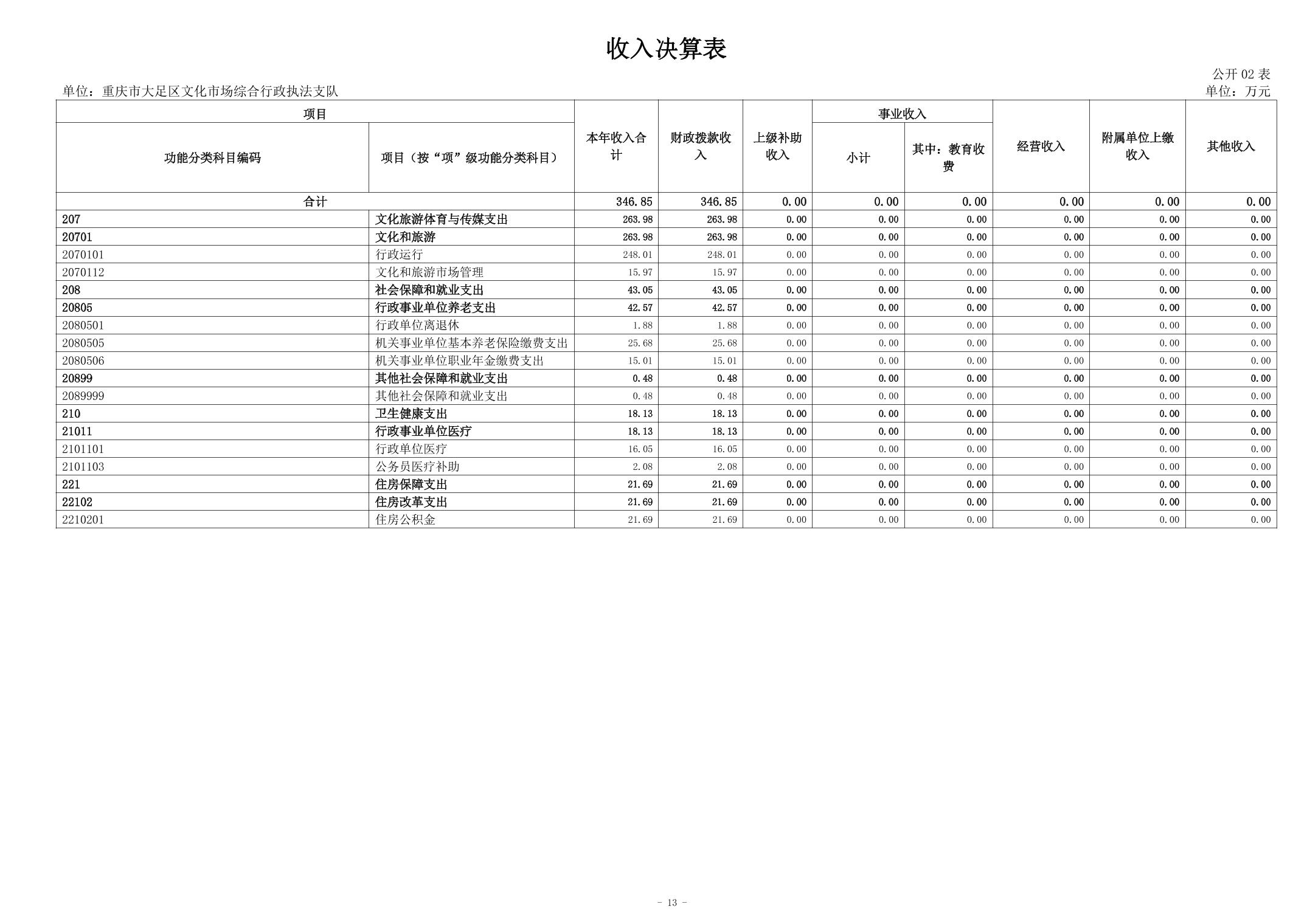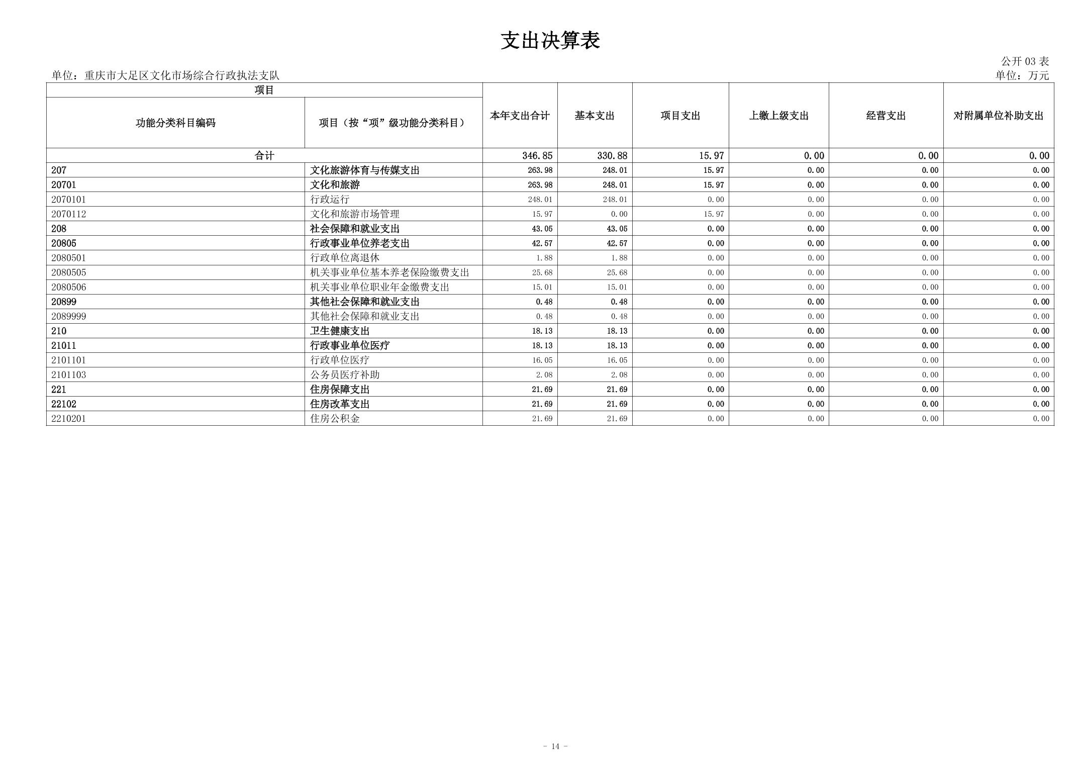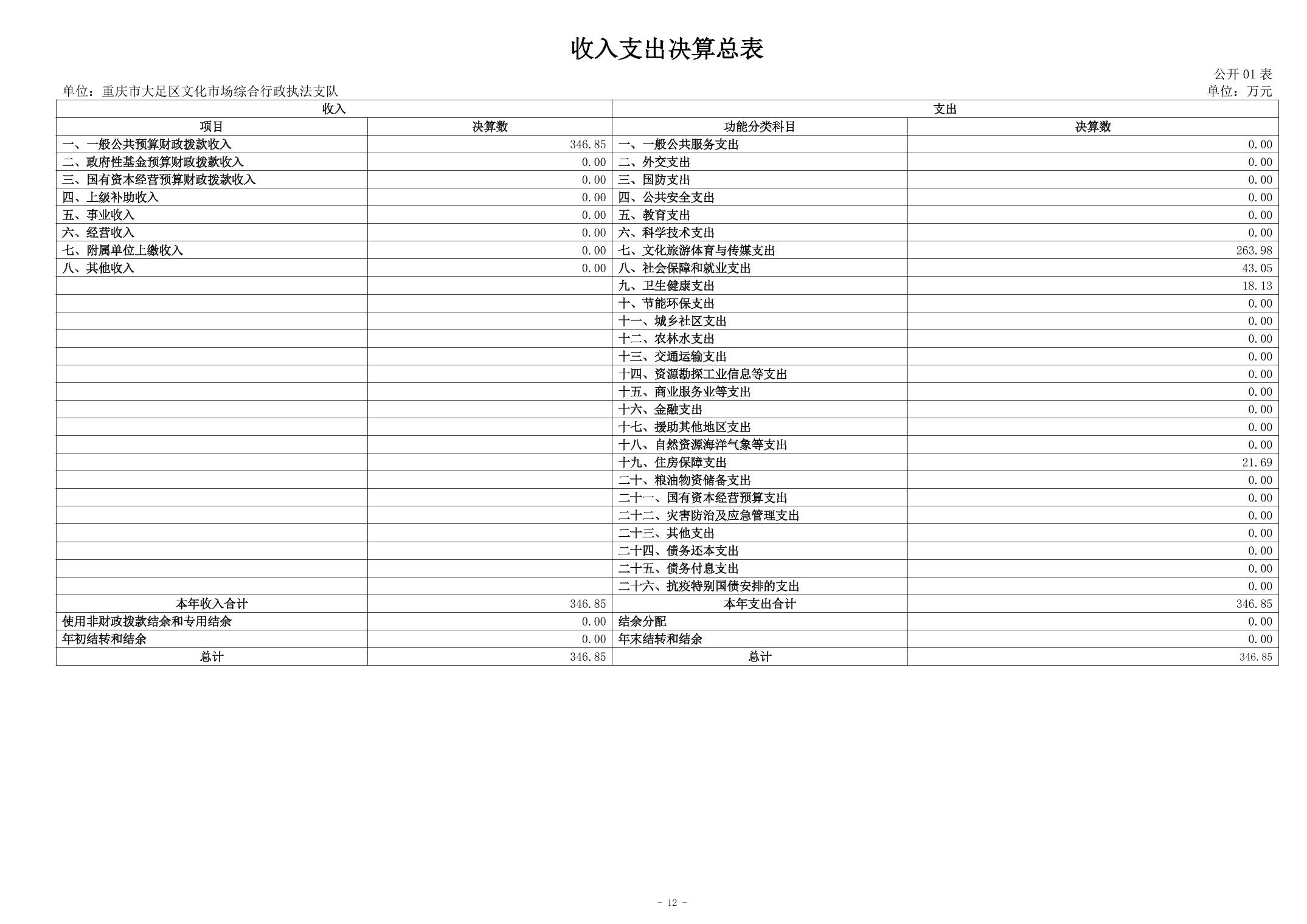 重庆市大足区文化市场综合行政执法支队 2024年度决算公开说明