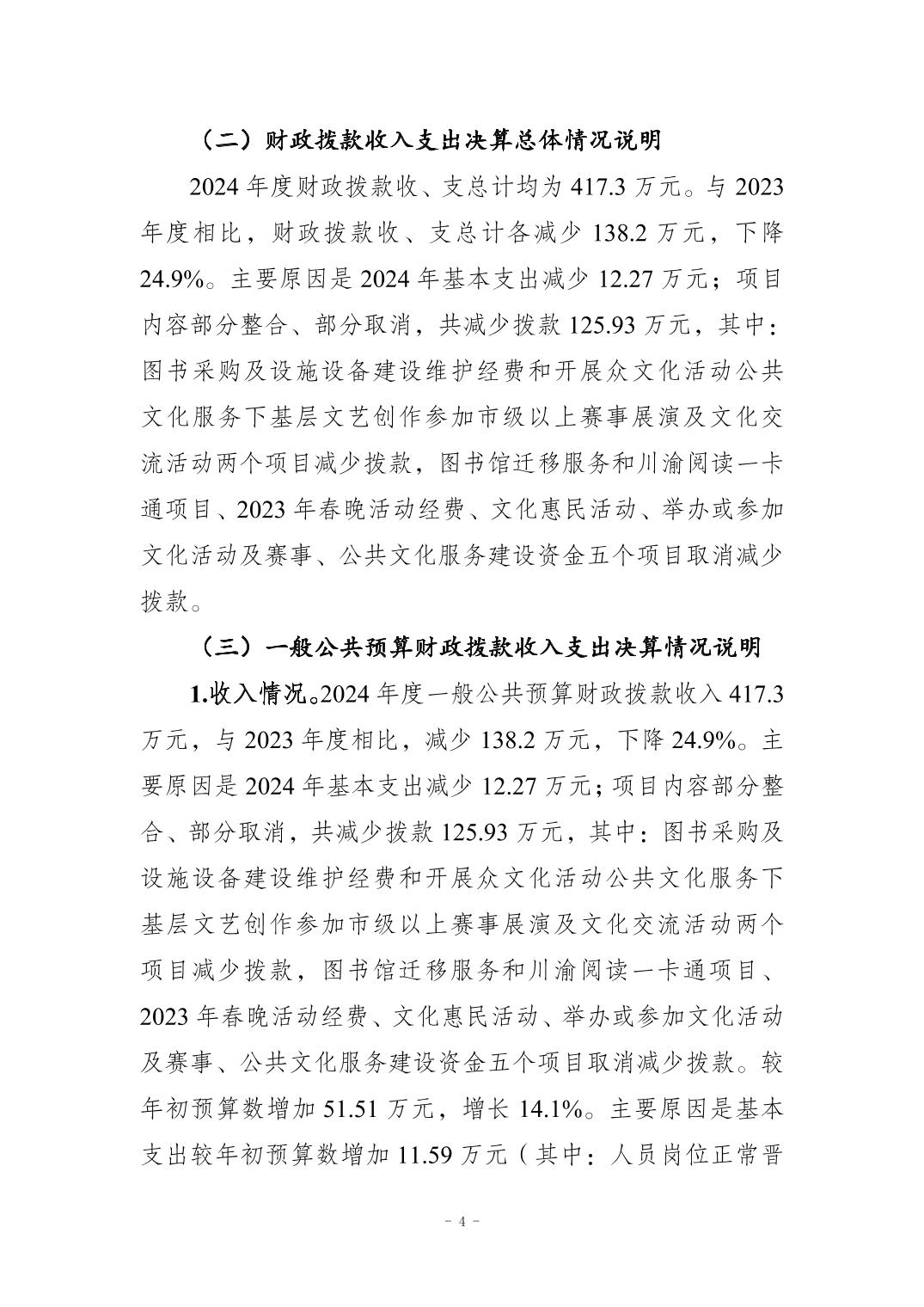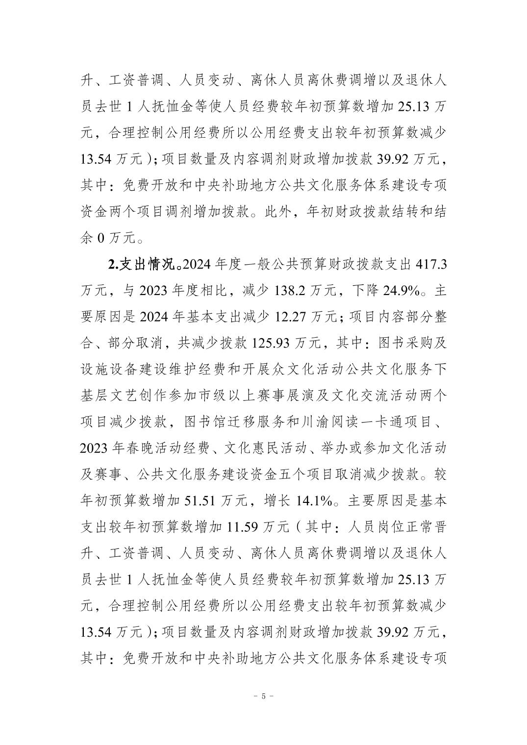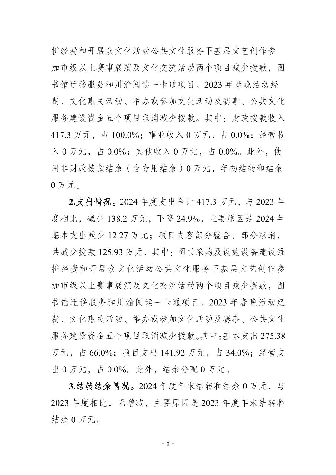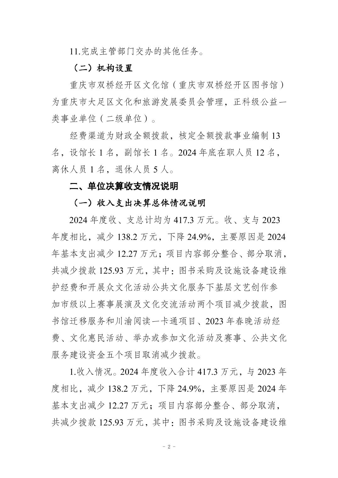 重庆市双桥经开区文化馆 2024年度部门决算情况说明