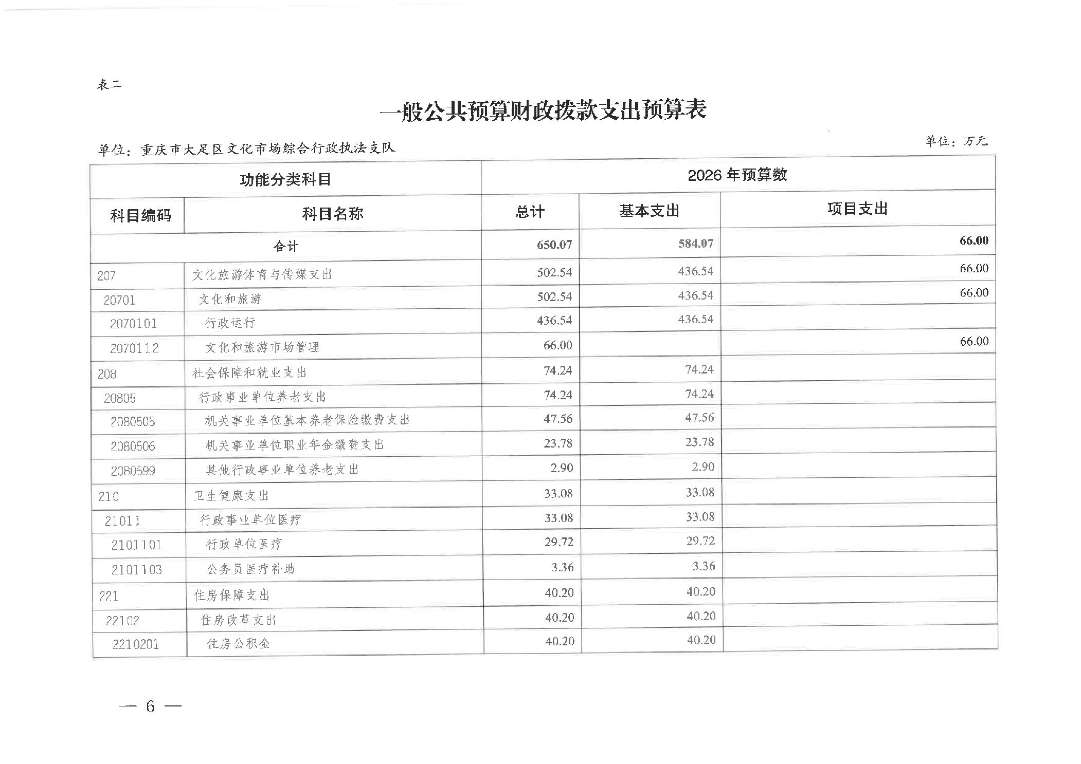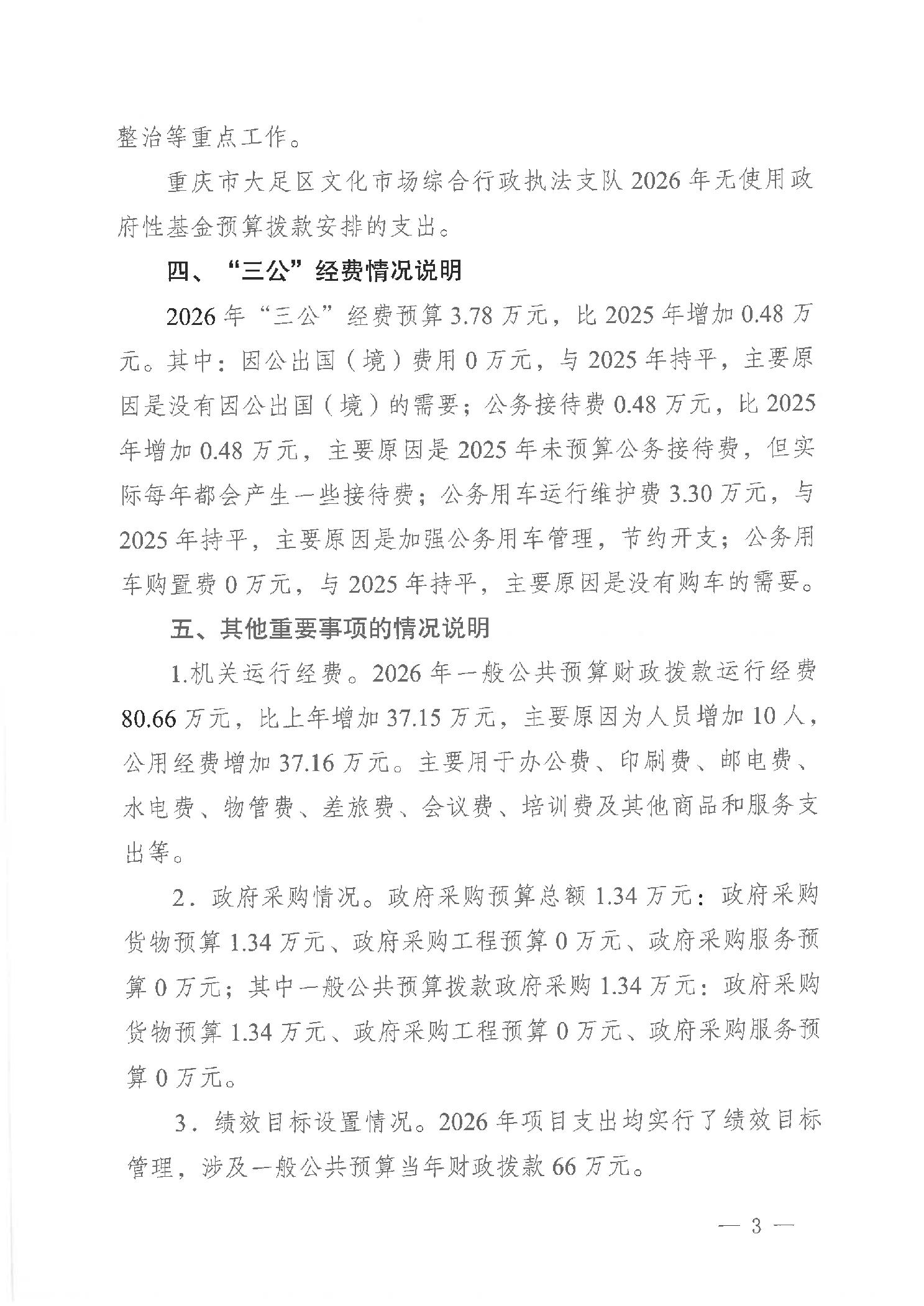 重庆市大足区文化市场综合行政执法支队 2026年部门预算情况说明