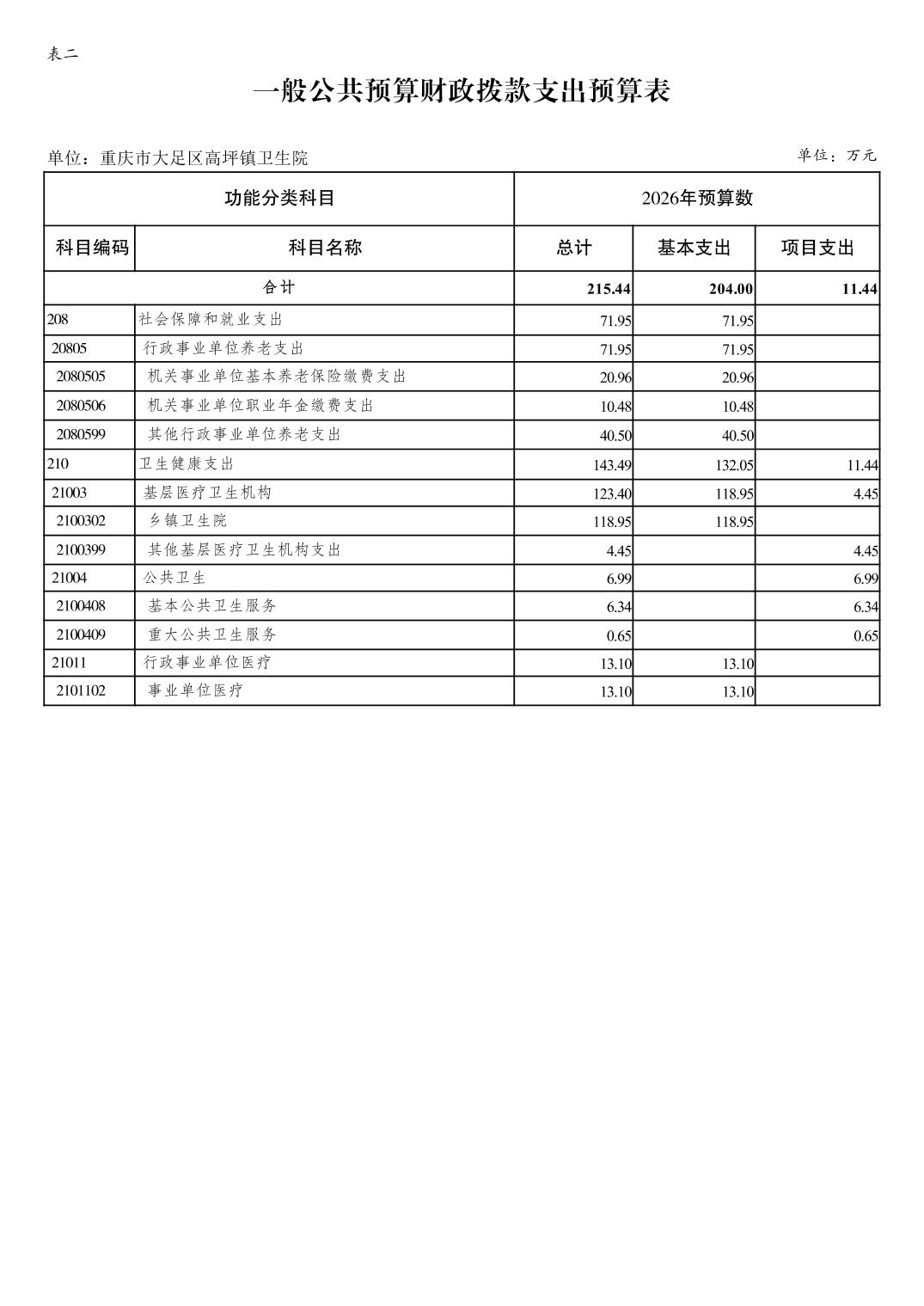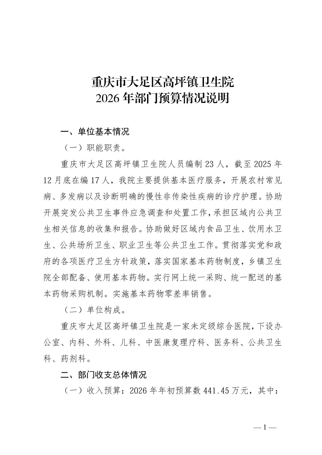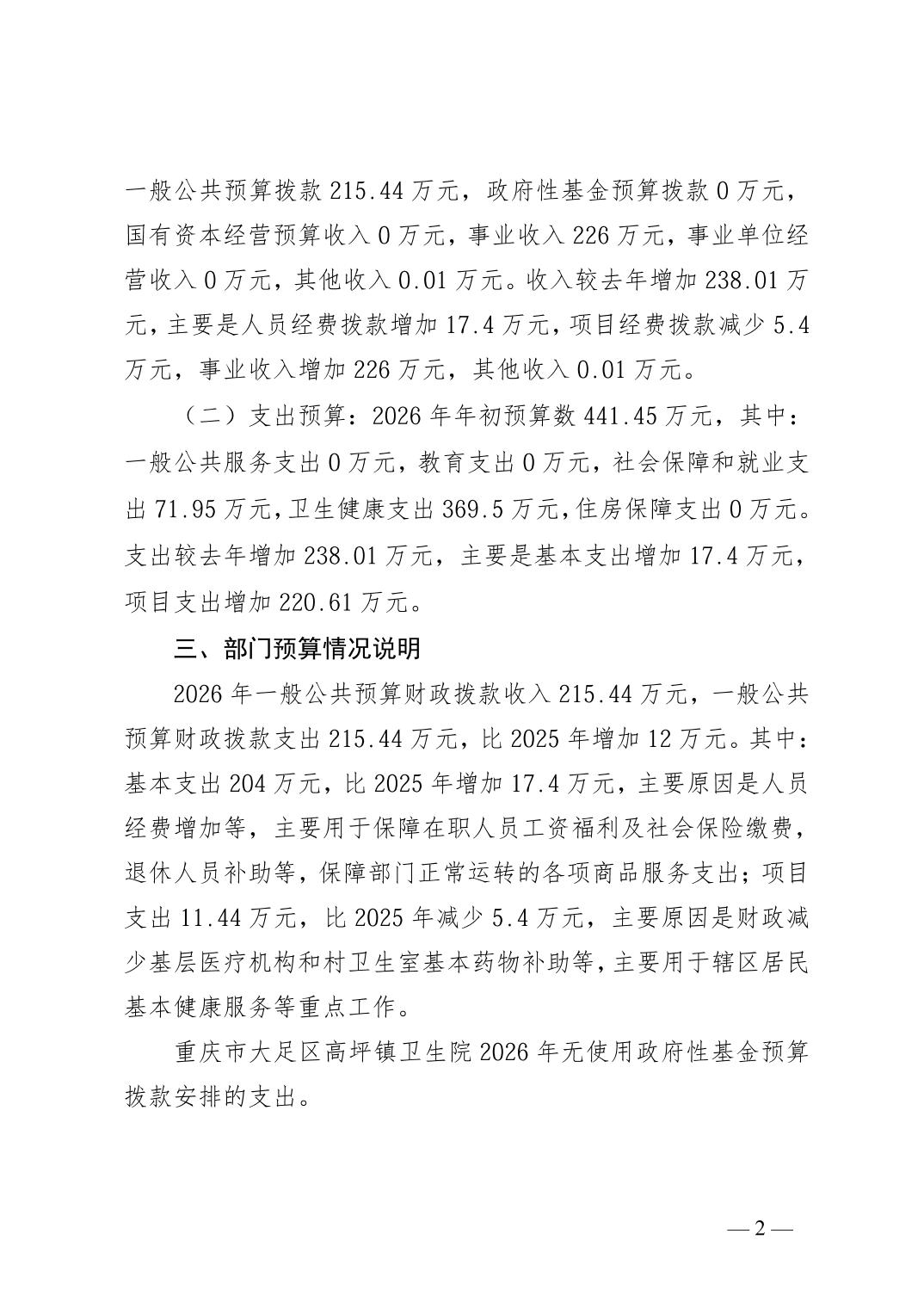 142028重庆市大足区高坪镇卫生院2026年预算公开(1)