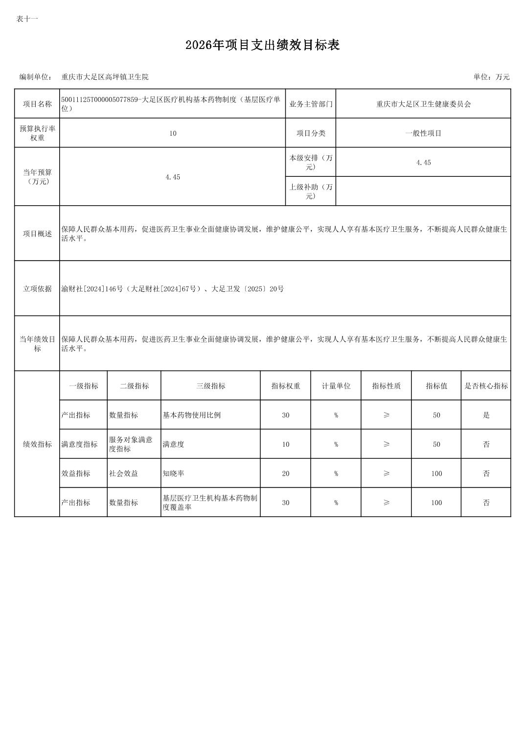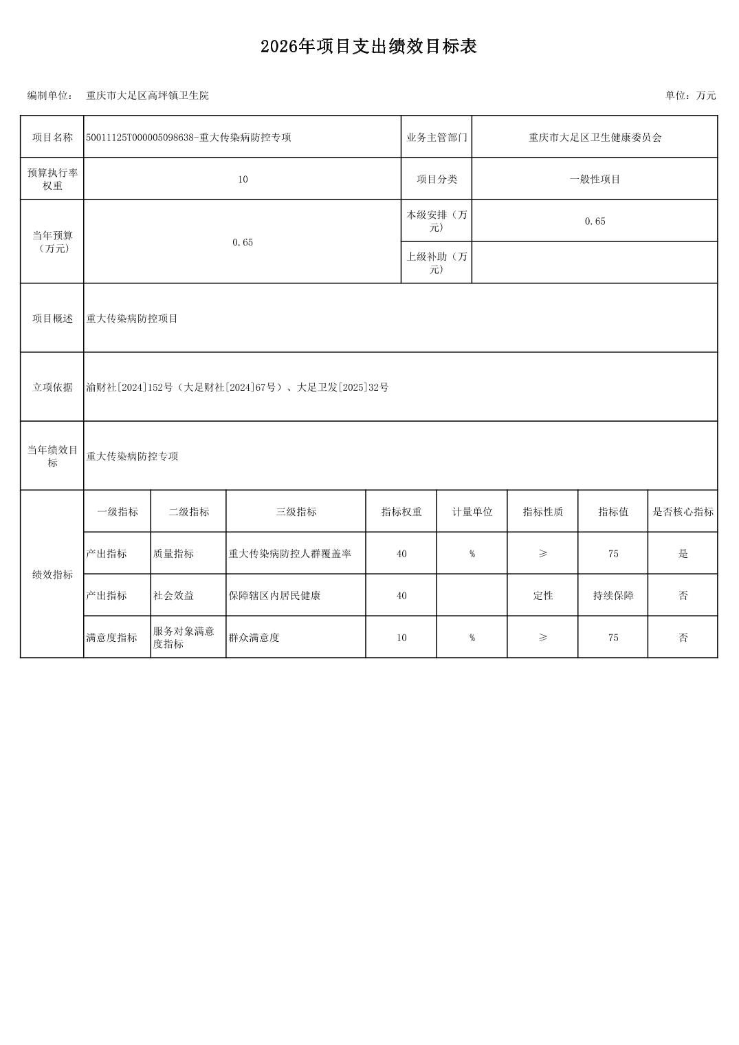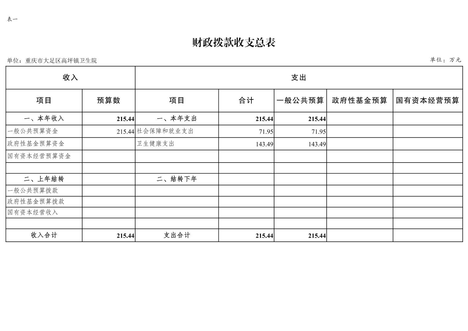 142028重庆市大足区高坪镇卫生院2026年预算公开(1)