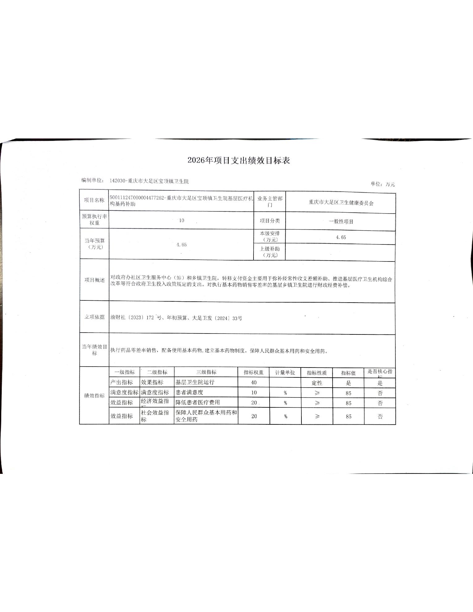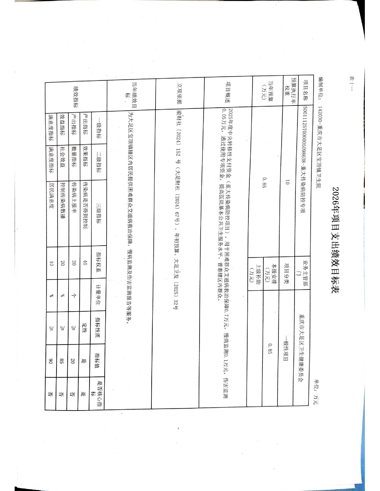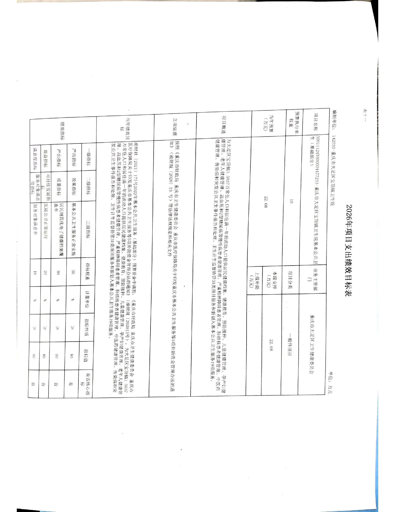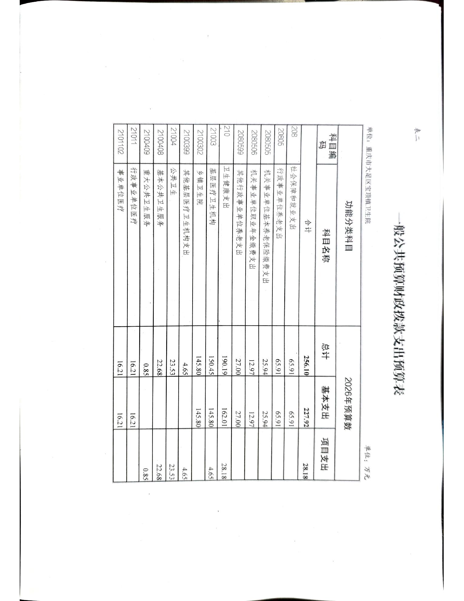 142030重庆市大足区宝顶镇卫生院2026年预算公开(1)