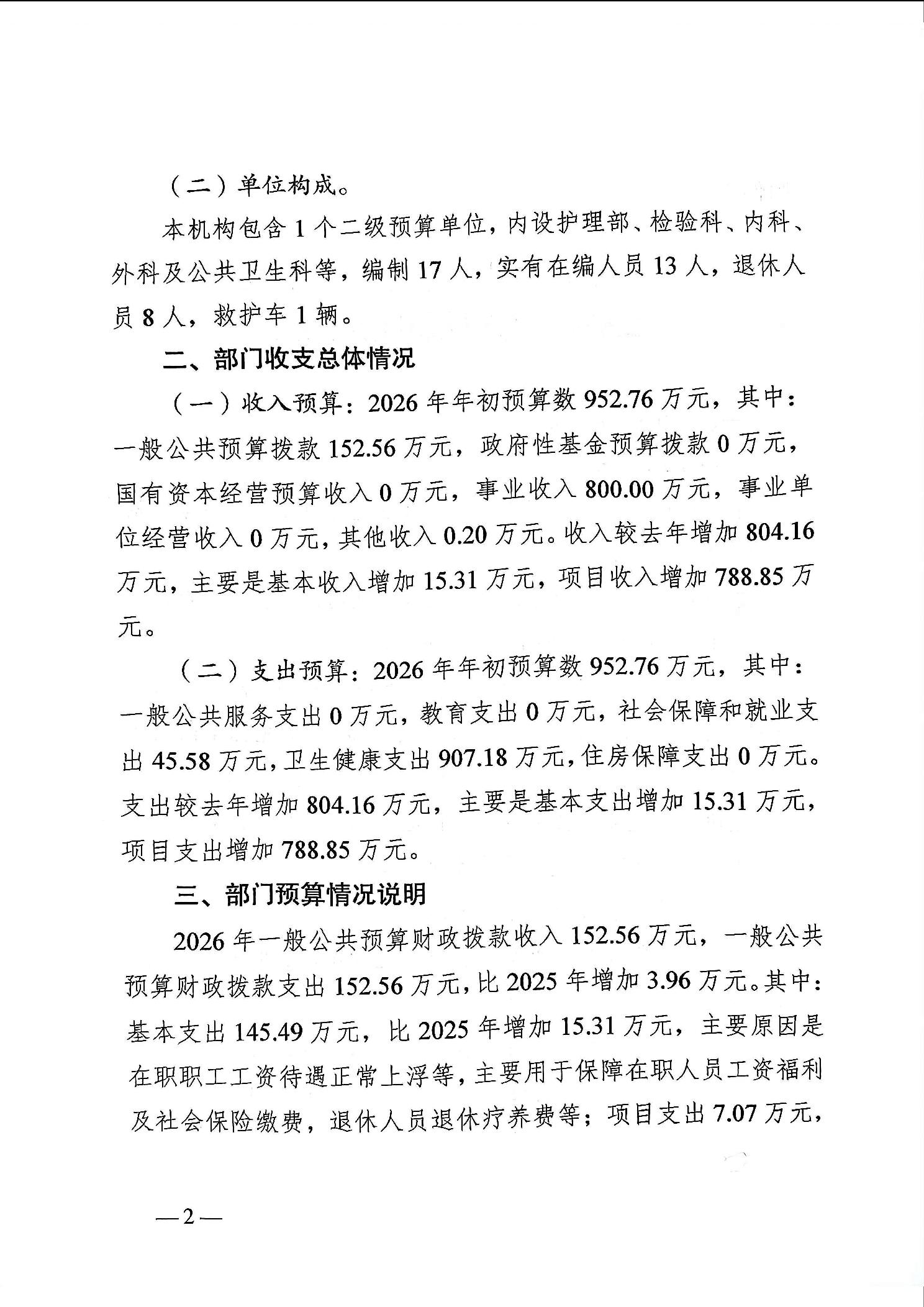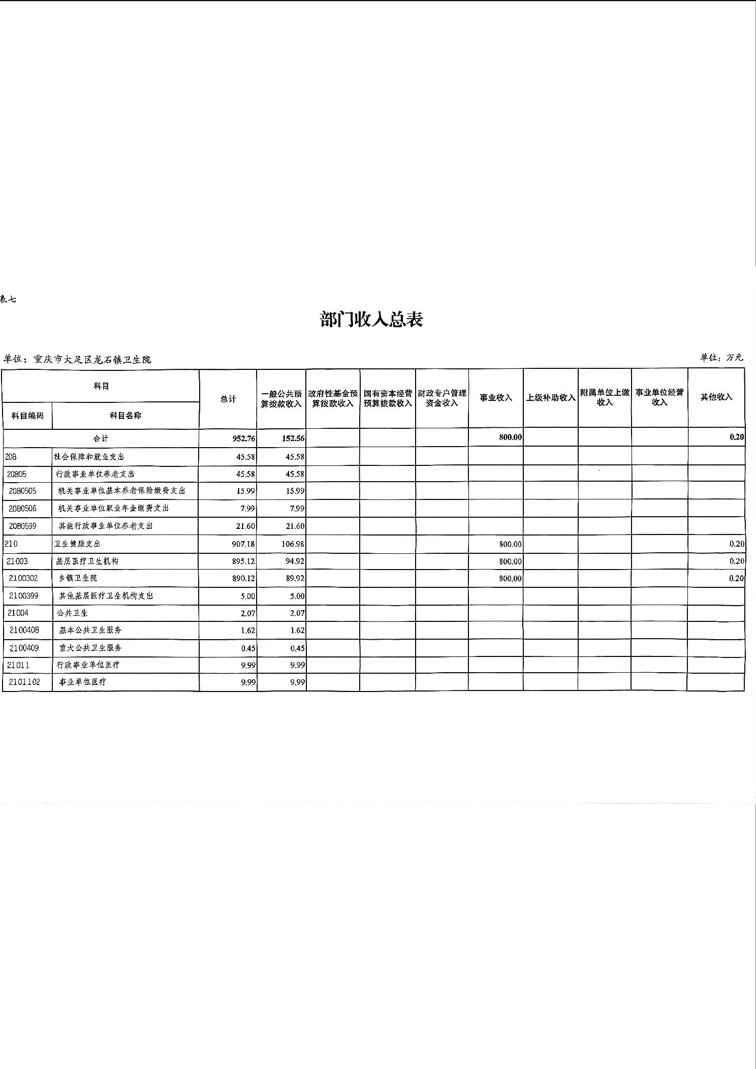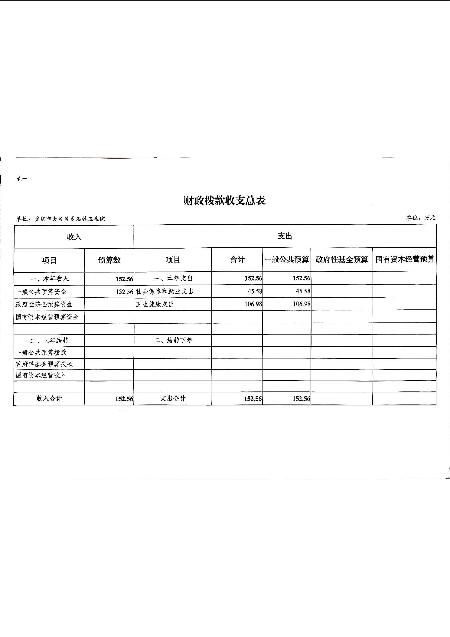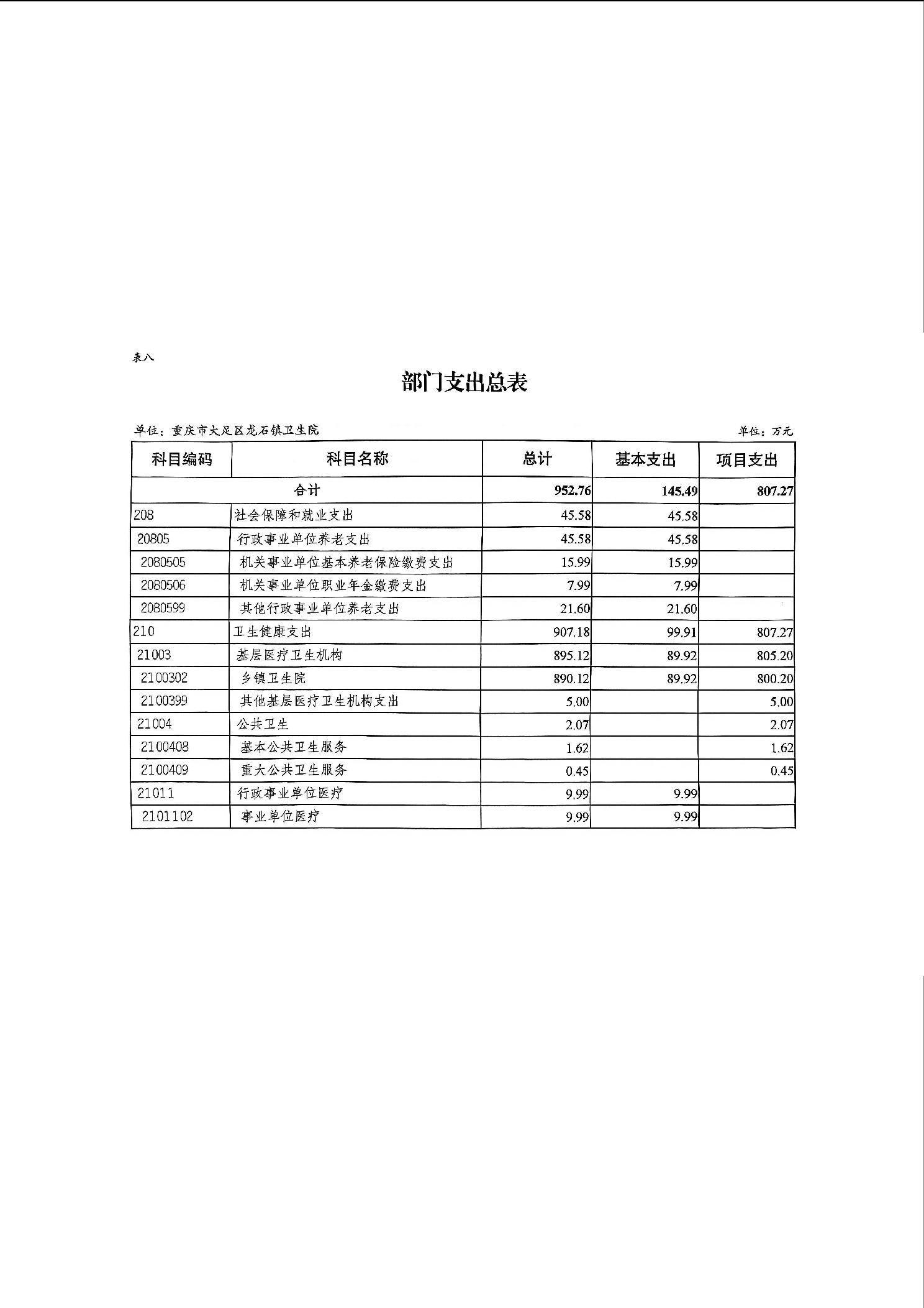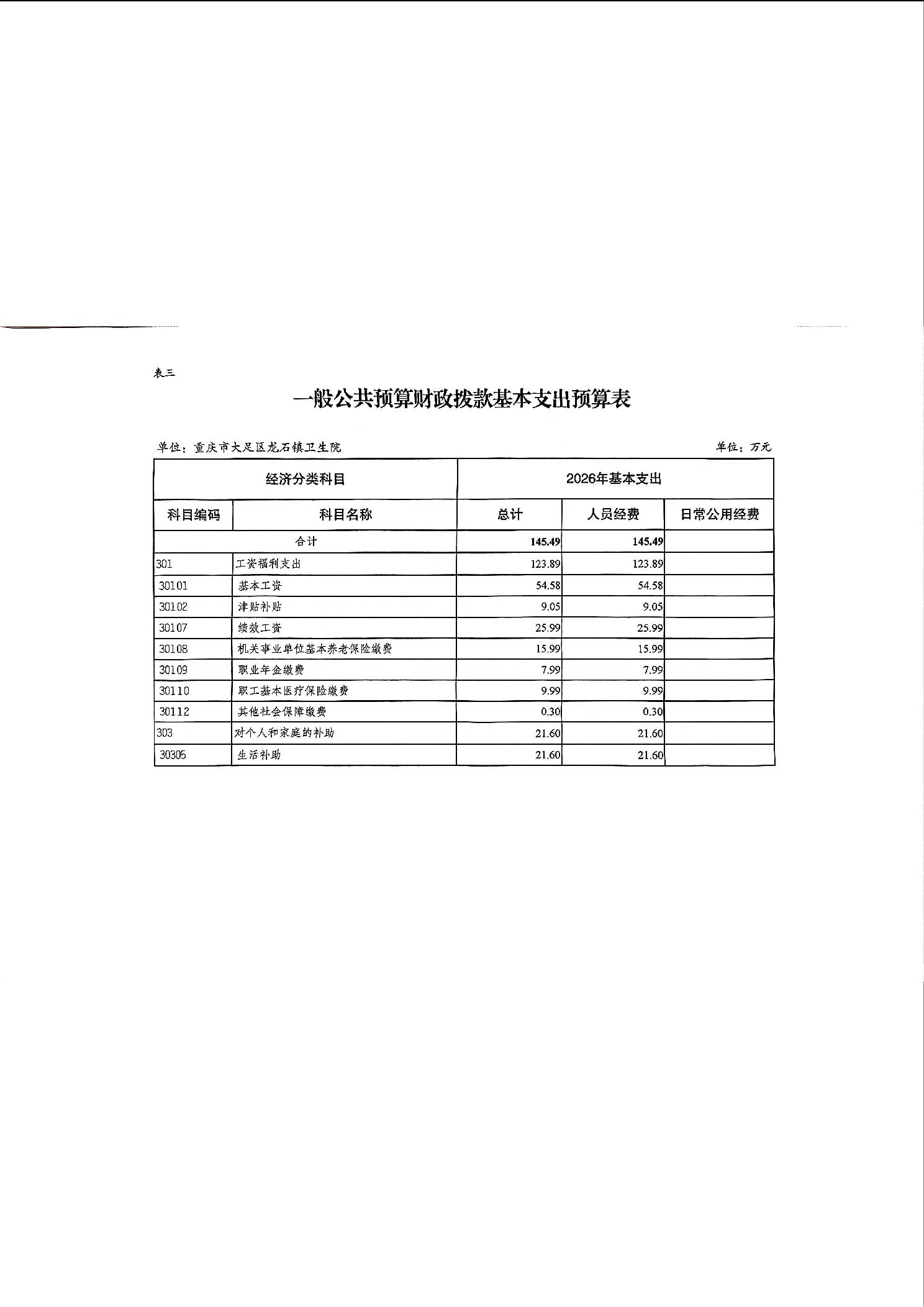142031重庆市大足区龙石镇卫生院2026年部门预算情况说明