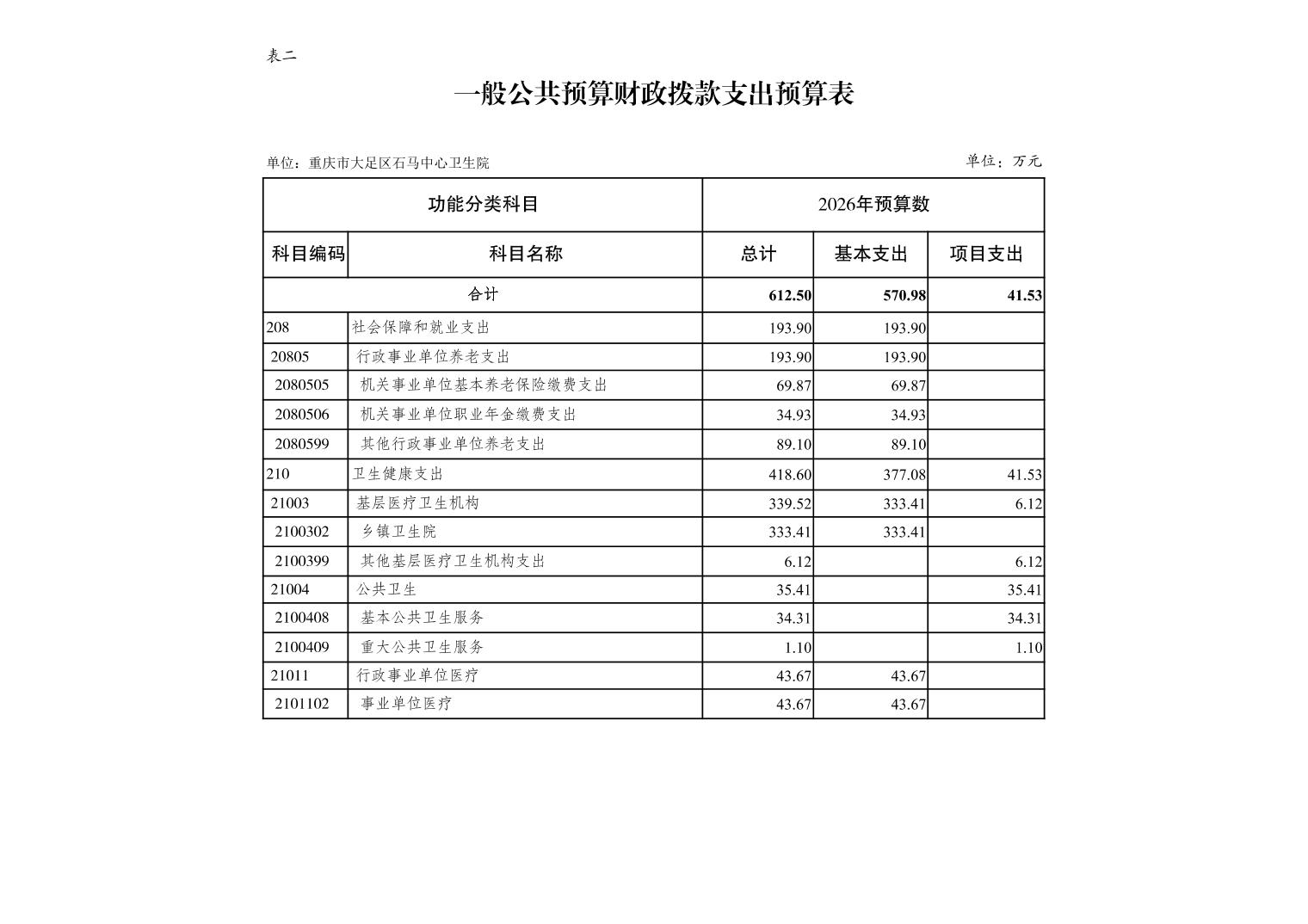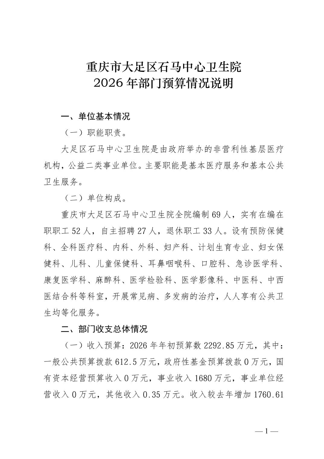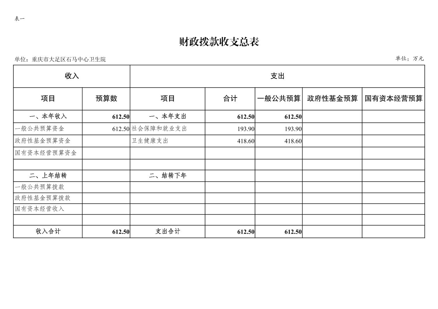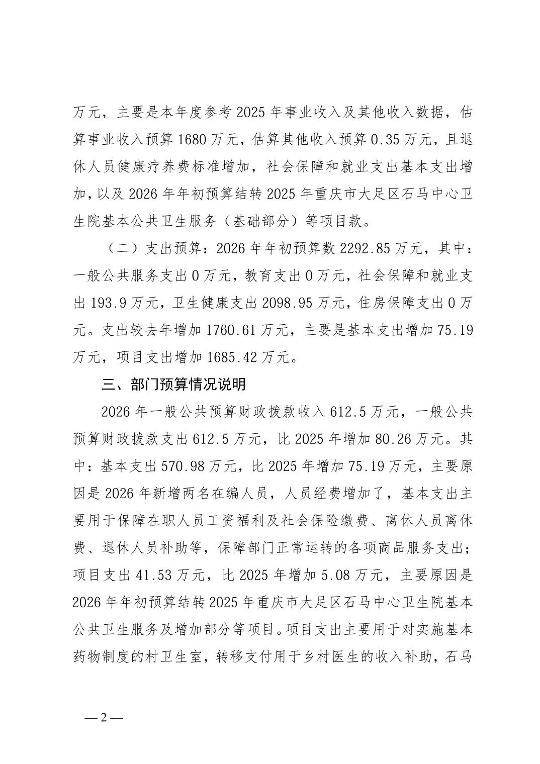 142014重庆市大足区石马中心卫生院2026年预算公开