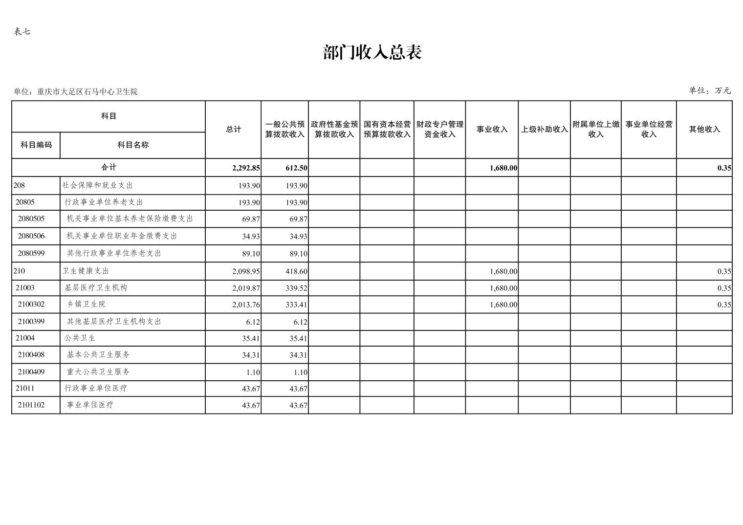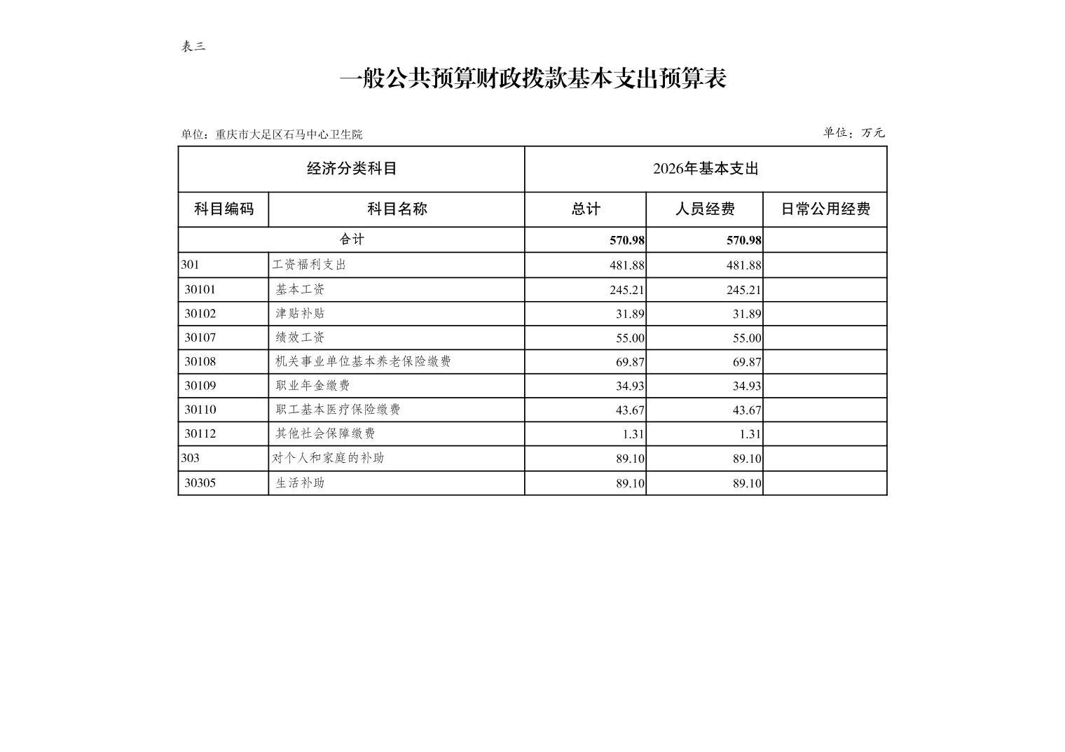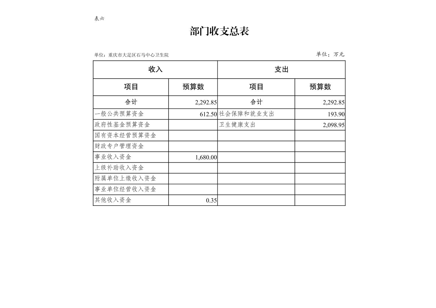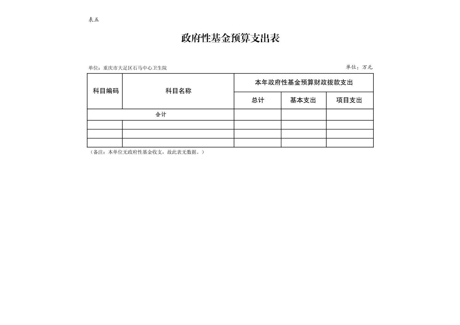 142014重庆市大足区石马中心卫生院2026年预算公开