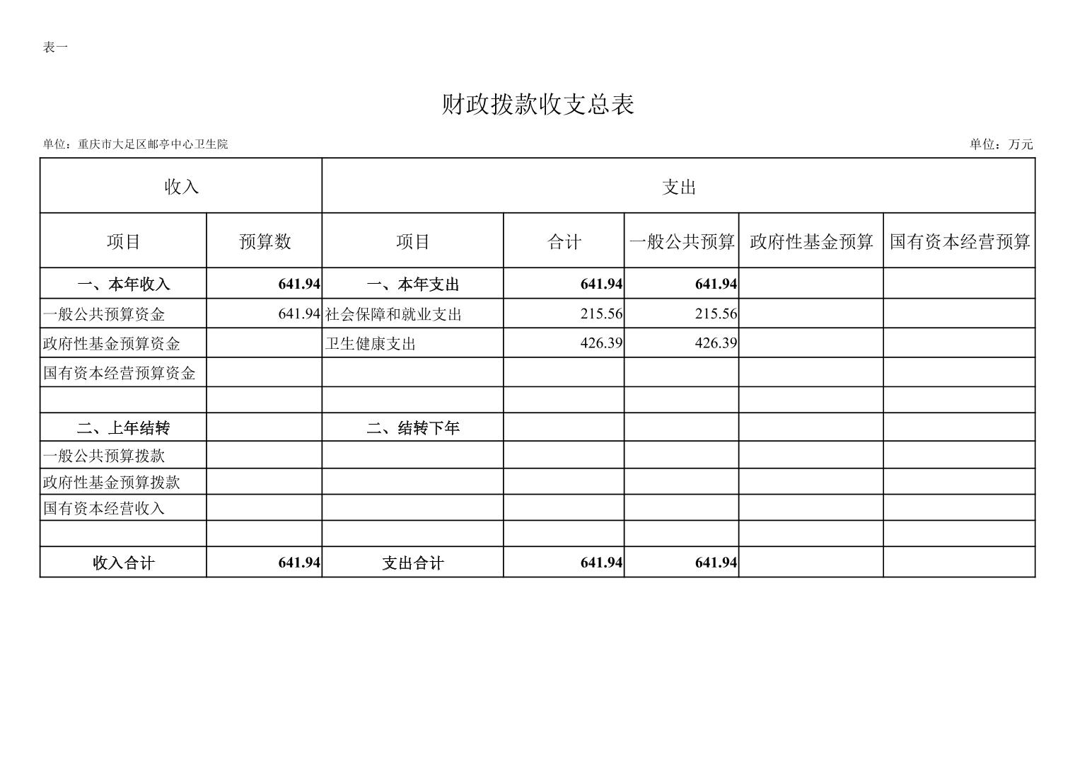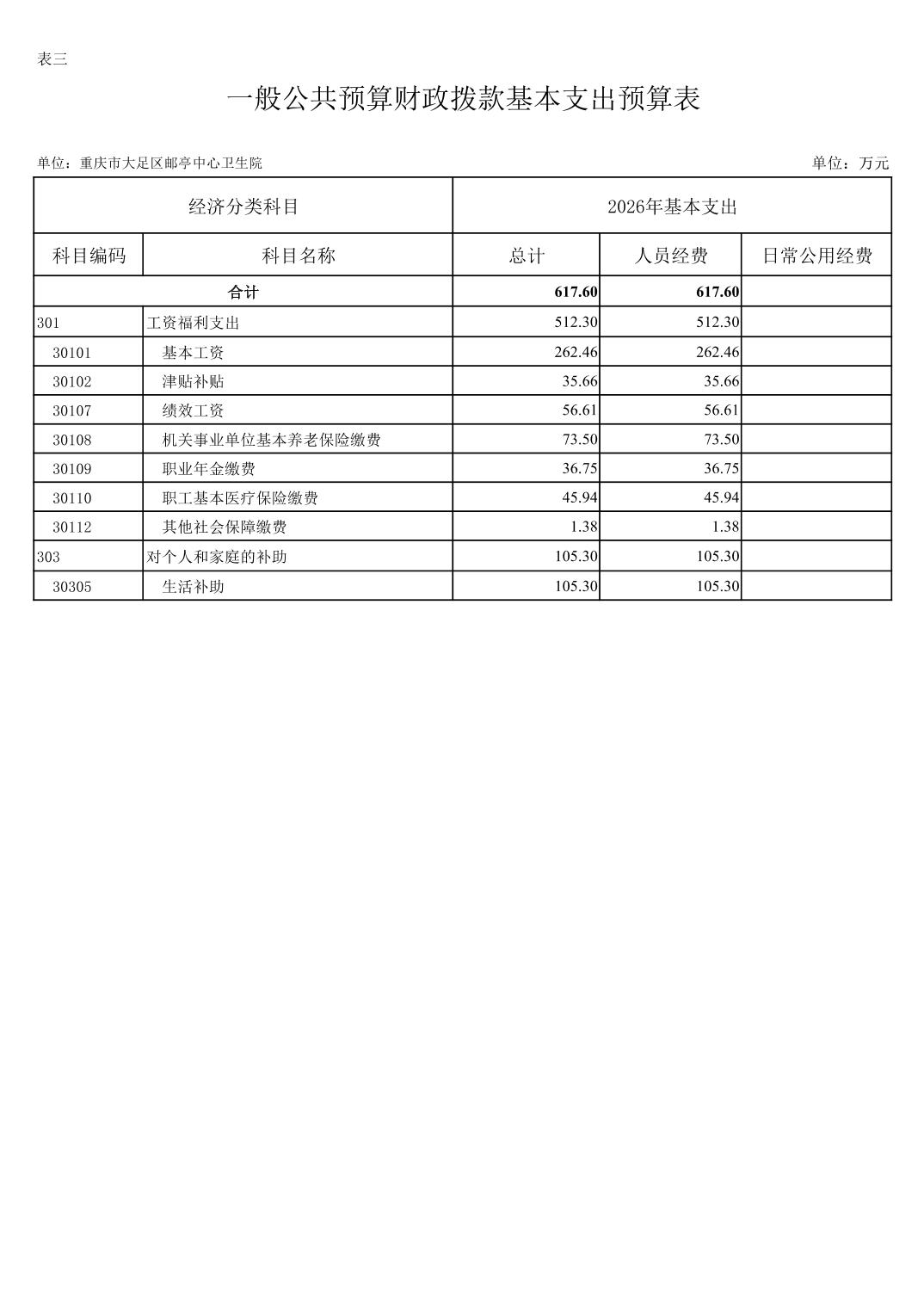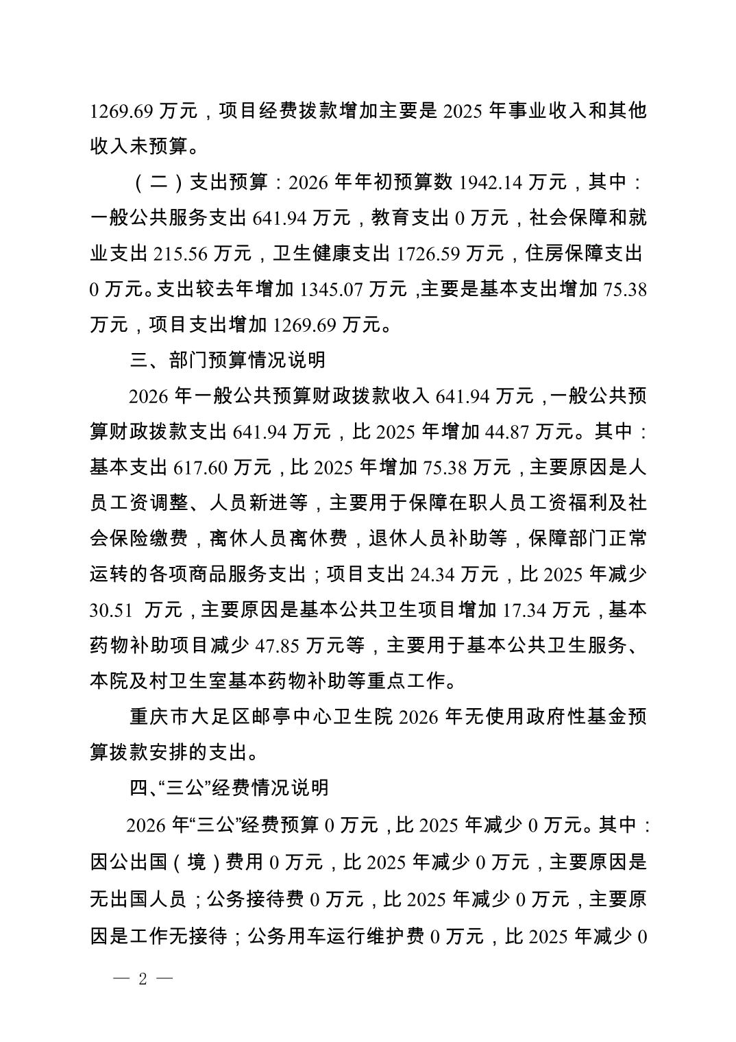 142017重庆市大足区邮亭中心卫生院2026年部门预算情况说明