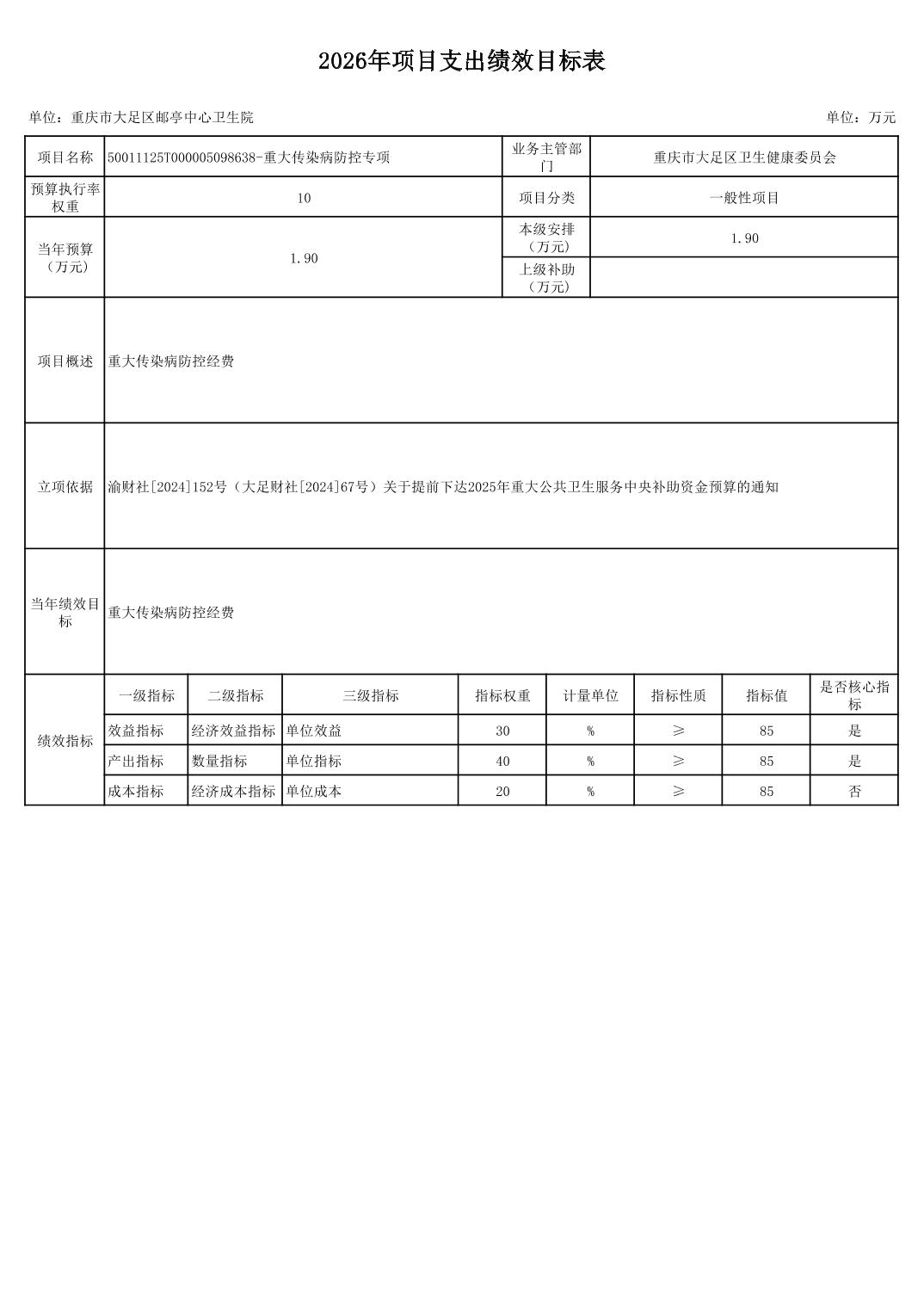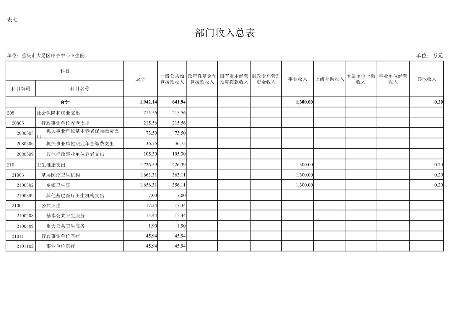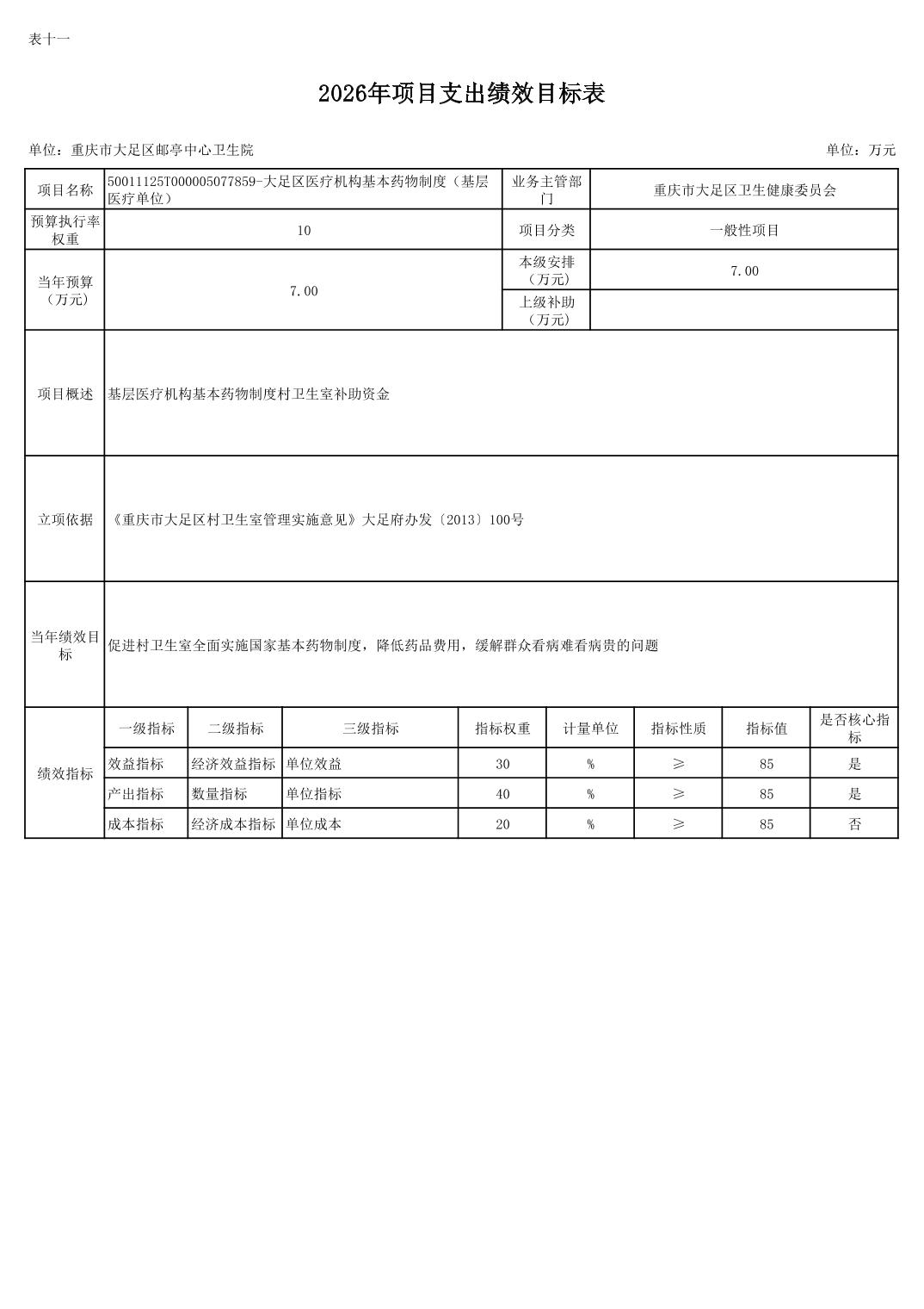 142017重庆市大足区邮亭中心卫生院2026年部门预算情况说明