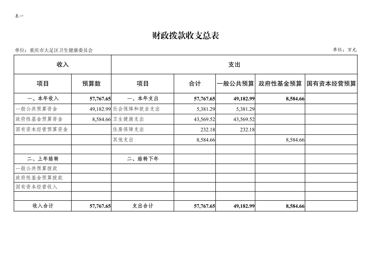 | [ 主题分类 ] | 卫生 | [ 体裁分类 ] | 财政预算、决算 |