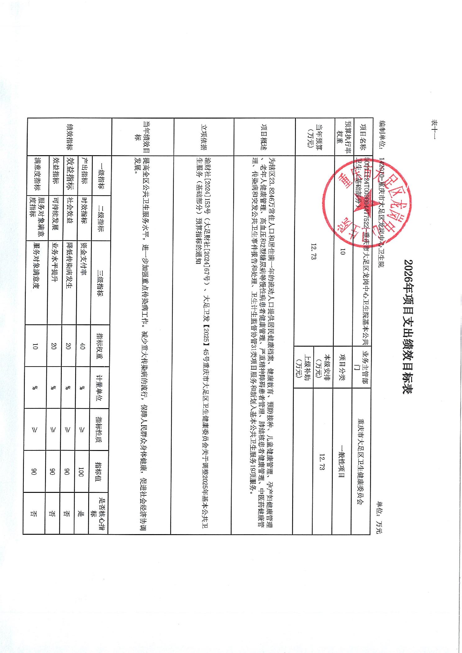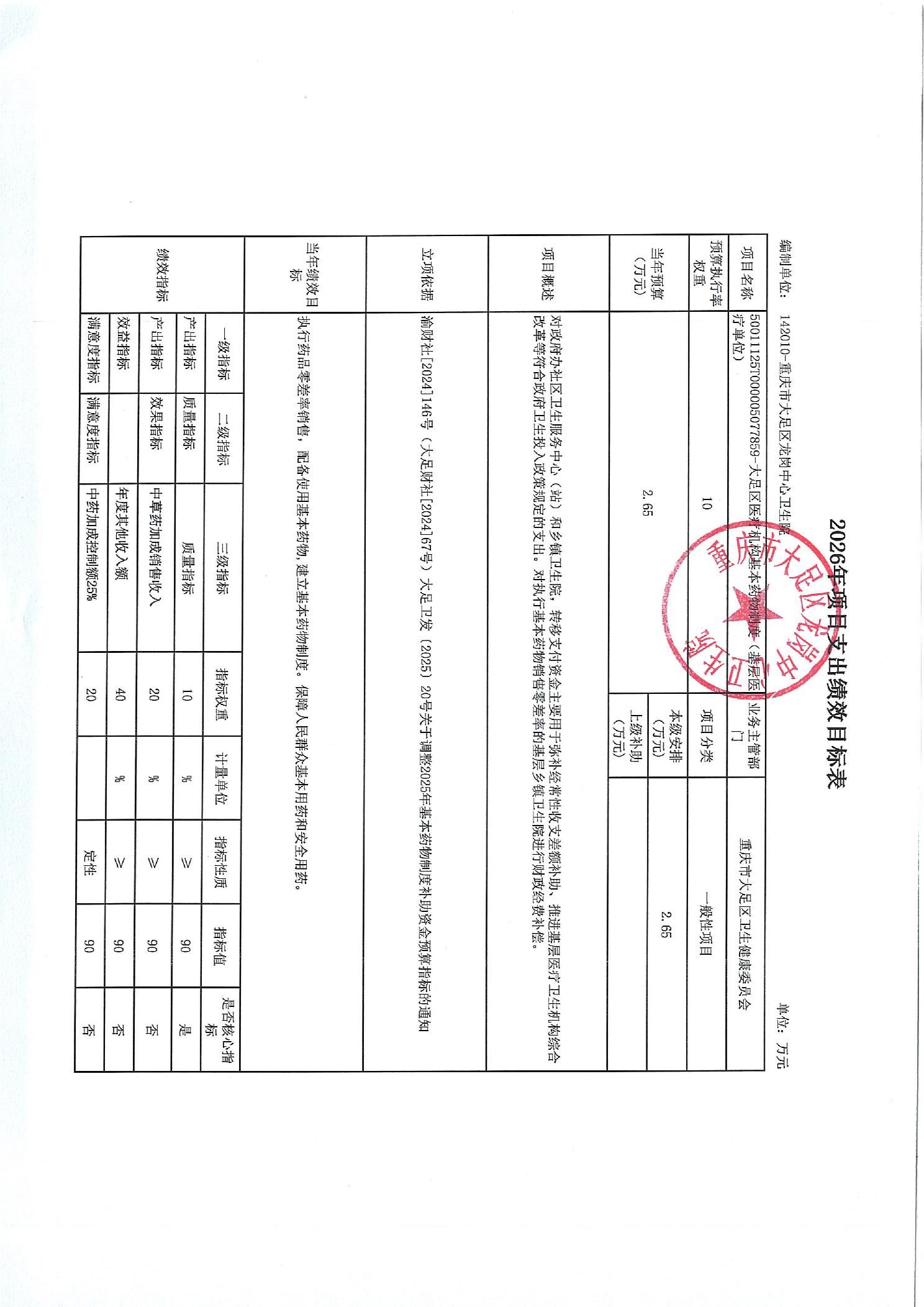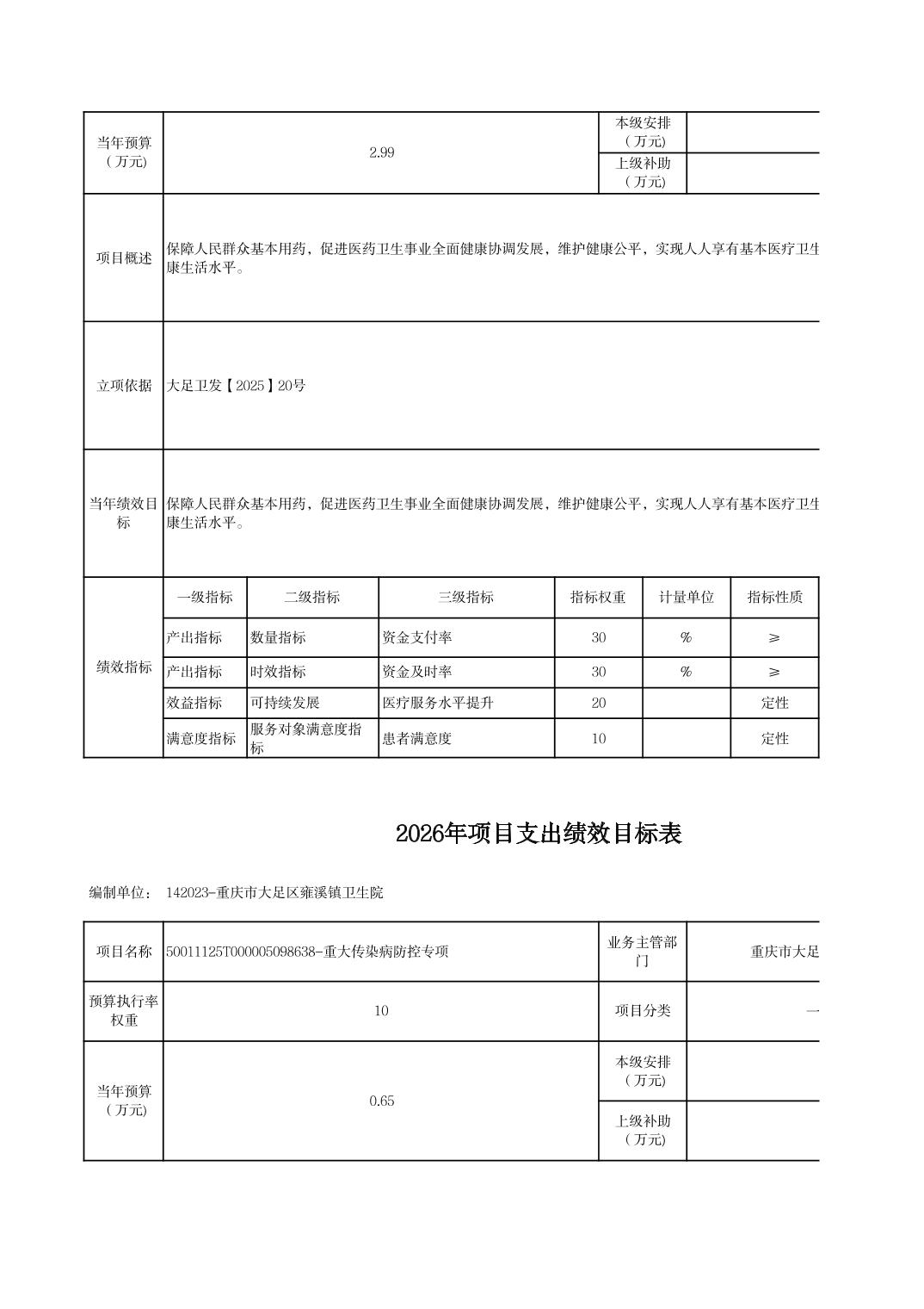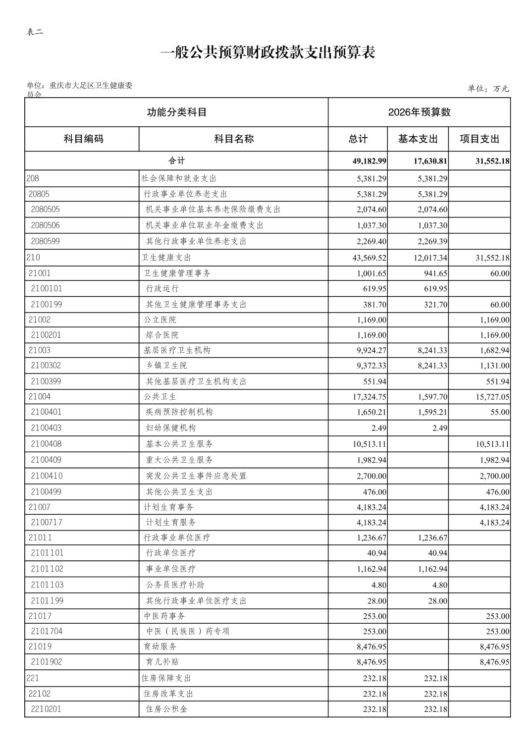 142重庆市大足区卫生健康委员会2026预算公开(汇总)