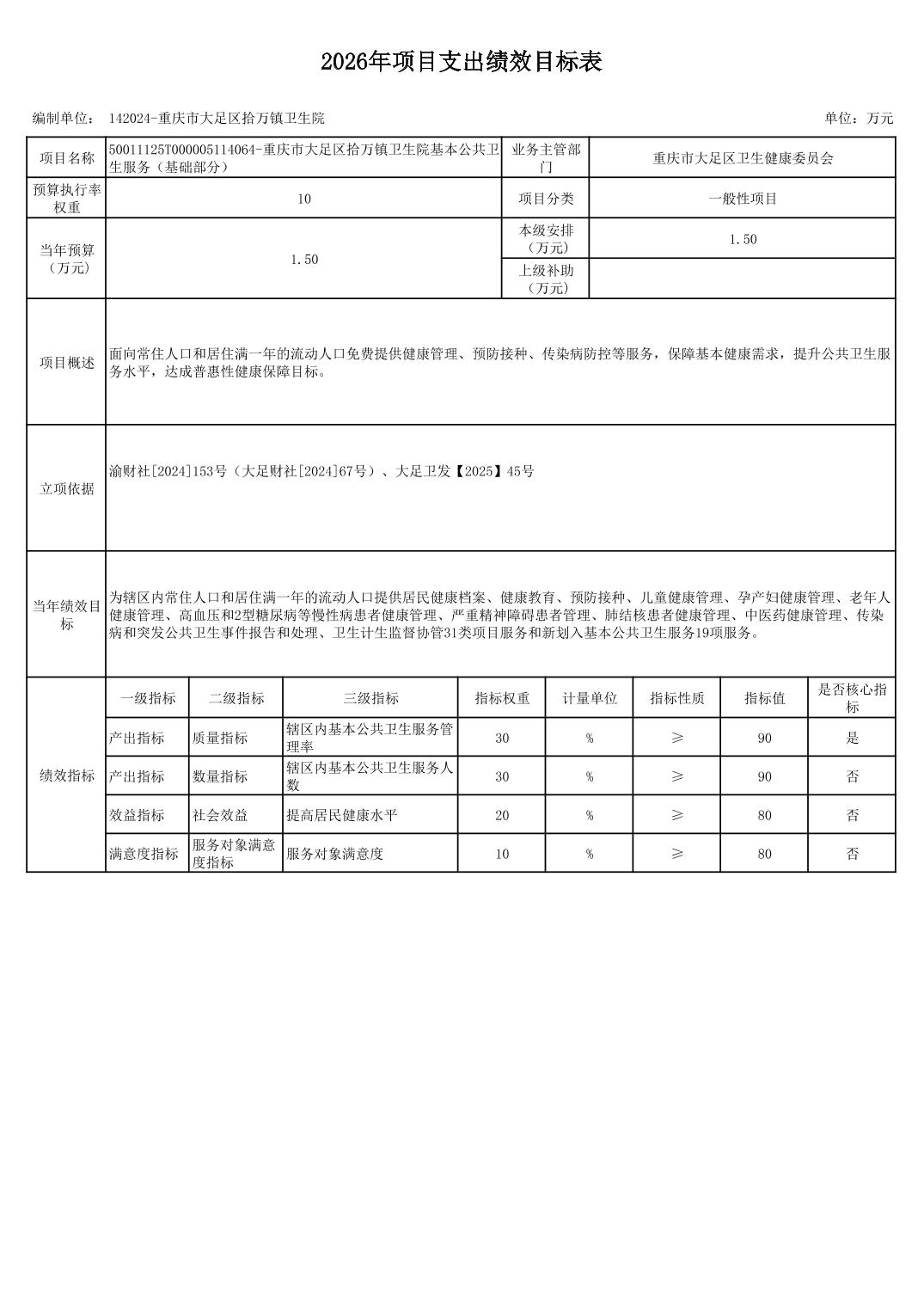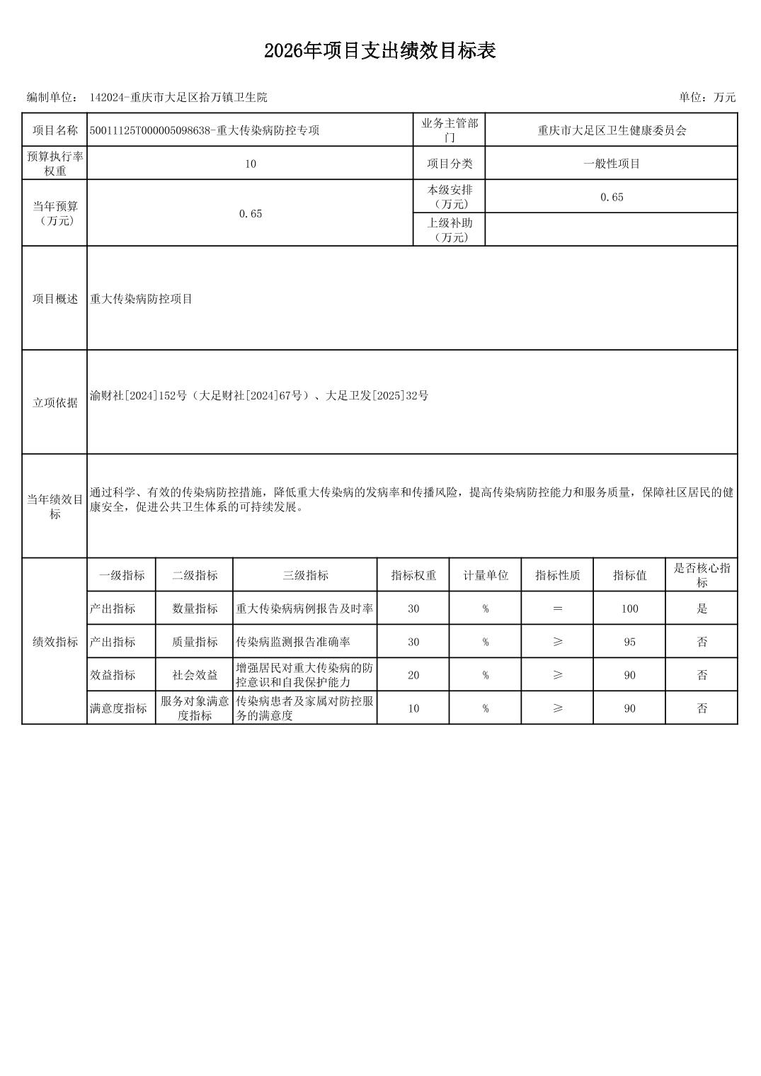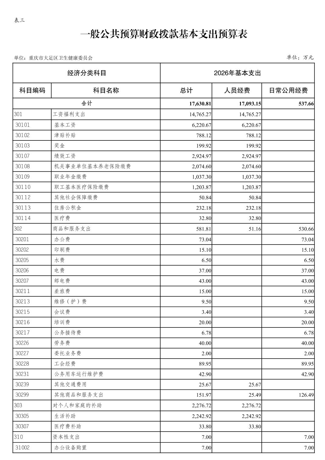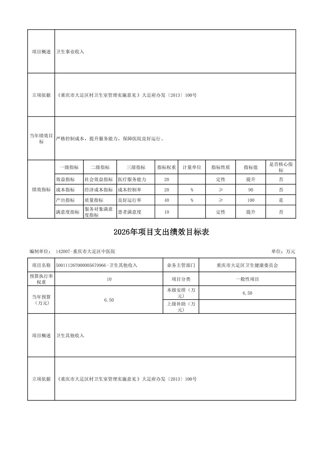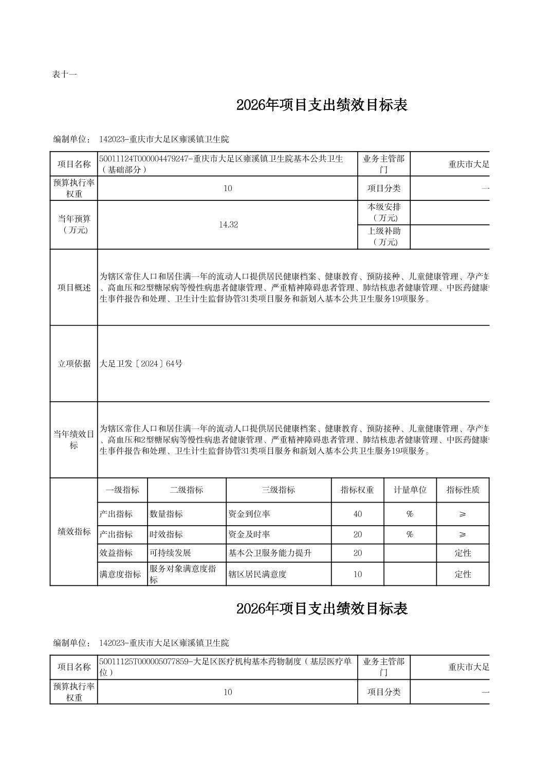 142重庆市大足区卫生健康委员会2026预算公开(汇总)