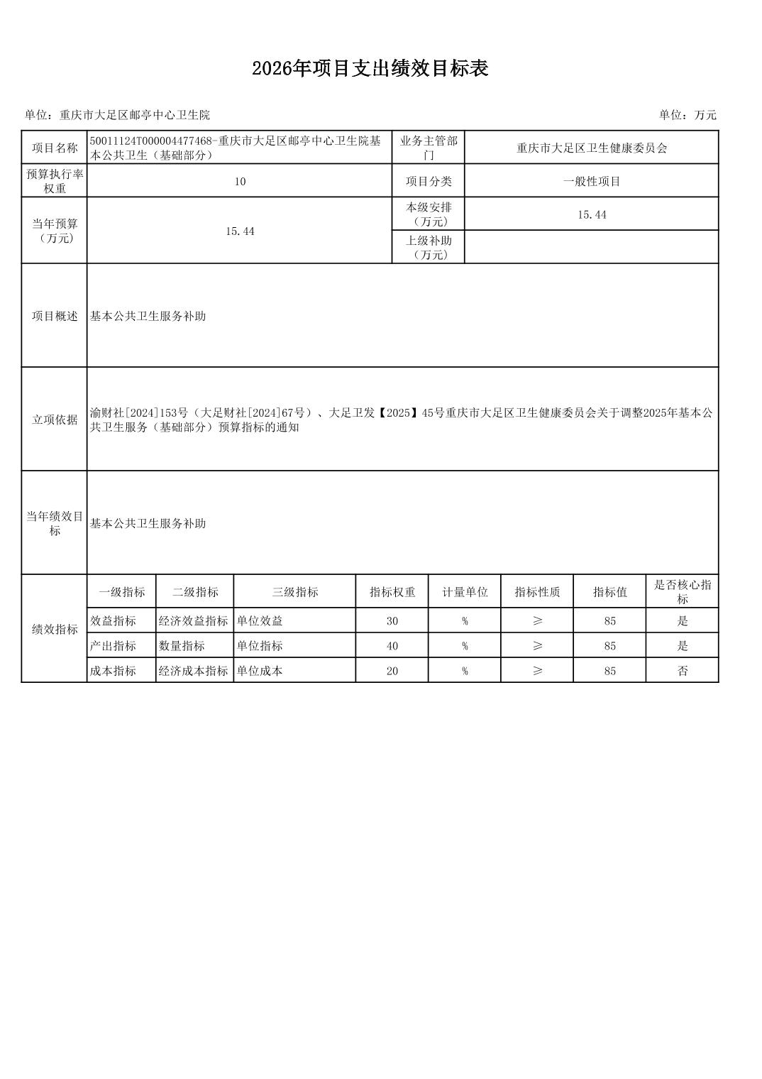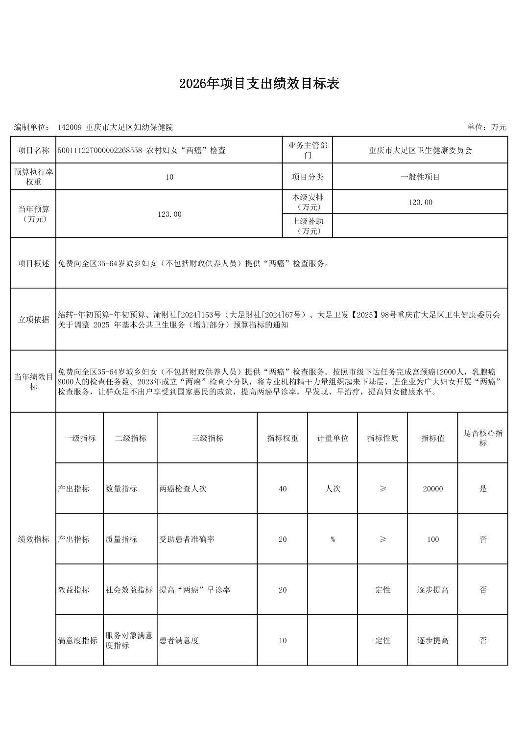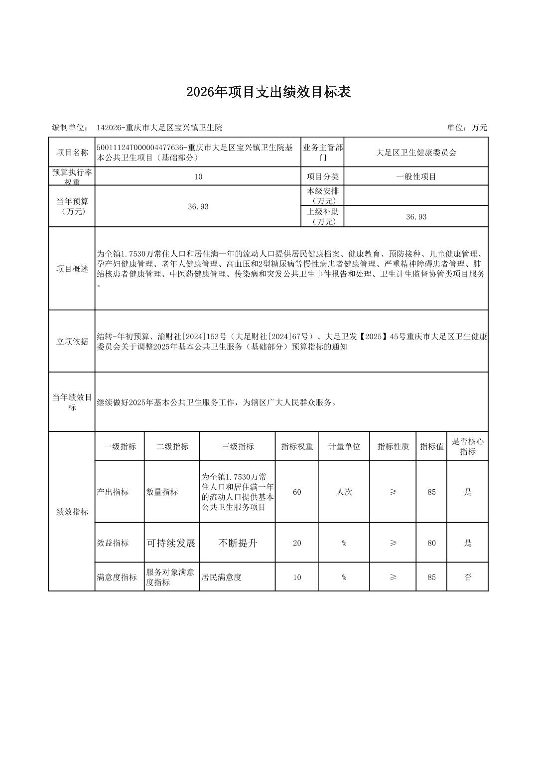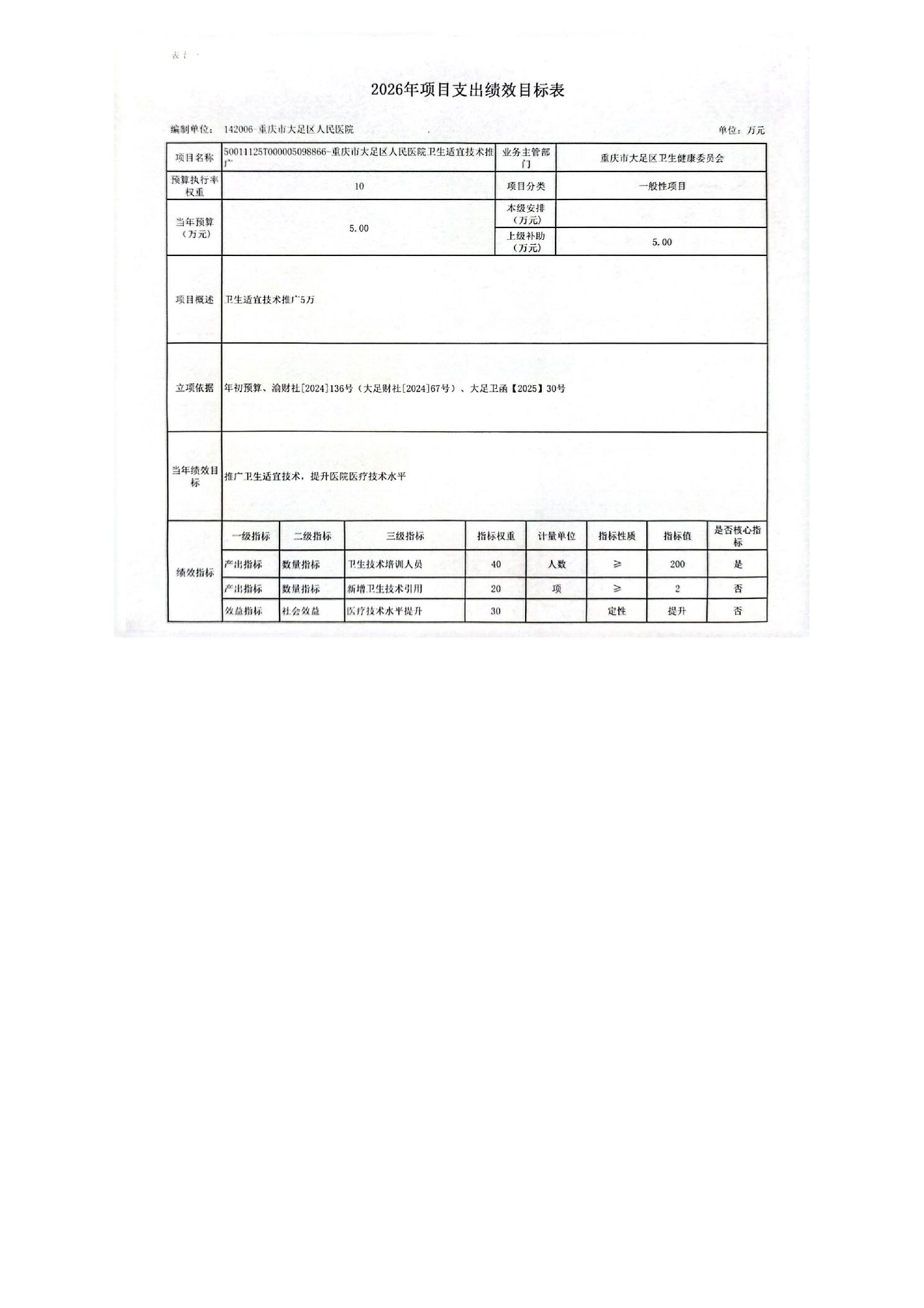 142重庆市大足区卫生健康委员会2026预算公开(汇总)