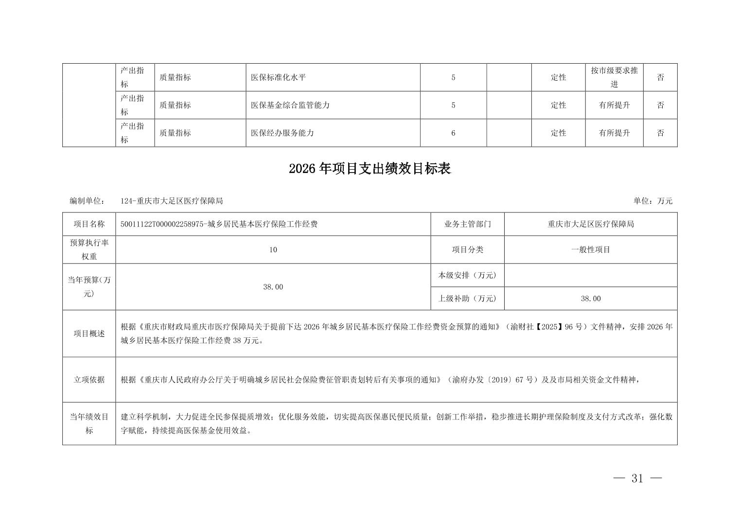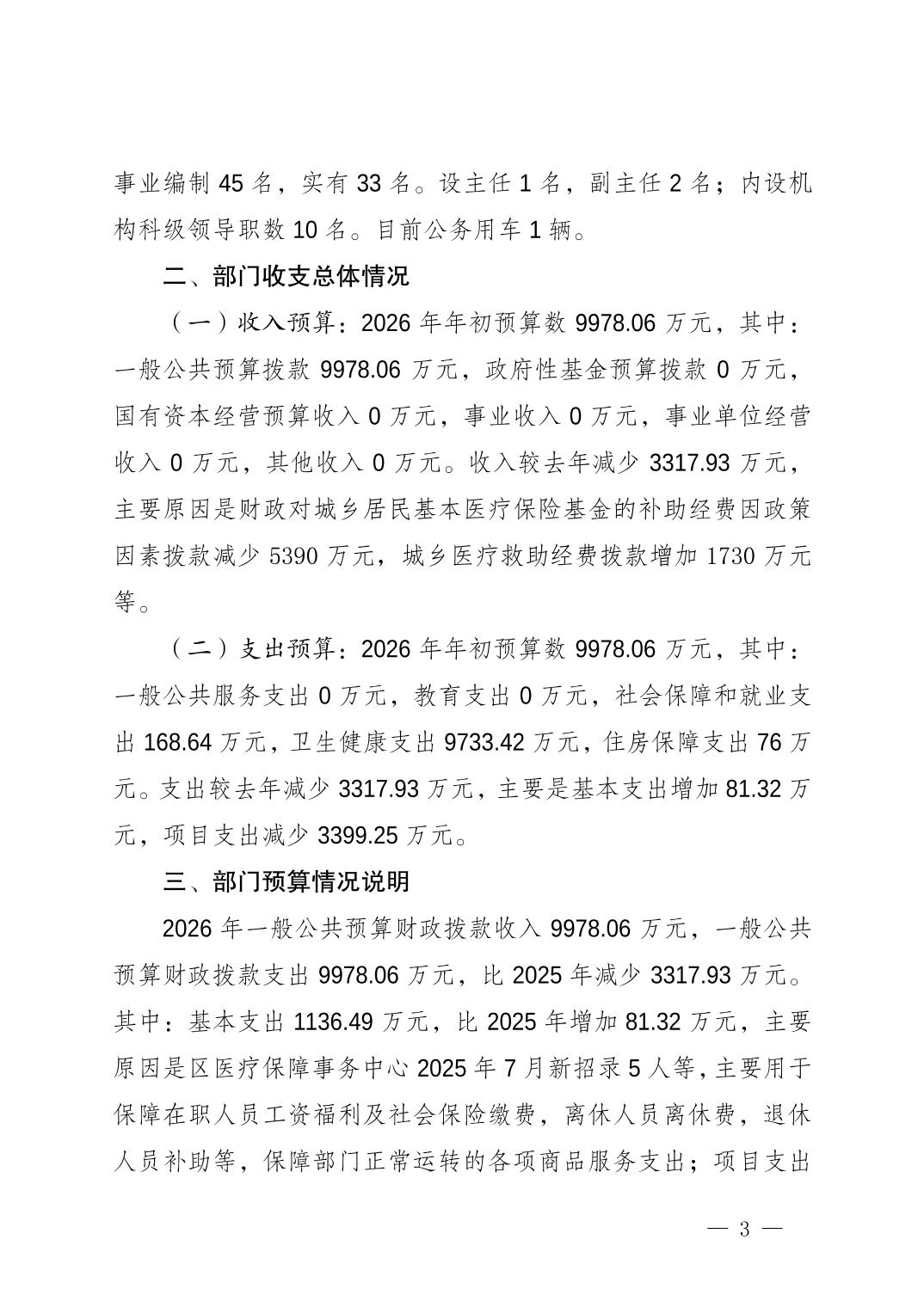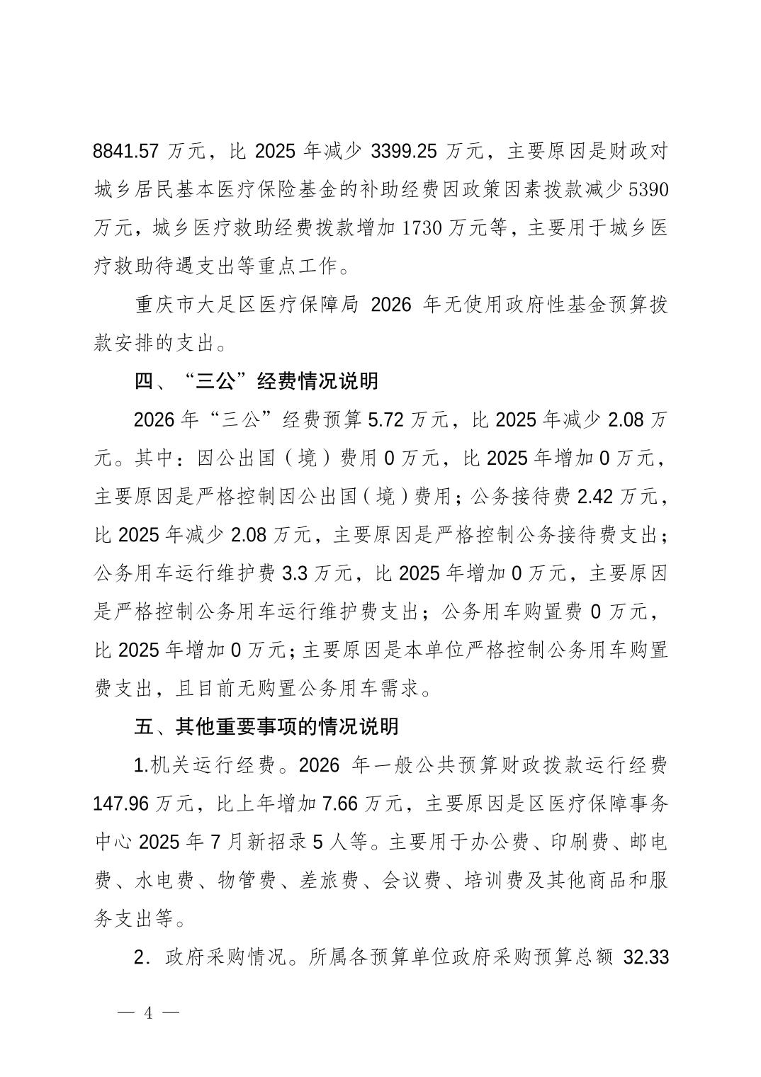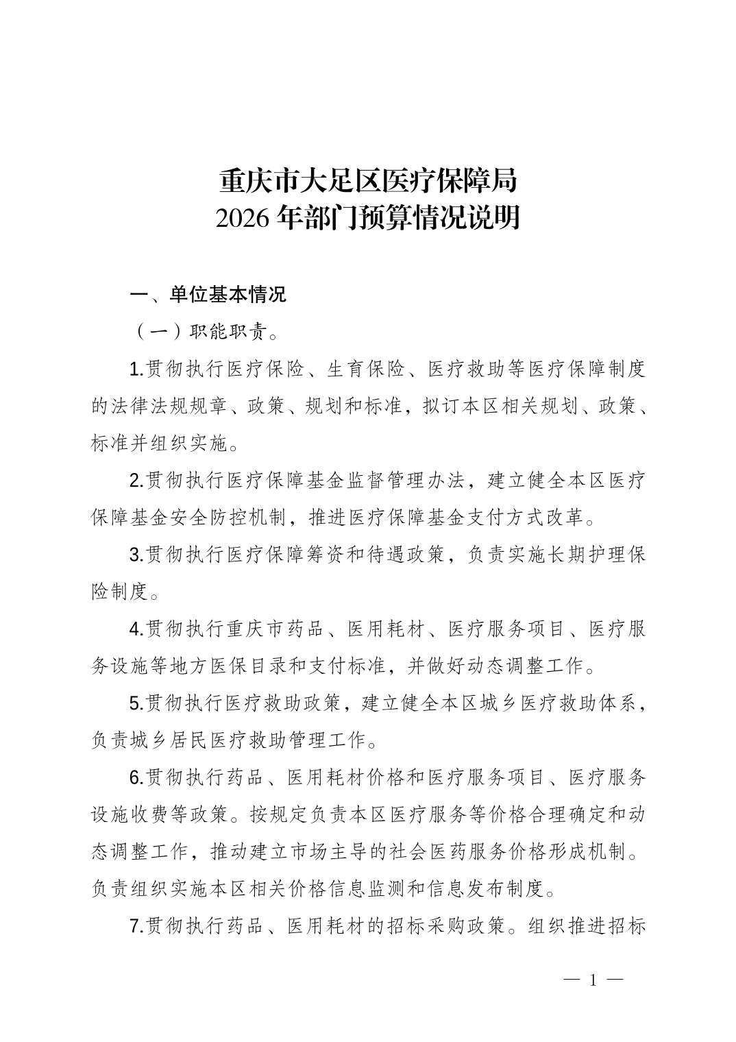 重庆市大足区医疗保障局2026年部门预算情况说明