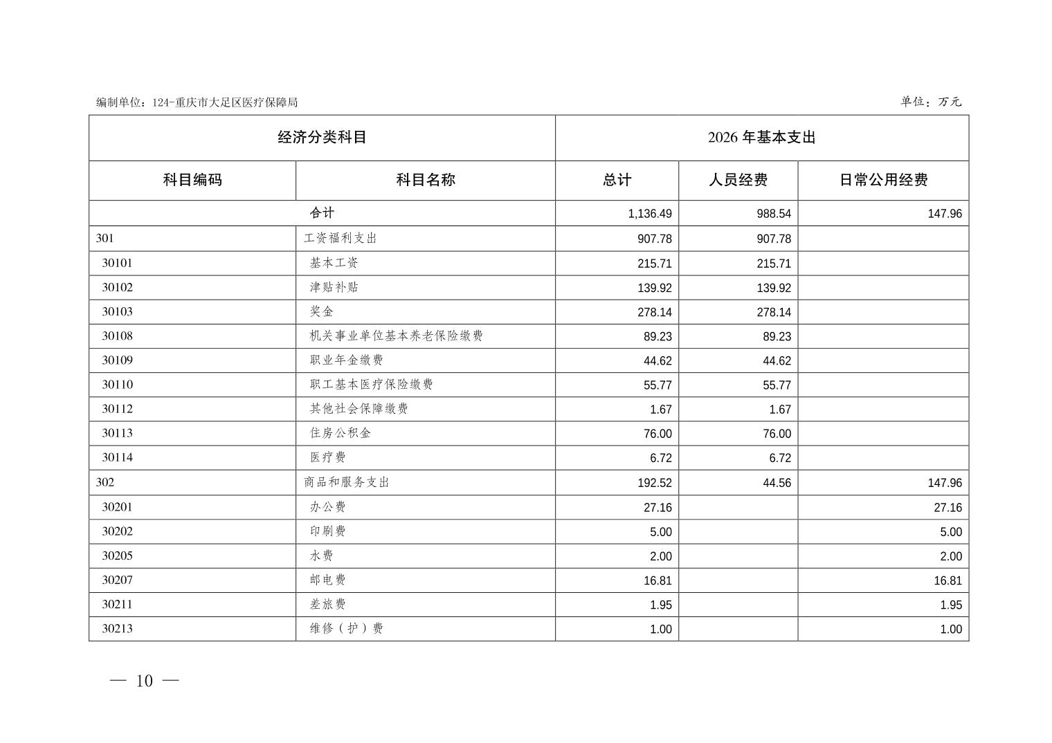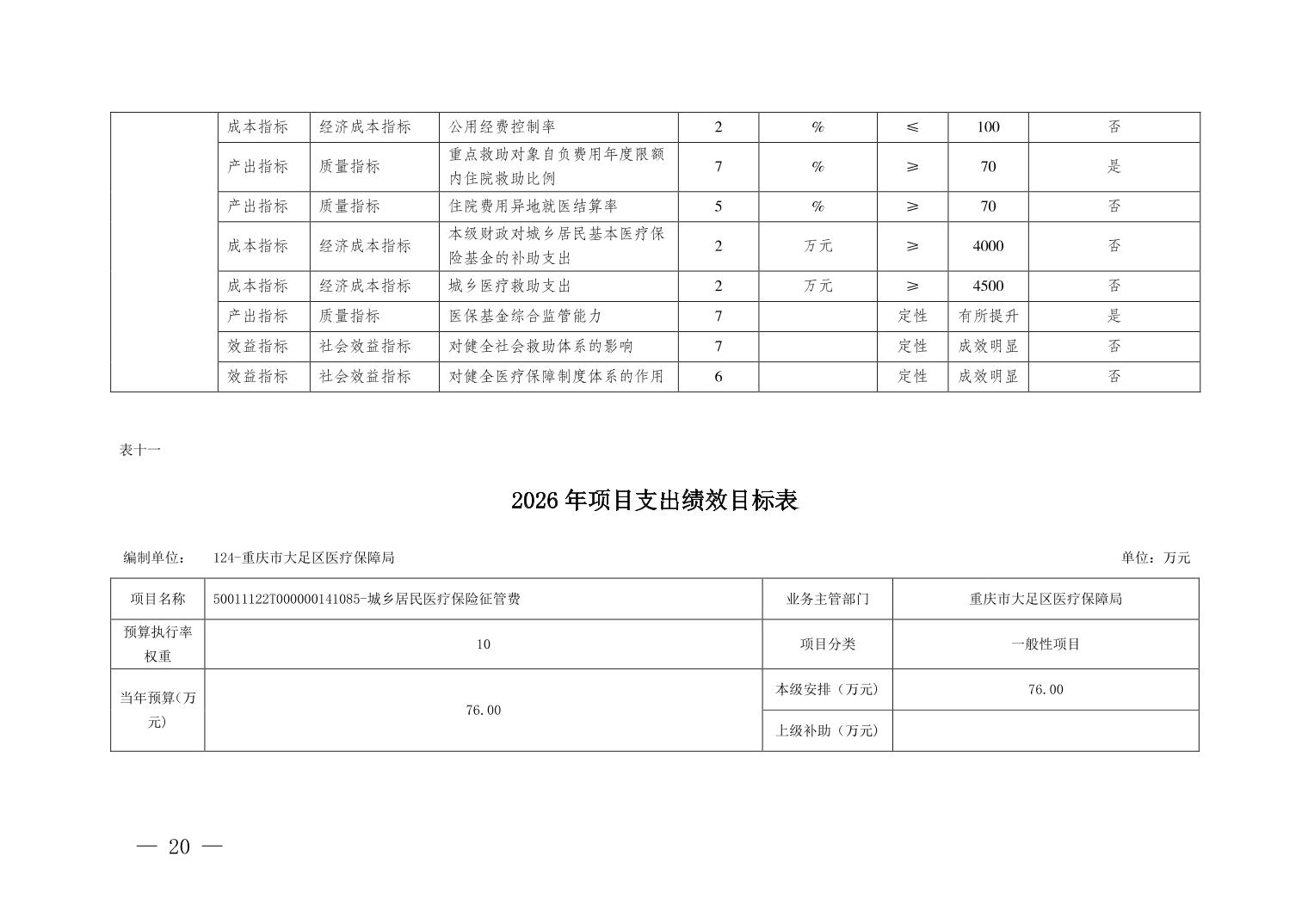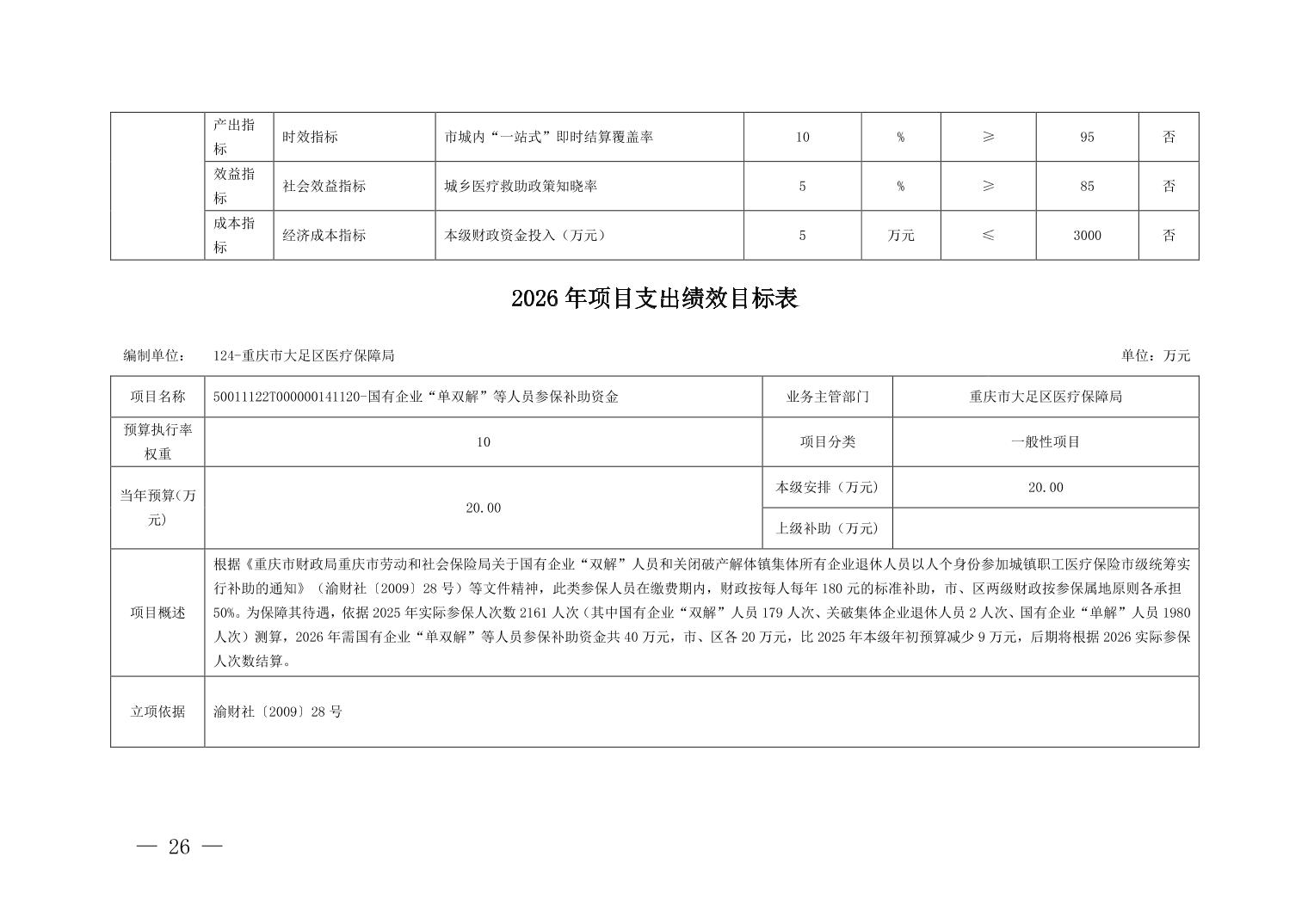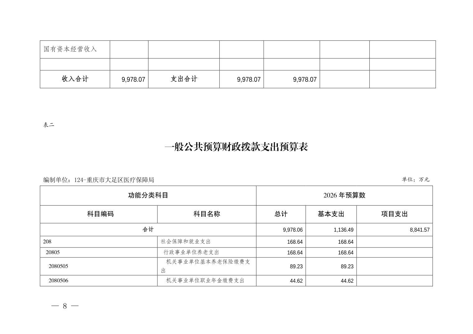 重庆市大足区医疗保障局2026年部门预算情况说明
